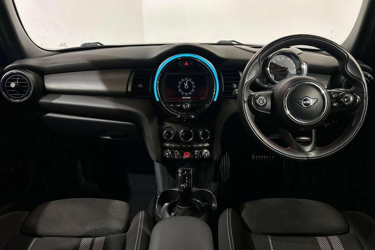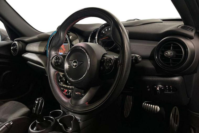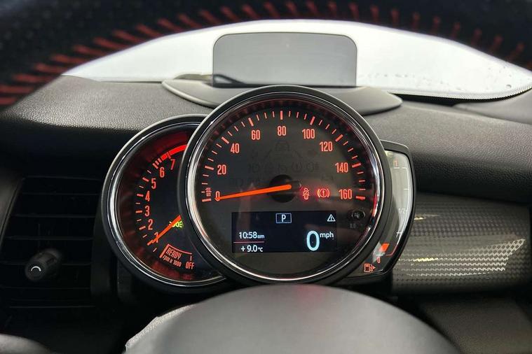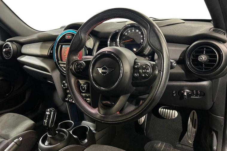 Compatible mobile phone bluetooth with audio streaming, Cruise control with brake assist, Instrument cluster, Mini E-call, MINI TeleServices, On board computer, Service interval indicator, Performance Control, Steptronic transmission with double clutch, 6.5" touchscreen with LED ring, FM tuner and DAB digital radio, Automatic headlight activation switch, Body colour fuel filler cap, Chrome border high gloss black slats radiator grille, Dynamic brake lights, Electric front+rear windows, Heated rear window, Heated windscreen washer jets, John Cooper Works - aerodynamic kit (front and rear apron, spoiler), front and rear sport bumpers and part-painted side sills with door sill finishers, John Cooper Works rear spoiler, LED headlight with closed ring and daytime driving lights, Left exhaust tailpipe with chrome finisher, Metal door sill strips with MINI imprint, Model logo Cooper on right of tailgate, Rain sensor window wipers, Rear fog lights, Rear LED lights with union jack design, Rear window wiper, Side scuttle panel with integrated indicator, Sun/heat protection glass, White indicator lenses, 12V Accessory socket in centre console, 4 lashing eyes in luggage compartment, 60/40 split folding rear seat, Chrome interior highlights, Cupholders, Front and rear isofix with front passenger airbag deactivation, Glove compartment, Height and length steering column adjustment, Interior lighting with 12 basic colours selectable via toggle switch in roof, John Cooper Works leather steering wheel with contrasting stitching in Chilli Red with John Cooper Works logo, John Cooper Works Logo in seat, Leather gearshift lever and handbrake gaiters, LED reading lights, vanity mirror lights, front foot well light and spotlight on front seats, Manual air conditioning, Mechanical seat adjustment, driver seat height adjust, forward/back and front seats backrest, Mini logo projection on floor from drivers exterior mirror, Multifunction steering wheel, Storage compartments in doors, Sunvisors with vanity mirrors, Tool kit, 3 point seatbelts on all five seats, 6 Airbags - front, side, head and seat belt tensioners, Anti-lock braking system (ABS), DSC - Dynamic Stability Control, Front and rear disc brakes, Hill start assist, Single tone fanfare horn, Tyre pressure monitoring system, Alarm system with tilt sensor, monitoring doors, bonnet interior and tailgate, Electronic vehicle immobiliser, Start/stop toggle with keyless go,