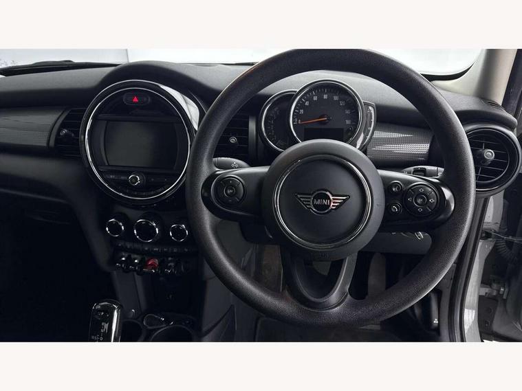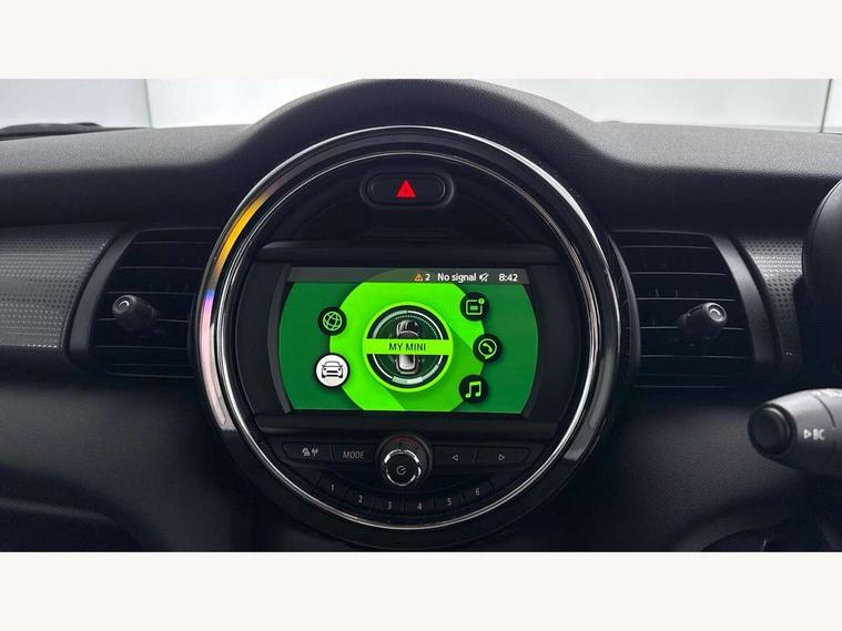 Automatic start/stop function with brake energy recuperation, Compatible mobile phone bluetooth with audio streaming, Electro-mechanical speed dependant steering assistance, Instrument cluster, Mini E-call, MINI TeleServices, On board computer, Service interval indicator, Double Vanos system, Fully variable valve control, Gear change indicator display, High precision injection, Steptronic transmission with double clutch, 6.5" touchscreen with LED ring, FM tuner and DAB digital radio, Automatic headlight activation switch, Body colour fuel filler cap, Chrome border high gloss black slats radiator grille, Dynamic brake lights, Electric front+rear windows, Heated rear window, Heated windscreen washer jets, LED headlight with closed ring and daytime driving lights, Left exhaust tailpipe with chrome finisher, Metal door sill strips with MINI imprint, Model logo Cooper on right of tailgate, Rain sensor window wipers, Rear fog lights, Rear LED lights with union jack design, Rear window wiper, Side scuttle panel with integrated indicator, Sun/heat protection glass, White indicator lenses, 12V Accessory socket in centre console, 4 lashing eyes in luggage compartment, 60/40 split folding rear seat, Chrome interior highlights, Colour line - Carbon black, Cupholders, Front and rear head restraints, Front and rear isofix with front passenger airbag deactivation, Glove compartment, Height and length steering column adjustment, Interior lighting with 12 basic colours selectable via toggle switch in roof, Knee roll and door armrests, Leather gearshift lever and handbrake gaiters, LED reading lights, vanity mirror lights, front foot well light and spotlight on front seats, Manual air conditioning, Mechanical seat adjustment, driver seat height adjust, forward/back and front seats backrest, Mini logo projection on floor from drivers exterior mirror, Multifunction steering wheel, Satellite grey headlining, Satellite grey headlining including grab handles and clothes hooks, Storage compartments in doors, Sunvisors with vanity mirrors, 3 point seatbelts on all five seats, 6 Airbags - front, side, head and seat belt tensioners, Anti-lock braking system (ABS), DSC - Dynamic Stability Control, Front and rear disc brakes, Hill start assist, Single tone fanfare horn, Tyre pressure monitoring system, Alarm system with tilt sensor, monitoring doors, bonnet interior and tailgate, Electronic vehicle immobiliser, Start/stop toggle with keyless go, Tool kit, Tyre repair kit,