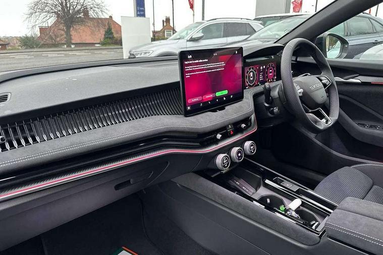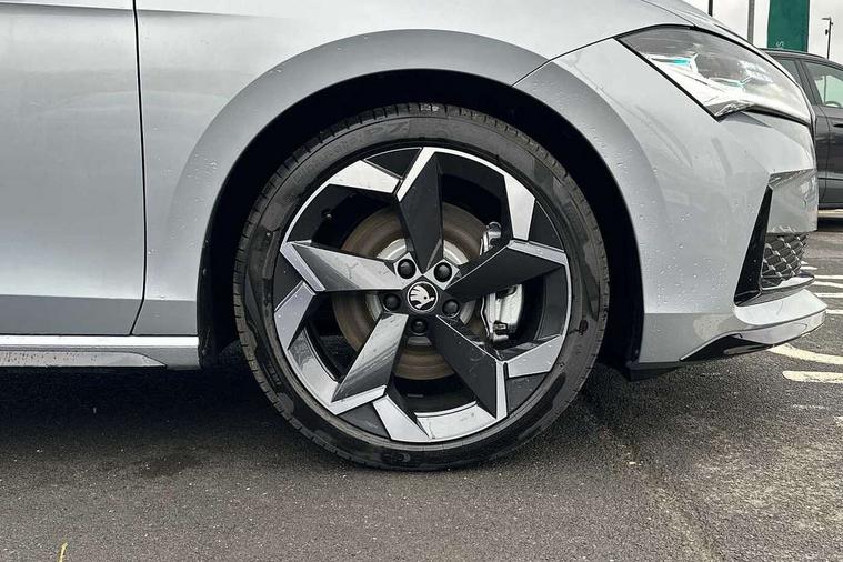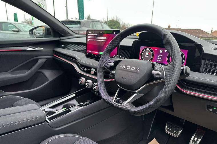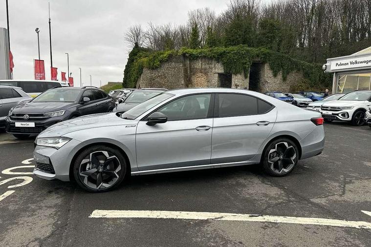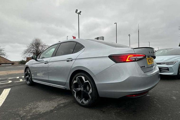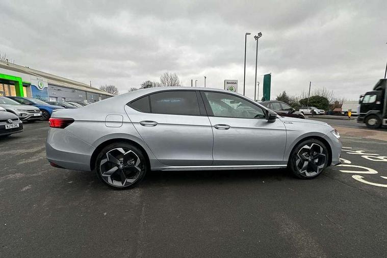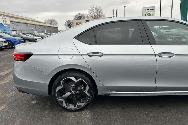 13" touchscreen display with satellite navigation, 4x USB-C ports (2x in front centre console and 2x in rear) (45W), Adaptive cruise control with speed assist, lane assist plus and traffic tram assist, Blind spot detection with door exit warning, Bluetooth system, CareConnect and Emergency Call, ChatGPT functionality, Driver fatigue sensor, Easy boot close funtion, Front assist with extended predictive pedestrian protection, Front cross traffic assist, PAS, Quick start all heating software functionality, Stop/start engine system, Traffic sign recognition, Turn assist with evasive assistance, Virtual Cockpit - 10.25" digital display, Voice control system, Washer for rear camera, Wireless charging for one smartphone (15W) with cooling function, Wireless smartlink apple carplay, SmartLink+ android auto, Dynamic chassis control plus with progressive dynamic steering, DAB Digital radio, Display cleaner, FM radio connection, Web radio connection, Acoustic side windows and interior noise suppression, Backdrop lighting, Black exterior styling window and grille surrounds, Body colour door handles, Dynamic range control with poor weather light and integrated fog light, Electrically adjustable, heated, folding and driver side auto-dimming door mirrors with memory function, integrated indicators and logo projection, Frameless auto-dimming rear view mirror with USB-C, Gloss black door mirrors, Ice scraper in fuel tank cap, LED 3rd brake light, Light assist with High beam control, Light assistant (coming/leaving home/tunnel light), Privacy glass, Rear fog lights (x2), Rear side wing doors, Skoda lettering in black, Sportline badging, Sports bumpers, Windscreen wipers with rain sensor, 12V socket 1x centre console 1x boot, 14-way electrically adjustable, memory, front seats with 4-way pneumatic lumbar support, and extendable thigh support with smart comfort entry aid, 2x cargo elements in boot, 2x light in boot, 3 seat bench in 2nd row, 60:40 Split folding rear seats, Aluminium pedals, Bottle holders in the front doors 1.5 litre bottle and rear 1.5 litre bottle, Cup holder in front with easy open mat, Front armrest with storage box, Front sports seats, Heated and ventilated front seats, Height adjustable front and rear head restraints, Illuminated glovebox, Interior lights with control switches, Isofix child seat fittings in outer rear and front passenger seats, LED front and rear reading lights, Single front passenger seat, Skoda lettering on steering wheel, Storage compartment with cover, Storage pockets on back of front seats, Sun visors with illuminated vanity mirrors, Ticket holder on A Pillar, Tri zone climate control, Umbrella in driver's door, Light and view package - Superb, Transport package - Superb Hatchback, 3 rear seatbelts, 8 Airbags - Front driver and passenger, front side driver and passenger, centre, curtain front and rear, drivers knee, Crew protect assist, Driver and passenger seatbelts with warning light, Electronic parking brake, ESC including ABS, EBV, MSR, ASR, EDS, HBA, DSR, RBS, CBC, multi-collision brake (MKB) and Auto hold, Hill hold assist, Power operated child lock in rear doors, Alarm with interior monitoring tilt sensor and back up horn, Backrest remote release from trunk, Electronic engine immobiliser, Keyless start/stop, Remote central locking with SAFE system, Third key, Walk away locking, Decorative front door sills, 19" Torcular polished black alloy wheels with anti theft wheel bolts,