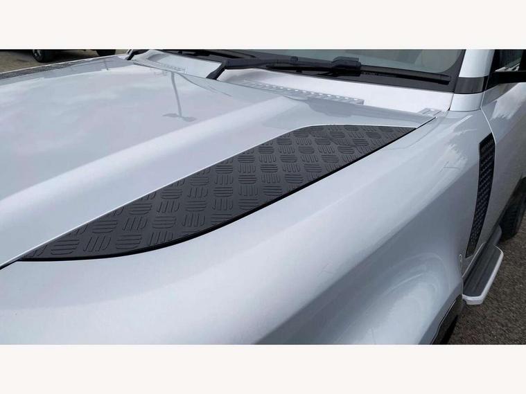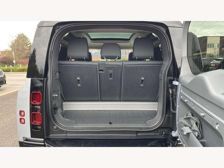 360 degree parking aid, 3D Surround Camera with 360 View, 180 Rear View, Front Traffic Detection, Forward Vehicle Guidance, Tow Hitch Assist and clear sight Ground View, Android Auto, Apple CarPlay, Assisted tailgate with soft close, Blind spot assist, Bluetooth system, Brake pad wear indicator, Clear exit monitor, Connected navigation pro, Driver condition monitor, Electric power assisted steering (EPAS), Lane keep assist, Push button start, Rear traffic monitor, Traffic sign recognition with adaptive speed limiter, Trip computer, Wade Sensing, 8 speed automatic transmission, All wheel drive system, Twin speed transfer box, DAB Radio (Digital Audio Broadcasting), Meridian 400w sound audio system with 11 speakers and subwoofer, Pivi pro connected, Automatic headlight levelling, Automatic headlights, Centre high mounted stop light, Electric heated/power fold door mirrors with approach lights and auto dimming driver side, Electric windows with one touch open/close and anti-trap, Follow me home lighting, Front fog lights, Heated rear window with timer, Heated windscreen, LED tail lights, Panoramic rear side glass, Privacy glass, Puddle lights, Rain sensing windscreen wipers, Rear fog lights, Rear wiper, Side hinged tailgate, Trailer stability assist, X-Dynamic badge, 12V power socket in loadspace, 3 seat bench in 2nd row, Alpine lights, Durable rubber cabin flooring, Durable rubber loadspace flooring, Footwell lights, Loadspace cover, Loadspace Hook, Multifunction steering wheel, Overhead stowage for sunglasses, Premium cabin lighting, Rear headrests, Rear ISOFIX, Rear reading lights, Single front passenger seat, Standard seat configuration, Storage glovebox, Sunvisors with illuminated vanity mirrors, Online pack with data plan - Defender, 5 x 3 point seatbelts, ABS, Brake hold function, Cornering brake control (CBC), Customer configurable autolock, DSC - Dynamic Stability Control, EBD - Electronic brakeforce distribution, Electric parking brake (EPB), Emergency brake assist, Emergency braking, ESP + traction control, Front airbags with passenger seat occupant detector, HDC - Hill descent control, Hill launch assist, Low traction launch, Remote for (e-Call, Optimised assistance call, InControl app, Climate, beep and flash and door), RSC - Roll stability control, Seat belt reminder, TPMS (Tyre pressure monitoring system), Alarm, Immobiliser, Intrusion sensor, Keyless entry, Locking wheel nuts,