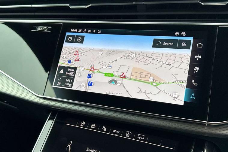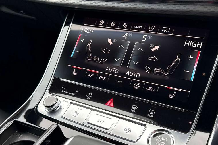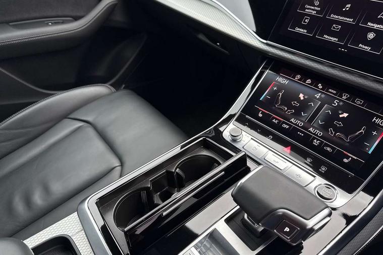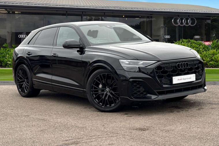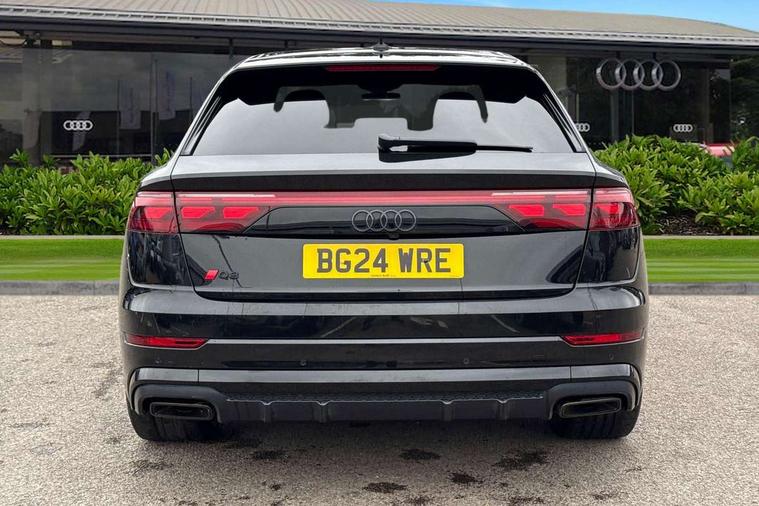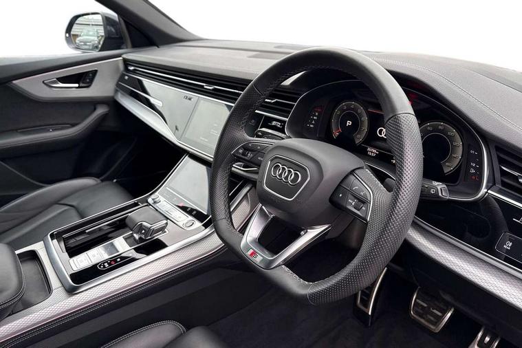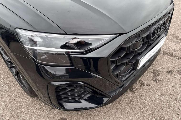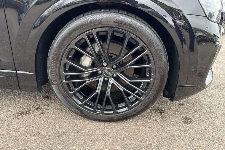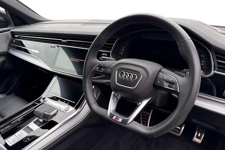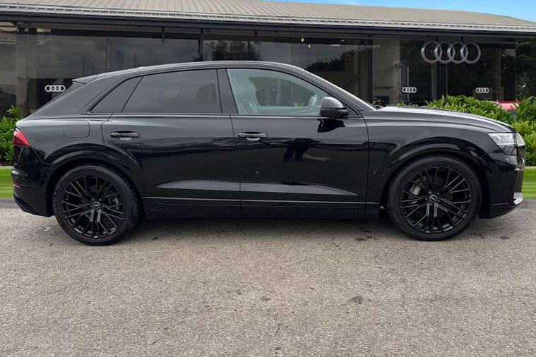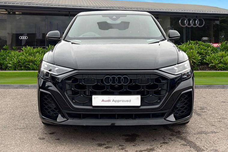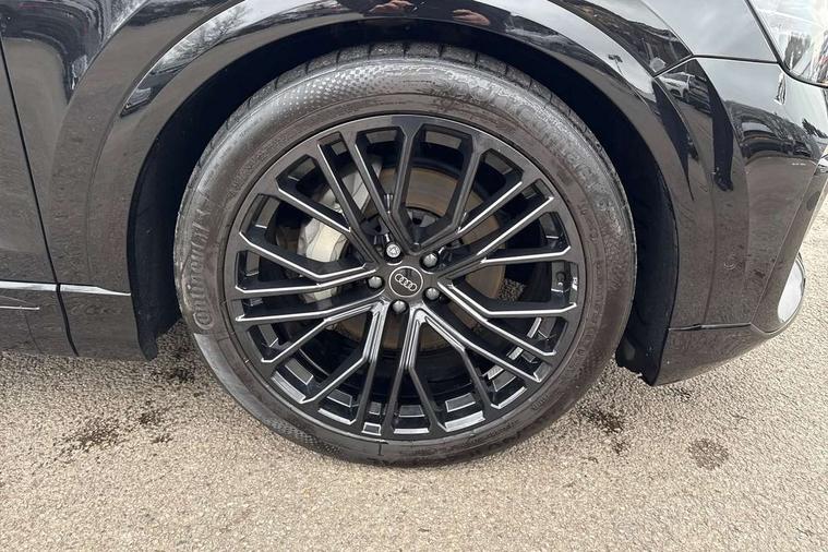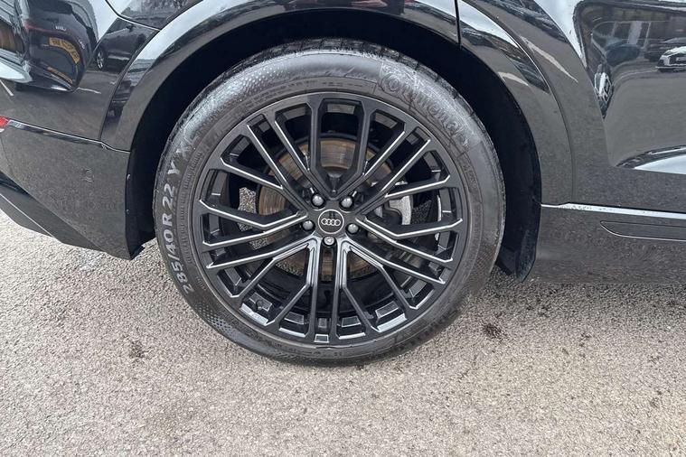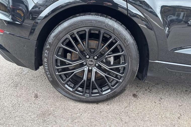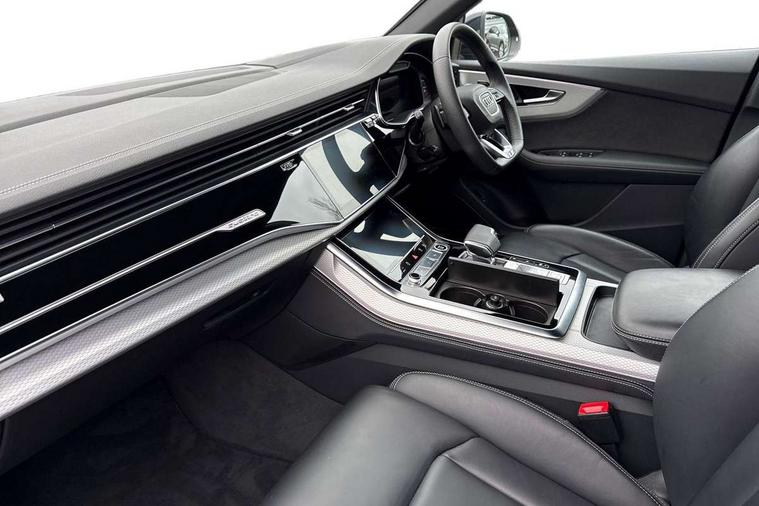10.1" and 8.6" Dual colour touchscreens, 2 USB C ports with charging functionality in the rear, 360 degree camera with top view, Audi application store, Audi connect safety and service (e-call), Audi connect with Amazon Alexa Integration, Audi drive select, Audi phone box light with wireless charging, Audi virtual cockpit plus, Automatic start/stop system, Bluetooth, Electro-mechanical PAS, Head up Display, Low washer fluid indicator, MMI navigation plus with MMI touch, Natural voice recognition, On board computer, Operating buttons in black, glass look with haptic feedback, Power operated tailgate, Remote park assist plus, Service interval indicator, Smartphone interface includes wireless Apple carplay/Android Auto, 48V Mild hybrid technology, 85 litre fuel tank, Adaptive sport air suspension, Quattro all wheel drive with self locking centre differential, Audi music interface with 2 USB ports with charge and data functions, Aux-in socket, Bang + Olufsen sound system, DAB Digital radio, 3rd brake light, Anthracite black door mirrors, Audi beam, Auto dimming frameless rear view mirror, Black exhaust tailpipes, Black single frame mask, Coming/leaving home lighting function, Digital OLED rear combination lamps, Electric front+rear windows, Electrically folding auto dimming/adjustable/heated door mirrors with memory function, LED side indicators and kerb view function for passenger side, Headlight washers, Heat insulating glass in windshield, LED rear light plus, LED signature daytime running lights, Matrix LED headlights with dynamic front and rear indicators, Platinum grey front spoiler lip and diffuser insert with honeycomb grille in black, Privacy glass - dark tinted rear and rear side windows from B-pillar backwards, Rain and light sensors, Rear side wing doors, Rear wiper, Singleframe grille surround in matte platinum grey, 3 bench rear seats in 2nd row, 3 spoke flat bottomed high multi-function leather sport steering wheel with gearshift paddles, 4 zone deluxe automatic climate control, 4-way lumbar support for front seats, 40:20:40 split folding rear bench seat, Black cloth headlining, Comfort front centre armrest, Driver seat memory function, Electrically adjustable front seats, Front head restraints, Front/rear floor mats, Heated front and outer rear seats, ISOFIX child seat mounting for front passenger seat and 2 outer rear seats with top tether child seat mounting for all 3 rear seats, LED interior ambient lighting, Luggage compartment sill protection in stainless steel, Rear centre armrest with 2 cupholders, Rear headrests, Seat cushion displaceable by 100mm in the ratio 60:40, Single front passenger seat, Stainless steel pedals, Sunvisors with illuminated vanity mirrors, Upper dashboard with contrast stitching and lower dashboard in leatherette, Black styling pack plus - Q8, City assist pack - Q8, Multi coloured extended LED Interior lighting pack - Q8, 3 point seatbelts on all seats, Audi pre sense front, Driver and front passenger, front side and curtain airbags, Electromechanical parking brake, Electronic Stability Control (ESC) including ABS, ASR and EDL, Front passenger airbag deactivation, Hill descent control, Hill hold assist, Predictive pedestrian protection, Seatbelt monitoring, Traction control, Tyre pressure loss indicator, Warning triangle and first aid kit, Advanced key, Anti theft alarm with tow away protection, Anti-theft wheel bolts and wheel loosening detection, Electronically operated child lock, Immobiliser, Decorative inserts in matte brushed aluminum with linear structure in Silver, 22" x 10.0J 10 spoke Y style black metallic audi sport alloy wheels, Tool kit, Tyre repair kit,