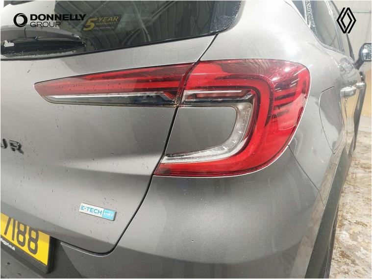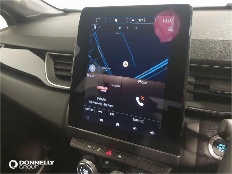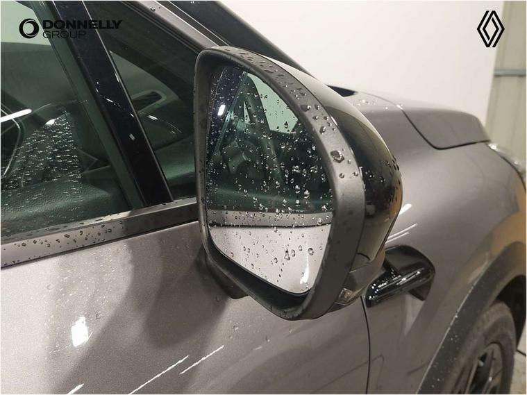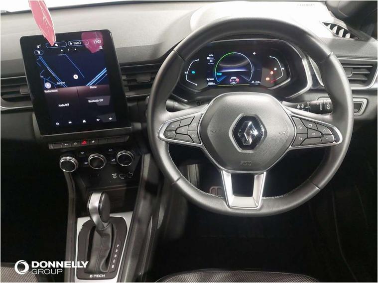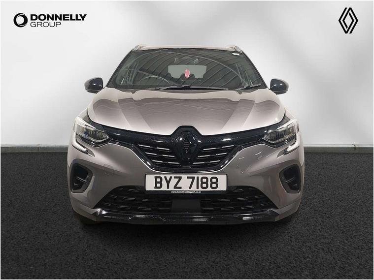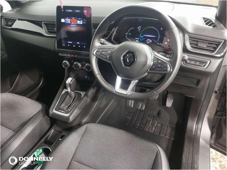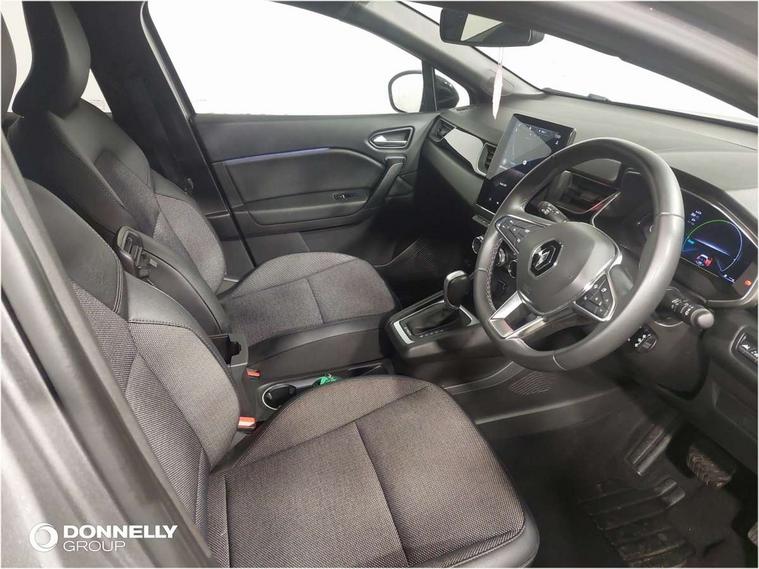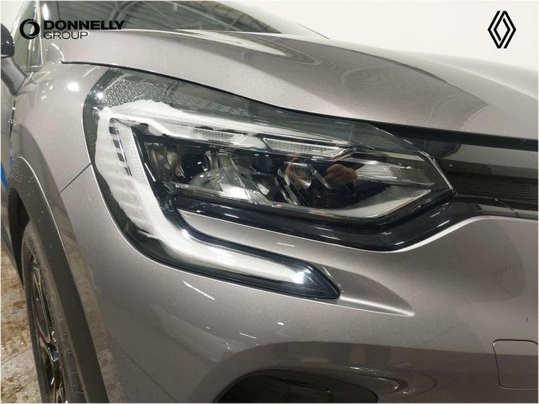 7" TFT Driver information display, Cruise control + speed limiter, EasyLink 9.3" portrait touchscreen with navigation, google search and traffic information, Eco mode, EV button to activate pure mode, Front and rear parking sensors with rear view camera, Gear change indicator, Lane departure warning system, Lane keep assist, Multisense with 3 driving modes + 8 ambient lighting colours, Renault automatic emergency assist, Smartphone integration compatible with Apple CarPlay and Android Auto, Traffic sign recognition with over speed prevention, Trip computer, Variable assistance power steering, Wireless phone charger, DAB Radio with Bluetooth and USB, Auto dimming rear view mirror, Automatic front wipers with rain sensors, Automatic headlights, Automatic high/low beam, Black 'Renault' logo at the front and rear with black 'CAPTUR' naming on tailgate, Black door mirrors, Body colour door handles, Body coloured bumpers, C Shaped LED front and rear lighting signatures with 3D effect on the rear lights, Day time running light, Drivers one touch window with anti-pinch feature, Extra tinted glass in rear windows and tailgate, Front and rear electric windows, Full LED headlights, Gloss black front air intakes surrounds, Gloss black front and rear skid plate, Gloss black lower door protection, Glossy black side door protection, LED front fog lights, LED high level brake lights, LED rear fog light, Longitudinal roof bars, Rear side wing doors, Rear wiper, Shark fin antenna, 12V Accessory socket, 3 rear headrests, 60/40 split and fixed base rear seat bench, Automatic climate control with one touch demist function and air quality regulator, Centre console storage tray, Dark roof lining, Front head restraints, Glovebox, Heating system with pollen filter, Height adjustable driver's seat, Height adjustable passenger seat, Height/reach adjust steering wheel, ISOFIX child seat fixing points on rear outermost seats, LED front roof lights, Middle console with armrest and storage, Modular boot floor, Rear air vents, Red insert on air vent, Single front passenger seat, Sliding rear bench, Synthetic leather steering wheel, Synthetic leather/cloth upholstery, 3 rear seatbelts, ABS+EBA, AEBS, B Brake Mode - One pedal driving with increased regenerative braking, Distance warning alert, Driver and front passenger, side, head and curtain airbags, Driver height adjustable seat belt, Electric parking brake with auto hold function, Electronic stability control, Front and rear no seatbelt warning sound, Front dash warning indicator in case of heavy braking, Front driver and passenger side airbag deactivation, Hill start assist, Rear door and window child locking function for rear door, Tyre pressure warning light, Anti drill door locks and locking fuel cap, Central door locking, Deadlocking system, Hands free keycard with push button and start/stop function, RAID (Renault Anti-Intruder Device) automatic door locking, Black soft touch dashboard, Glossy black insert on dashboard, 18" Shiny black pasadena diamond cut alloy wheels,