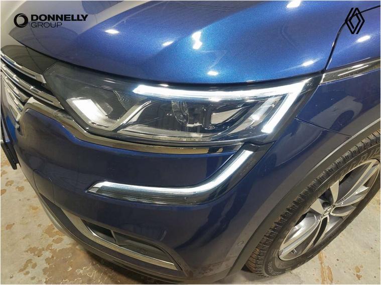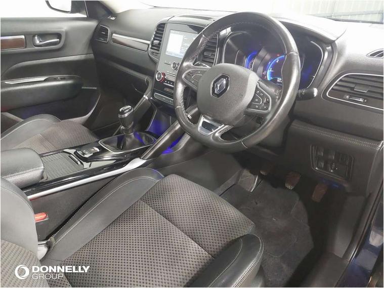 Apple car play/Android Auto, Blind spot monitoring, Cruise control + speed limiter, Digital speedometer, Door/boot open warning light, Eco mode, Exterior temperature gauge, Front and rear parking sensors, Low fuel level warning light, PAS, R-Link 2 multimedia system with 7" touch screen, TomTom Live 3D navigation, european mapping and app store, Rear parking camera, Rev counter, Traffic sign recognition, Trip computer, Visio system - lane departure and high beam assist, Voice control system, 4 speakers, Auxiliary input socket, DAB Radio with Bluetooth and USB, Fingertip controls for audio system, Automatic headlights and windscreen wipers, Body colour door handles, Body coloured door mirrors, Electric adjustable/heated/folding door mirrors, Electrochrome rear view mirror, Extra tinted glass in rear windows and tailgate, Front and rear electric windows, Front and rear towing rings, Front fog lights, Heated rear windscreen, LED daytime running lights, Longitudinal roof bars, Panoramic sunroof, Rear wiper, 3 height adjustable rear headrests, 3 seat rear bench, 60/40 split folding rear seat, Air recirculation system, Ambient lighting, Centre rear armrest with cup holder, Driver's seat with lumbar adjustment, Driver/passenger reading lights, Dual zone automatic climate control, Front centre armrest with storage, Front courtesy lights, Heated and cooled front cupholders, Height adjustable driver's seat, Height adjustable front headrests, Height adjustable passenger seat, Height/reach adjust steering wheel, Illuminated luggage compartment, Illuminated sun visor mirrors, Isofix system on outer rear seats, Leather steering wheel, One touch easy folding rear seating system, Pollen filter, Rear courtesy lights, Rear passenger heating ducts, Synthetic leather/cloth upholstery, Two 12V accessory power outlets, ABS + EBD + EBA, Driver/passenger 2 stage auto adaptive airbags, Electronic parking brake, ESP with ASR and UCL (understeer control logical), Front and rear curtain airbags, Front lateral airbags, Front side airbags, Height adjustable front seatbelts + pretensioners, Hill start assist, Inertia reel 3 point seatbelts on all seats, Manual passenger airbag deactivation function, Seatbelt warning, Side impact protection, Traction control, Tyre pressure monitor, Anti-drill door locks/ignition barrel, Hands free Renault card, Insurance approved Cat 1 alarm system, Insurance Approved Immobiliser, RAID (Renault Anti-Intruder Device) with automatic door locking, Superlocking, 18" Agapi diamond cut alloy wheels,