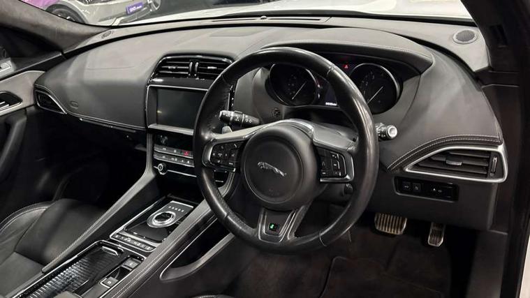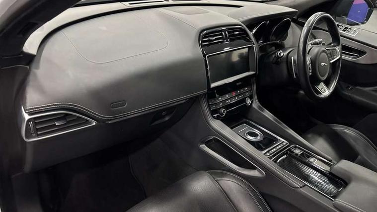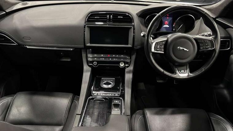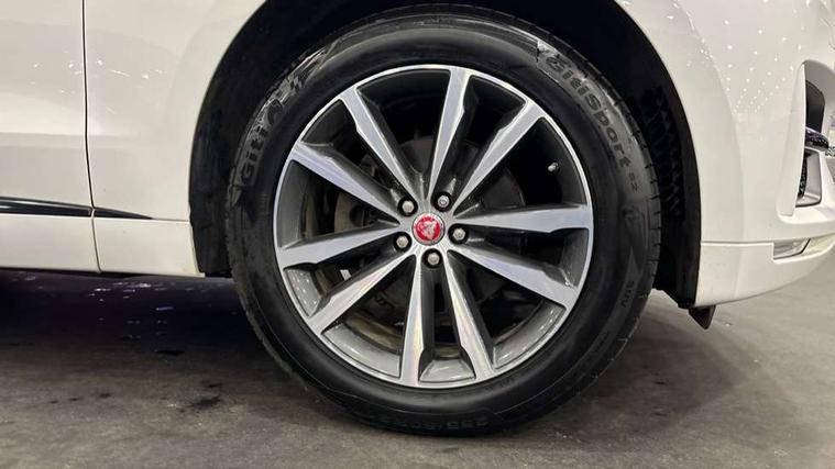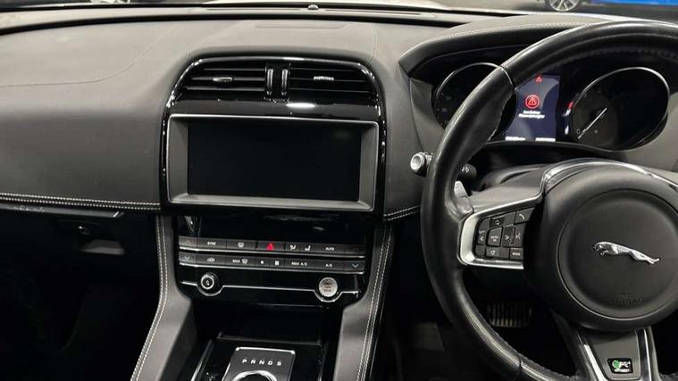 Analogue dials with 7" central TFT display, Auto speed limiter, Driver condition monitor, Eco driving style assistant, Front parking aid, Lane departure warning system, Lane keep assist with driver alert control, Outside temperature gauge, Pro services and wifi hotspot, Push button starter, Rear parking aid, Satin chrome surround on touch screen, Service interval indicator, Servotronic speed sensitive power steering, Start up sequence with movement in dials and lighting, Traffic sign recognition, Trip computer, Voice control system, All terrain progress control, AM/FM radio, Bluetooth connectivity including audio streaming, DAB Digital radio, Dynamic volume control, InControl protect, USB/iPod connection, 3 flash lane change indicators, Approach Illumination, Auto dimming rear view mirror, Automatic headlights, Body colour bumpers, Body colour door mirrors, Dual tailpipe, Electric front/rear windows with one touch/auto up/down, F-Pace badge, Front fog lights, Green tinted heat insulating glass, Headlight washers, Heated rear window with timer, LED tail lights, Non acoustic front windscreen, R-sport body kit, R-Sport front bumpers, R-Sport rear bumpers, Rain sensor windscreen wipers, Rear fog lights, Rear metal tread plates, Rear wiper, Trailer stability assist, Variable front intermittent wipers, 12V power point front, 12V power point in luggage area, 2nd row air vents, 3 rear headrests, 40:20:40 split folding rear seat, Bright metal foot pedals, Centre armrest console, Door sill tread plates, Fold flat front seats, Front centre armrest with storage compartment, Illuminated glovebox, Illuminated luggage compartment, Interior front door handles with separate locking switches, ISOFIX on outer rear seats, Jaguar sense, JaguarDrive selector, Leather steering wheel, Multifunction steering wheel, Overhead lighting console, Perforated grained leather upholstery with contrast stitching, Premium carpet mats, Rear armrest with 2 cupholders, Reversible boot floor, Satin chrome gearshift paddles, Shopping hook in boot, Sunvisors with illuminated vanity mirrors, Tie down hooks in luggage area, Twin front covered cupholders, Connect pro pack - F-Pace, 3x3 point rear seatbelts, ABS, Anti-whiplash front headrests, Autonomous emergency braking (AEB) with forward facing camera, Brake pad warning light, Driver/Front Passenger airbags, DSC - Dynamic Stability Control, Electronic parking brake, Front and rear curtain airbags, Front and rear seatbelt reminder, Front passenger seat occupancy sensor, Front side airbags, Grey brake calipers, Hill start assist, Power child locks, Torque vectoring brake, Traction control, Tyre pressure monitoring system, Immobiliser, Keyless Start, Perimeter alarm, Remote central locking, Valet mode, Luxtec door trim, Luxtec wrapped instrument panel, Satin chrome centre console surround,