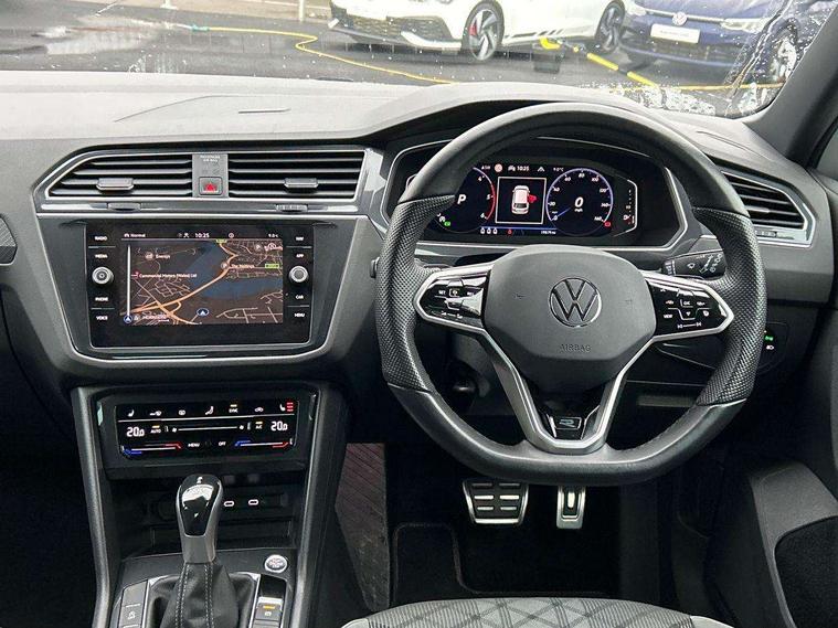 Adaptive cruise control ACC stop and go including speed limiter, App-Connect incl. App-Connect Wireless for Apple CarPlay and Android Auto, Bluetooth phone integration system, Distance control assist, Driver alert system, Driver profile selection, Dynamic road sign display, eCall emergency call system, Electromechanical speed sensitive power steering, Engine start/stop button, Lane keeping system Lane Assist, Lights on warning, Multifunction front facing camera, Outside temperature display, Premium multifunction display with multi colour display, Remote control boot opening, Rev counter, Revision / skills operating concept travel assistant, Service interval indicator, Speed limit display, Start/stop system with regenerative braking, Trip computer, Warning sound and light for doors and tailgate open, Battery regeneration during braking, Diesel particulate filter, Misfuel prevention device for diesel engine, Selective Catalytic Reduction, XDS electronic differential lock for improved traction and handling, 4 X 20 watt output, 8 Speakers, Diversity antenna for FM reception, Radio, SD card slot, Simultaneous pairing of 2 compatible mobile devices, SMS functionality - read, compose and send SMS messages using touch-screen display, Title and cover art display, USB C ports, Auto dimming interior rear view mirror, Automatic headlight control system, Body colour door handles, Chrome moldings on the side windows, Coming/leaving home lighting function, Dynamic headlight range control, Front and rear electric windows, Heated rear window, High level 3rd brake light, Laminated safety glass windshield, heat and sound insulating, LED headlamps with LED separate daytime running light and dynamic cornering light, LED rear combination lamps, LED rear number plate lights, License plate carrier in front and rear, Poor weather light and cornering light, R Line body kit, R Line side sills, Rain sensor windscreen wipers, Rear exhaust tailpipe, Rear fog lamp, Rear side wing doors, Rear spoiler in R style, Rear windscreen washer and wiper with interval delay, Side and rear windows in heat insulating glass, Trailer Stability Programme, Unique R Line badging, Windscreen wipers/ intermittent wipe + 4 position delay, 12V outlet in center console rear and in luggage compartment, 12V outlet in front and tray, 2 cup holders in front, 2 LED front reading lights, 2 LED rear reading lights, 3 bench rear seats in 2nd row, 3 rear headrests, 4 load lashing points, 40:20:40 split folding rear seats, Air Care Climatronic 3 zone automatic climate control with enhanced air filter and controls in the rear, Backrest release for left front seat, Black headlining, Brushed stainless steel pedals and footrest, Carpet mats in front and rear with decorative stitching in Gray, Climate control unit rear with touch function, Door and side trim panel in foam film, insert in leatherette, Front centre armrest, Front footwell illumination, Front seats head restraints (x-adjustment), Height adjustable front seats, Height/reach adjust steering wheel, Instrument lighting white adjustable panel illumination, Interior light with delay, Isofix Preparation 2 Rear child seats, Leather gear knob, Lockable cooled glovebox, Luggage compartment lighting, Luggage net, Rear bench seat asymetrically split folding, longitudinally movable and folding with load-through hatch and center armrest, Remote unlocking for rear seat backrest, Removable luggage cover, Removable rear headrests, Safety optimised front head restraints, Single front passenger seat, Sliding/reclining rear seats, Standard rear seat release, Storage compartment in driver's door, Storage compartment in passenger's door, Storage compartment in rear doors, Storage compartments in luggage area left and right, Storage tray on dashboard, Sun visors with illuminated vanity mirrors, Top front comfort seats, Variable boot floor, height adjustable and removable, Driver assistance pack plus - Tiguan DSG, 3 point seat belt for centre rear seats, 3 point seat belts with seat belt pretensioners for the outer rear seats, Active bonnet, Curtain airbags for front and rear passengers, Driver/Front Passenger airbags, Drivers knee airbag, Electronic parking brake with auto hold, Electronic Stability Control with driver steering recommendation, ABS, ASR, EDL, EDTC and trailer stabilization, Front assist with autonomous emergency braking (for Adaptive Cruise Control ACC up to 130 mph), Front disc brakes, Front passenger airbag deactivation, Front side airbags, Height adjustable front 3 point seatbelts + pretensioners, Hill hold control, Manual child proof rear door locks, Pedestrian monitoring system, Power assisted brakes, Proactive passenger protection system in combination with front assist, Rear disc brakes, Rigid safety cell with front and rear crumple zones, Two tone horn, Warning sound and light for front seat belts if unfastened, Anti theft alarm system with interior monitoring, backup horn and towing protection, Anti theft wheel bolts, Electronic engine immobiliser, Tool kit,