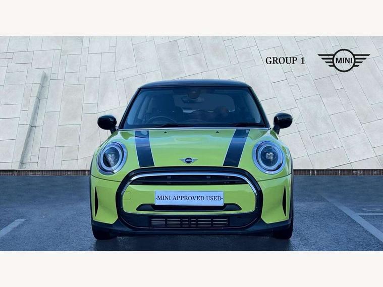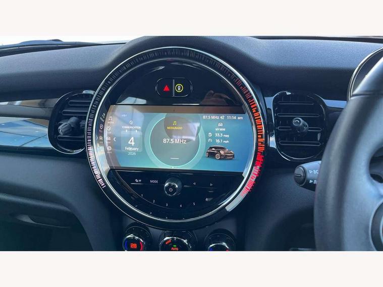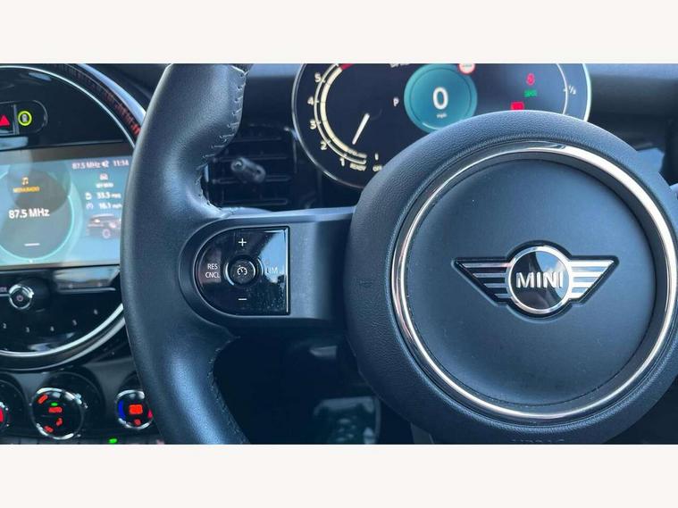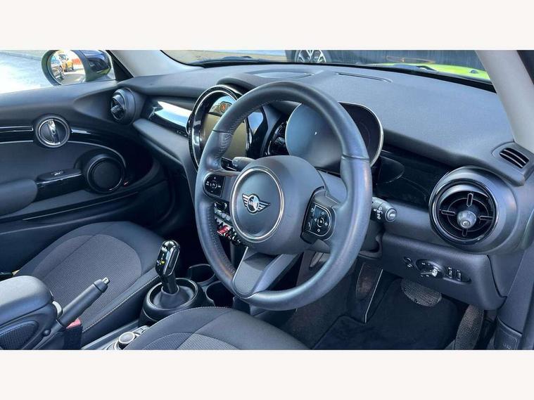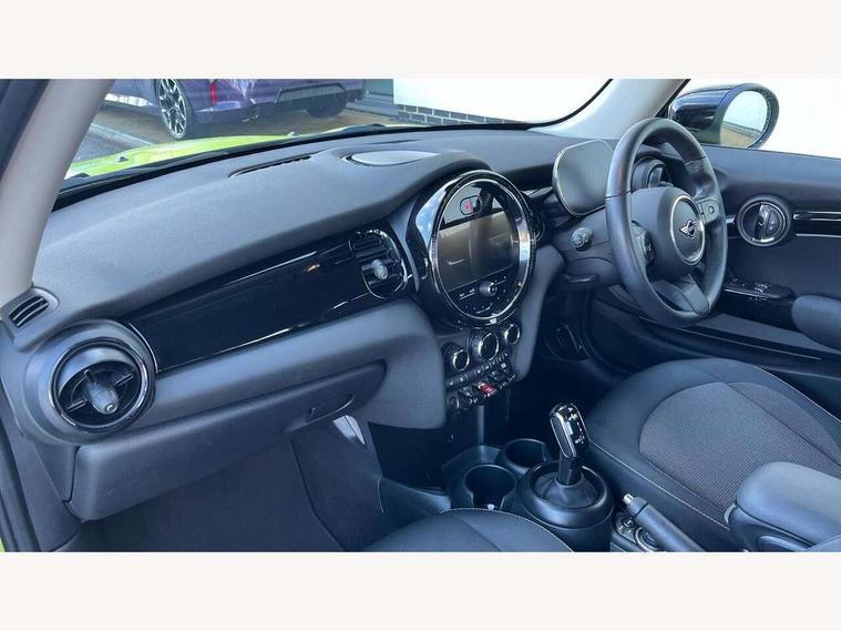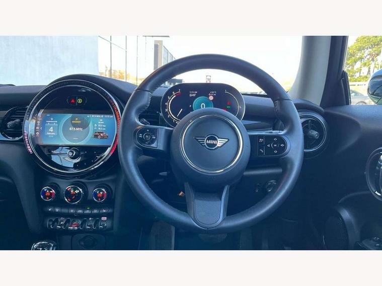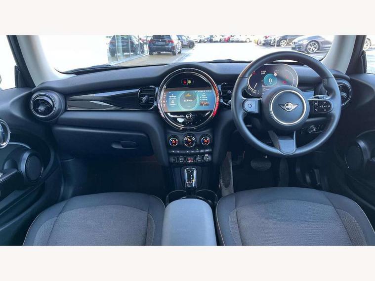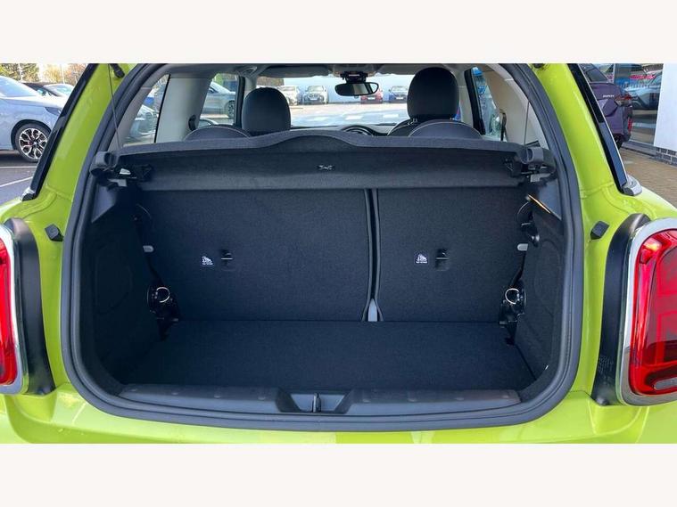 Apple CarPlay, Automatic start/stop function with brake energy recuperation, Compatible mobile phone bluetooth with audio streaming, Cruise control with brake assist, Electro-mechanical speed dependant steering assistance, Flexible car sharing preparation, Instrument cluster, Mini E-call, MINI TeleServices, On board computer, Service interval indicator, Double Vanos system, Fully variable valve control, High precision injection, Performance Control, Steptronic transmission with double clutch, 8.8" touchscreen with LED ring, FM tuner and DAB digital radio, 3rd brake light, Automatic headlight activation switch, Body colour fuel filler cap, Chrome border high gloss black slats radiator grille, Dynamic brake lights, Electric front windows, Exhaust tailpipe on left with chrome finisher, Heated rear window, Heated windscreen washer jets, LED headlight with closed ring and daytime driving lights, Metal door sill strips with MINI imprint, Model logo Cooper on right of tailgate, Rain sensor window wipers, Rear fog lights, Rear LED lights with union jack design, Rear window wiper, Side scuttle panel with integrated indicator, Sun/heat protection glass, White indicator lenses, 12V Accessory socket in centre console, 2 seat bench in 2nd row, 4 lashing eyes in luggage compartment, 60/40 split folding rear seat, Ambient lighting, Carbon black colour line - Knee roll and door armrest, Chrome interior highlights, Cupholders, Front and rear head restraints, Front and rear isofix with front passenger airbag deactivation, Front floor mats in velour, Glove compartment, Height and length steering column adjustment, Interior lighting with 12 different colours across the dashboard, underneath door bezel with illuminated laser-engraved design on central display, Leatherette gearshift lever and handbrake gaiters, LED reading lights, vanity mirror lights, front foot well light and spotlight on front seats, Manual air conditioning, Mechanical seat adjustment - forward/back & backrest for front seats and driver seat height adjust, Multifunction steering wheel, Passenger seat height adjuster, Satellite grey headlining including grab handles and clothes hooks, Single front passenger seat, Sport leather steering wheel with speed limiter and audio/communication controls, Storage compartments in doors, Sunvisors with vanity mirrors, 3 point seatbelts on all four seats, 6 Airbags - front, side, head and seat belt tensioners, Anti-lock braking system (ABS), DSC - Dynamic Stability Control, Front and rear disc brakes, Single tone fanfare horn, Tyre pressure monitoring system, Alarm system with tilt sensor, monitoring doors, bonnet interior and tailgate, Electronic vehicle immobiliser, Start/stop toggle with keyless go, Piano black interior trim, Tool kit, Tyre repair kit,