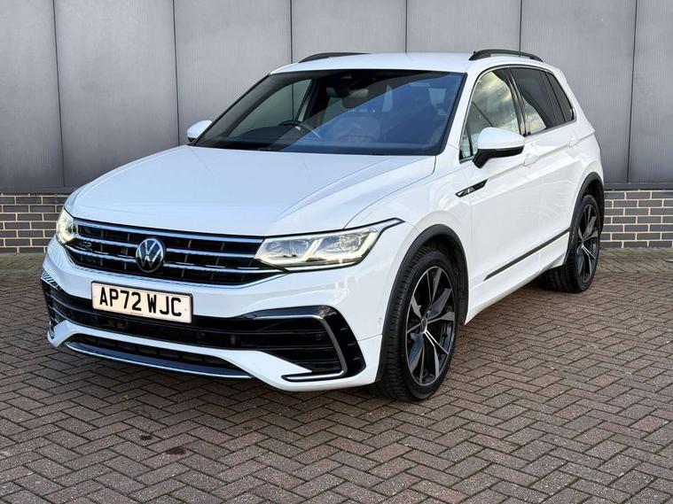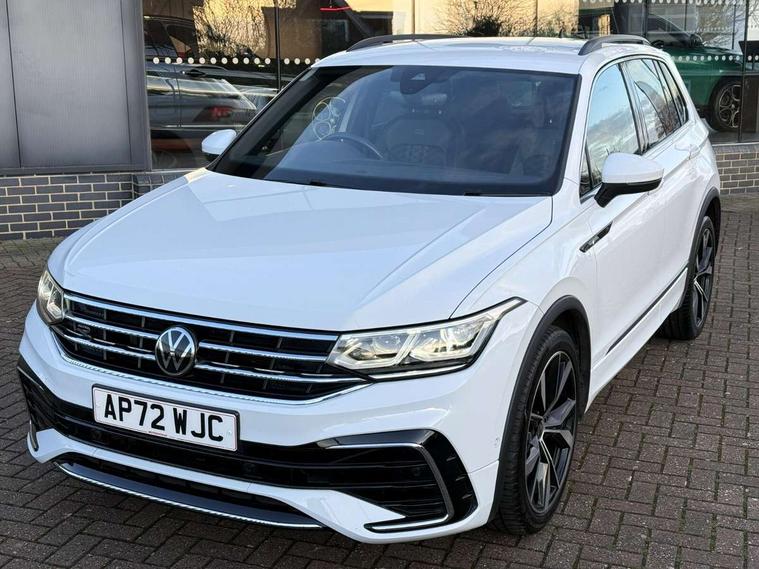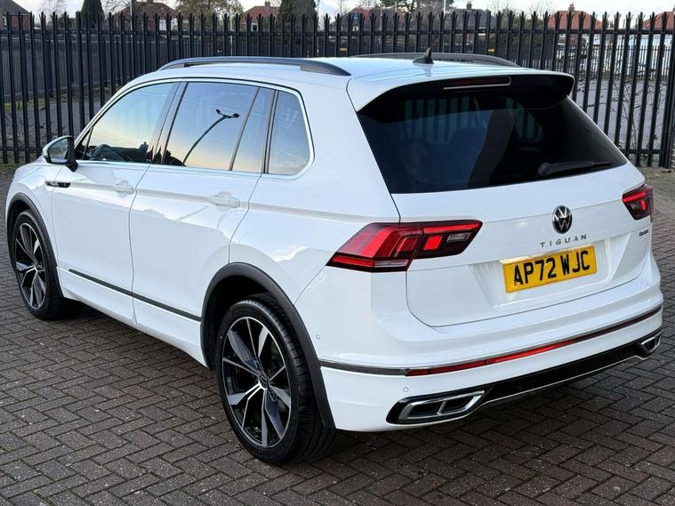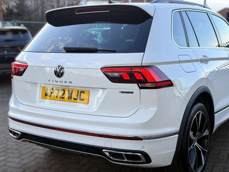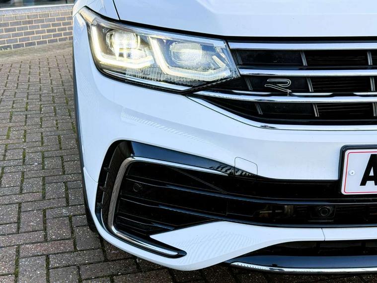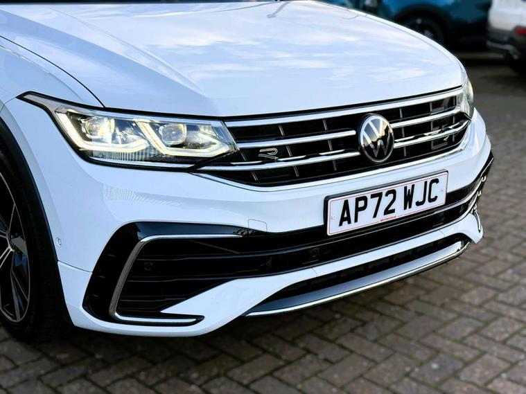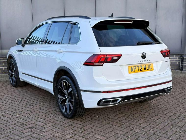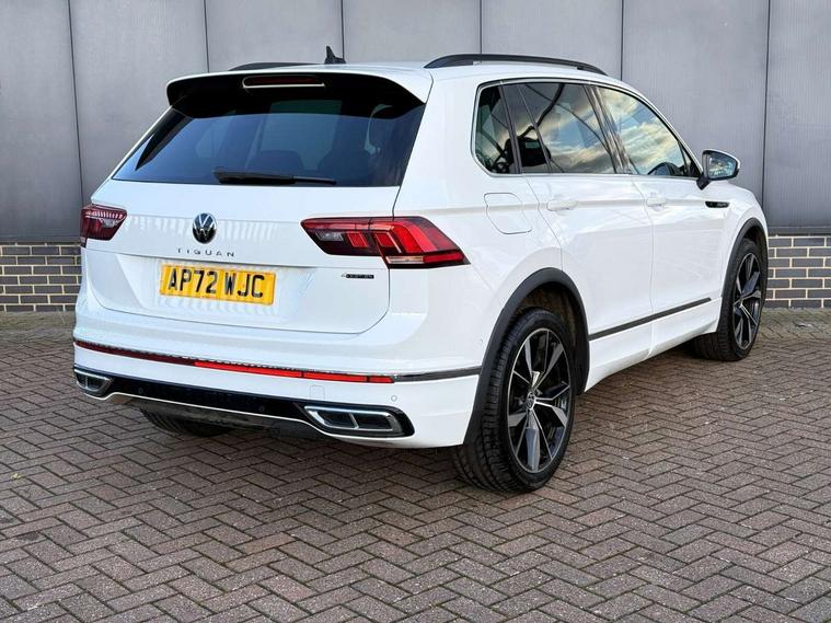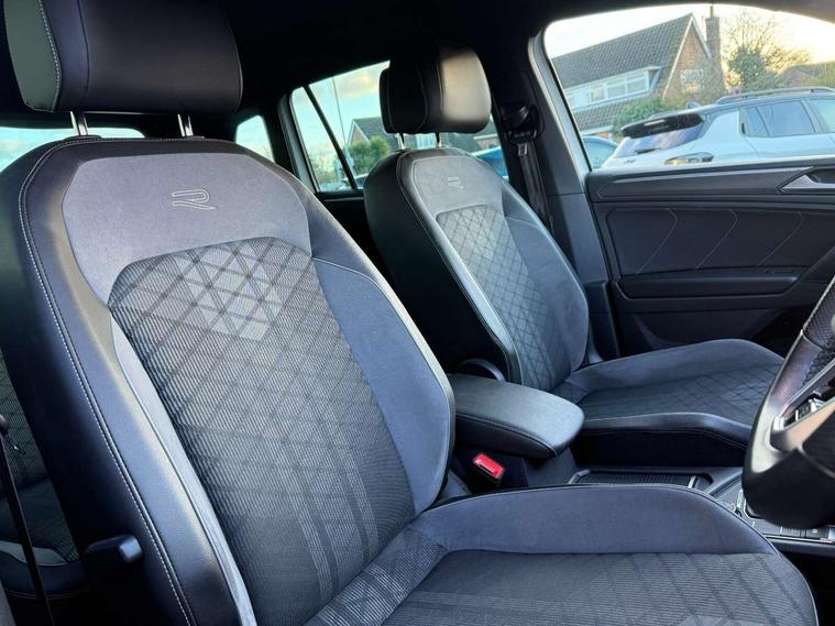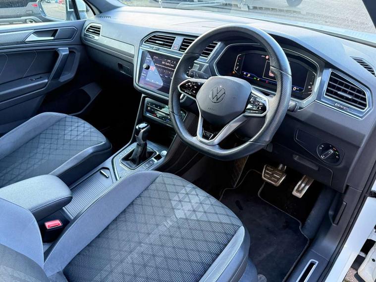 Adaptive cruise control ACC stop and go including speed limiter, App-Connect incl. App-Connect Wireless for Apple CarPlay and Android Auto, Bluetooth phone integration system, Distance control assist, Driver alert system, Driver profile selection, Dynamic road sign display, eCall emergency call system, Electromechanical speed sensitive power steering, Engine start/stop button, Lane keeping system Lane Assist, Lights on warning, Multifunction front facing camera, Outside temperature display, Premium multifunction display with multi colour display, Remote control boot opening, Rev counter, Revision / skills operating concept travel assistant, Service interval indicator, Speed limit display, Start/stop system with regenerative braking, Trip computer, Warning sound and light for doors and tailgate open, All wheel drive - 4Motion, Battery regeneration during braking, Diesel particulate filter, Misfuel prevention device for diesel engine, Selective Catalytic Reduction, XDS electronic differential lock for improved traction and handling, 4 X 20 watt output, 8 Speakers, Diversity antenna for FM reception, Radio, SD card slot, Simultaneous pairing of 2 compatible mobile devices, SMS functionality - read, compose and send SMS messages using touch-screen display, Title and cover art display, USB C ports, Auto dimming interior rear view mirror, Automatic headlight control system, Body colour door handles, Chrome moldings on the side windows, Coming/leaving home lighting function, Dynamic headlight range control, Front and rear electric windows, Heated rear window, High level 3rd brake light, Laminated safety glass windshield, heat and sound insulating, LED headlamps with LED separate daytime running light and dynamic cornering light, LED rear combination lamps, LED rear number plate lights, License plate carrier in front and rear, Poor weather light and cornering light, R Line body kit, R Line side sills, Rain sensor windscreen wipers, Rear exhaust tailpipe, Rear fog lamp, Rear side wing doors, Rear spoiler in R style, Rear windscreen washer and wiper with interval delay, Side and rear windows in heat insulating glass, Trailer Stability Programme, Unique R Line badging, Windscreen wipers/ intermittent wipe + 4 position delay, 12V outlet in center console rear and in luggage compartment, 12V outlet in front and tray, 2 cup holders in front, 2 LED front reading lights, 2 LED rear reading lights, 3 bench rear seats in 2nd row, 3 rear headrests, 4 load lashing points, 40:20:40 split folding rear seats, Air Care Climatronic 3 zone automatic climate control with enhanced air filter and controls in the rear, Backrest release for left front seat, Black headlining, Brushed stainless steel pedals and footrest, Carpet mats in front and rear with decorative stitching in Gray, Climate control unit rear with touch function, Door and side trim panel in foam film, insert in leatherette, Front centre armrest, Front footwell illumination, Front seats head restraints (x-adjustment), Height adjustable front seats, Height/reach adjust steering wheel, Instrument lighting white adjustable panel illumination, Interior light with delay, Isofix Preparation 2 Rear child seats, Leather gear knob, Lockable cooled glovebox, Luggage compartment lighting, Luggage net, Rear bench seat asymetrically split folding, longitudinally movable and folding with load-through hatch and center armrest, Remote unlocking for rear seat backrest, Removable luggage cover, Removable rear headrests, Safety optimised front head restraints, Single front passenger seat, Sliding/reclining rear seats, Standard rear seat release, Storage compartment in driver's door, Storage compartment in passenger's door, Storage compartment in rear doors, Storage compartments in luggage area left and right, Storage tray on dashboard, Sun visors with illuminated vanity mirrors, Top front comfort seats, Variable boot floor, height adjustable and removable, Driver assistance pack plus - Tiguan DSG, 3 point seat belt for centre rear seats, 3 point seat belts with seat belt pretensioners for the outer rear seats, Active bonnet, Curtain airbags for front and rear passengers, Driver/Front Passenger airbags, Drivers knee airbag, Electronic parking brake with auto hold, Electronic Stability Control with driver steering recommendation, ABS, ASR, EDL, EDTC and trailer stabilization, Front assist with autonomous emergency braking (for Adaptive Cruise Control ACC up to 130 mph), Front disc brakes, Front passenger airbag deactivation, Front side airbags, Height adjustable front 3 point seatbelts + pretensioners, Hill hold control, Manual child proof rear door locks, Pedestrian monitoring system, Power assisted brakes, Proactive passenger protection system in combination with front assist, Rear disc brakes, Rigid safety cell with front and rear crumple zones, Two tone horn, Warning sound and light for front seat belts if unfastened, Anti theft alarm system with interior monitoring, backup horn and towing protection, Anti theft wheel bolts, Electronic engine immobiliser, Tool kit,