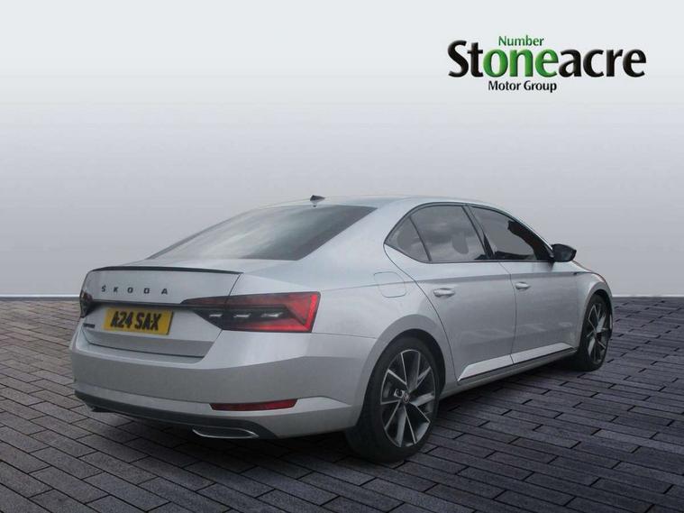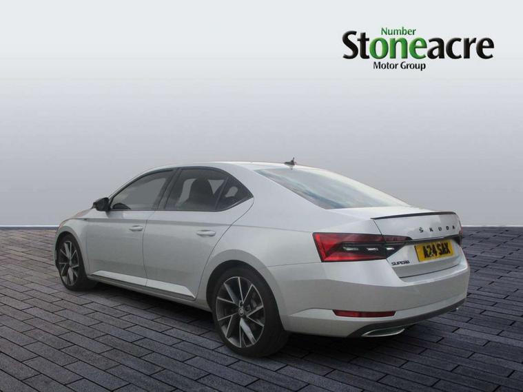 Bluetooth system, CareConnect and Emergency Call, Columbus HDD satellite 3D map navigation with 9.2" colour touch screen, web radio, integrated Wi-Fi, Driver fatigue sensor, Front assist with pedestrian protection, Progressive dynamic steering, Stop/start engine system and energy recovery, Virtual cockpit, Voice control system, Wireless smartlink apple carplay, SmartLink+ android auto, XDS+, 2 USB ports, Bolero radio with 8" touchscreen display, DAB Digital radio, 3rd brake light, Aero front windscreen wipers with intermittent function, Auto dimming rear view mirror, Black rear badge, Body colour door handles, Cornering front fog lights, Electrically adjustable heated and folding door mirrors with memory function, Front and rear electric windows, Full matrix LED headlights with AFS LED DRL integrated with headlight washer LED rear lights(High function), dynamic indicators and lighting animation, Gloss black exterior door mirrors with sports styling including front grill, side strip and window surrounds, Gloss black grille surround with gloss black rib elements, Gloss black rear spoiler, Gloss black strip between rear lights, Light assistant (coming/leaving home/tunnel light), Privacy glass, Rain sensor, Rear exhaust diffuser styling elements, Rear side wing doors, Sport Line badging, 12v power point in centre console, 3 seat bench in 2nd row, Black roof headlining, Black textile floor mats, Carbon optic interior elements, Electric auxiliary air heater, Front and rear footwell illumination, Front armrest with storage box, Height adjustable front and rear head restraints, Ice scraper, Illuminated and cooled glovebox, Interior lights with control switches, Isofix child seat fittings on outer rear seats, LED front and rear reading lights, Microsuede/leather upholstery with silver diamond stitching sports seats, One umbrella compartments in driver door with one umbrella in drivers door, Overhead glasses storage compartment, Rear centre armrest with cupholders, Removable parcel shelf, Single front passenger seat, Split folding rear seats, Storage compartment with cover in luggage compartment side panels, Ticket holder on A Pillar, LED package plus - Superb, 3 rear seatbelts, 7 airbags - Front, front side, curtain, driver's knee airbag with front passenger deactivation switch, Driver and passenger seatbelts with warning light, Electronic parking brake, ESC including ABS, EBV, MSR, ASR, EDS, HBA, DSR, RBS, CBC, multi-collision brake (MKB) and Auto hold, Hill start assist, Power operated child lock in rear doors, Tyre pressure monitor, Alarm with interior monitoring tilt sensor and back up horn, Electronic engine immobiliser, Keyless entry and start/stop, Remote central locking with SAFE system, Third remote key,