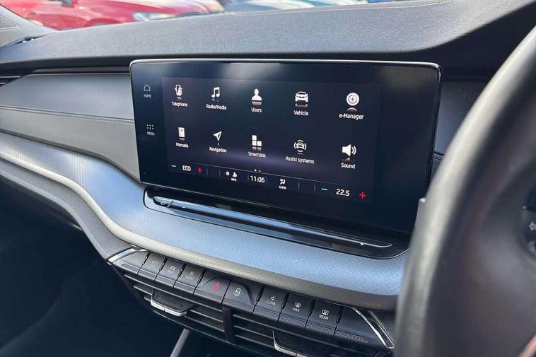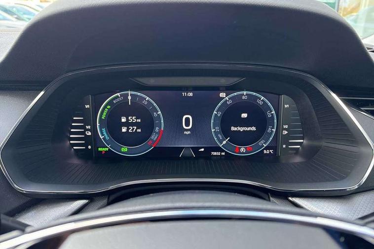 1x USB Type C port in rear view mirror (charging only), 2x USB Type C ports in rear of front centre armrest (charging only), Bluetooth system, Boot lid release from inside vehicle (electrically), Columbus satellite navigation with 10" touchscreen display, E mode button for electric/hybrid drive, eCall emergency system, Electro-mechanical power steering, Front and rear parking sensors with manoeuvre assist, Front assist system, Smartlink (includes android auto and mirrorlink), Speed limiter, Turn Assist, Unique iV instrument panel, Virtual Cockpit - 10.25" digital display, Voice control system, Wireless SmartLink for Apple Car Play, 10 amp mains UK 3 pin charge cable mode 2, 16 amp AC charge cable for wallbox/charge points mode 3, E-noise generator for electric drive with noise emitted upto speed of 50km/h, 2x USB Type C ports (for charging and data transfer), 8 speakers, DAB Digital radio, Aero front windscreen wipers with intermittent function, Black roof rails, Black window surrounds, Body colour door mirrors and handles, Chrome grille surround, Dimming rear view mirror, Electric front and rear windows, Electrically adjustable and heated door mirrors, Heated rear windscreen, High level third brake light, Ice scraper in fuel cap, Rain and light sensors, Rear fog light on one side, Rear side wing doors, Rear spoiler, Rear window wiper, Unique iV badge on tailgate, 3 seat bench in 2nd row, 4 foldable roof handles, Charging socket cover on front left fender, Chrome inner door handles, Climatronic dual-zone electronic air conditioning, Cloth upholstery, Front centre armrest, Front head restraints, Grey headlining, Height adjustable driver and front passenger seat with lumbar support, Illuminated air conditioned glovebox, Leather trimmed gearshift lever, Luggage compartment lighting with two side lamps, Parcel shelf - rolling, Satin black textured with artificial stiching in dash board pads, Single front passenger seat, Sport button for hybrid drive delivering maximum system performance, Storage compartment for charging cables under the luggage compartment mat, Sunglasses storage, Textile floor mat set, Ticket holder, Two-spoke leather multi function steering wheel with paddles, Umbrella in door panel, Unsplit rear bench seat and split folding backrest, 3 point front/outer rear seatbelts+pre-tensioners, Alarm with interior monitoring, tilt sensor and back up horn, Automatic door unlocking in case of crash, Automatic fuel cut off in case of crash, Automatic warning lights in case of emergency braking, Curtain airbags and front side airbags, Driver and front passenger airbags, Drivers knee airbag, Electronic parking brake, Emergency call and proactive services, ESC including ABS, EBV, MSR, ASR, EDS, HBA, DSR, Hill hold control, Hill start assist, ISOFIX on front passenger seat and outer rear seats, Manual rear child locks, Passenger airbag deactivate switch, Rear disc brakes, Two tone horn, Tyre pressure monitor, Visual and acoustic seat belt reminder, Warning reflectors in front door, Door locks with immobiliser, Keyless start/stop, Remote central locking, Aluminium decorative inserts, Unique decorative door sills front and rear, Tyre repair kit,