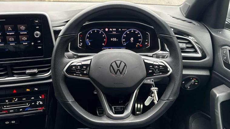 10.25" Digital cockpit pro, Bluetooth mobile phone interface, Driver alert system with fatigue detection, Driver tips and journey analysis, Emergency call service, Lane keeping system Lane Assist, Modified key software - reduce switch off time for key status change to Long no motion, Online services, Park assist including front and rear parking sensors, Service interval indicator, Tailgate/trunk lid release from outside, Think blue trainer driver tips and journey analysis, Warning sound and light for front seatbelts unfastened, Wireless app connect, Battery regeneration during braking, Start/stop function with battery regeneration, Diversity antenna for FM reception, Front and rear 6 speakers, Music playback - MP3, WMA and AAC files, Premium USB cable in choice of either Apple or Android smartphone compatibility, SD card slot, Simultaneous pairing of 2 compatible mobile devices, Title and cover art display, We Connect and We Connect Plus functionality, 3rd brake light, Auto dimming interior rear view mirror, Automatic hazard lights activation under emergency braking, Automatic headlight control with LED separate daytime running lights with coming/leaving home function, Extended roof spoiler, Exterior mirrors aspherical on driver side, convex on front passenger side, External USB type C socket and charging sockets, Front windscreen wiper with intermittent wipe and 4 position delay, Heated rear window, LED Plus headlamps, LED rear combination lamps, LED rear number plate lights, LED tail lamp rear comination lamps, Power windows with comfort operation and circuit breaker, R-Line design body coloured bumpers, Rain sensor, Rear exhaust tailpipe, Rear fog light on one side and reversing lights on both sides, Rear side wing doors, Rear wash/wipe with intermittent wipe setting, Remote electrically foldable door mirrors, puddle lights and reverse activated passenger's door mirror, 12V power socket in centre console, 3 rear head restraints, 3 seat bench in 2nd row, 4 load lashing points in luggage compartment, Air care climatronic air conditoning system with active combination filter and 2-zone temperature control, Black roof lining, Chrome plated radiator grille inserts, air vent surrounds and light switch surrounds, Door and side trim panel with leatherette insert, Drawer under drivers seat, Front + rear carpet mats, Front centre armrest, Front cupholders x 2, Front footwell illumination, Front reading light, Front scuff plates with R logo, Instrument lighting, white adjustable panel illumination, Interior ambient lighting and surround lighting, Interior light delay, Isofix child seat preparation, Leather gearshift handle, Load-through provision with cup holder when folded down ('Unsplit rear seat bench, split folding backrest, with centre armrest), Luggage compartment lighting, Single front passenger seat, Stainless steel pedals, Storage compartment in left and right luggage area, Storage compartment in rear doors, Storage compartments in driver and front passenger doors, Sunvisors with illuminated vanity mirrors, Variable boot floor, height adjustable and removable, Driver assistance pack without proactive passenger protection - T-Roc, 3 point height adj front seatbelts + pretensioners, 3 point seatbelts in outer rear with ECE label, ABS, Child locks on rear doors, Driver and front passenger airbag with front passenger airbag deactivation, Driver and front passenger safety-optimised head restraints, Drivers seatbelt reminder, Electronic parking brake, Electronic Stability Control (ESC) inc EDL (Electronic Differential Lock) and ASR (Traction Control), Front and rear passengers curtain airbag system including front side airbags, Front assist with city emergency braking and pedestrian monitoring, Front seat side impact airbags, Hill start assist, Predictive pedestrian protection, Rear disc brakes, Single tone horn, Tyre pressure loss indicator, Volkswagen roadside assistance, Alarm with interior protection, Anti-theft alarm system with interior monitoring, backup horn, and towing protection, Remote central locking with SAFELOCK, radio remote control with 2 remote control folding keys, Trims for alloy wheels,