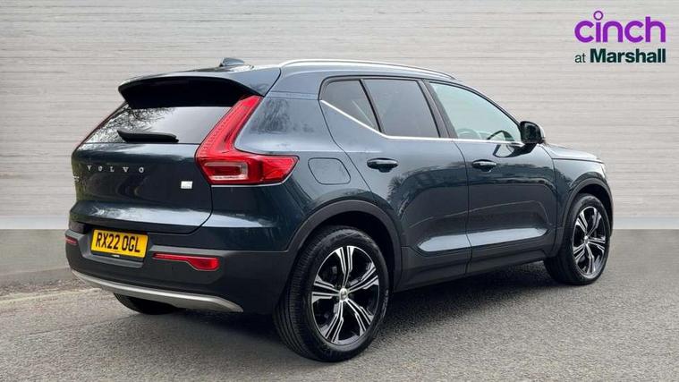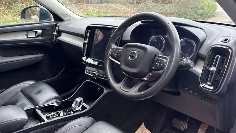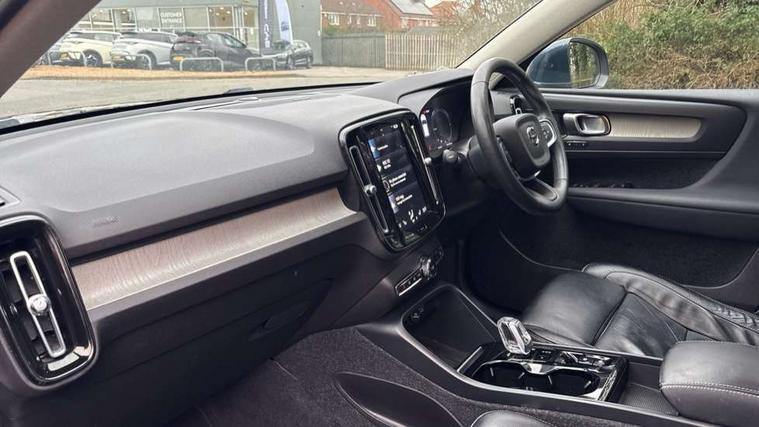 12.3" Active TFT crystal driver's instrument display, 9" centre console portrait touch screen, Adjustable steering wheel force, Bluetooth hands free telephone kit, Drive mode selector, E-call, Lane keep assist with driver alert control, Oncoming Lane Mitigation, Power operated tailgate, Sensus navigation with European mapping and traffic information, Speed limiter, Speed sensitive steering, Voice activated control for key functions, Volvo on call, 7m 10amp charge cable with 3 pin plug and 7m 1 phase 16amp type 2/mode 3 charge cable, Dynamic chassis, Electric front axle drive, Recharging port located in nearside front wing, DAB Digital radio, Low speed exterior sound speaker, Steering wheel mounted remote controls, Adaptive brake lights with high level LED brake lights, Auto dimming interior mirror, Automatic headlamp levelling, Automatic LED Headlights + Active high beam incorporating daytime running lights, Chrome window surround, Colour coordinated auto folding and heated power door mirrors, Front aluminium tread plates, Front and rear electric windows, Heated front windscreen, High gloss black front grille with chrome inserts, High gloss black sensus surround deco, High Gloss silver front and rear skid plate, Home safe and approach lighting, Integrated roof rails in silver, Rain sensor with automatic windscreen wiper activation, Rear side wing doors, Rear wiper, Roof antenna, Roof spoiler, Visible VIN plate, 12V socket in front tunnel console and luggage compartment, 2 zone electronic climate control and rear air vent, 3 seat bench in 2nd row, 3 Spoke tailored steering wheel with chrome trim, 60/40 versatile split folding rear seat, A-pillar parking ticket holder, Blond headlining, Bright metal luggage threshold, Centre console cupholders and storage, Floor mats, Front footwell illumination, Front headrests, Front reading light and theatre lighting, Front seat cushion extensions, Glovebox bag hook, Heated front seats, Height/reach adjustable steering column, Height/tilt adjustable driver's seat, High gloss centre tunnel deco, Illuminated glovebox, Illuminated luggage compartment, Illuminated vanity mirrors, Isofix attachments on outer rear seats, Leather faced upholstery, Load protection net, Multi directional lumbar support, Orrefors Crystal gear lever knob, Power driver seat with memory + exterior mirrors memory, Power passenger seat, Rear armrest / integral cup holders / storage tray, Rear coat hook, Single front passenger seat, Underfloor cargo storage, Vanity mirror with ticket holder, Lighting pack - XC40, Park assist pack - XC40, 3x3 point rear seatbelts, City safety includes pedestrian, cyclist and large animal detection and front collision warning with full auto brake, Drivers knee airbag, Dual stage driver/passenger airbags, Electronic parking brake with auto hold, First aid kit, Front and outer rear seatbelt reminder and pretensioners, Front seats SIPS airbags, Hill descent control, Hill start assist, Inflatable curtain, Passenger airbag cut-off device, Road sign information display, Run off Road Mitigation, Run off Road Protection, SIPS (Side Impact Protection System), Slippery road and hazard light alert, Stability and Traction Control with Spin control, Engine Drag Control and Corner Traction Control, Tyre pressure monitoring system, Vehicle deceleration control with Anti-lock Brake System, Electronic Brake Distribution and Emergency Brake Assist, Warning triangle, WHIPS whiplash protection system - front, Anti-theft alarm including immobiliser/volume sensor + level sensor, Care key with user defined top speed, Key integrated remote control central locking + fuel flap with deadlocking system and auto open/close power windows, Locking wheel nuts, Private locking for tailgate, Driftwood inlays,