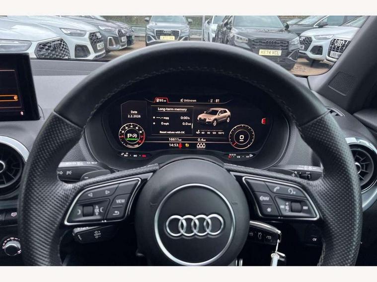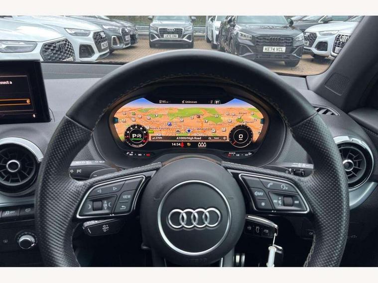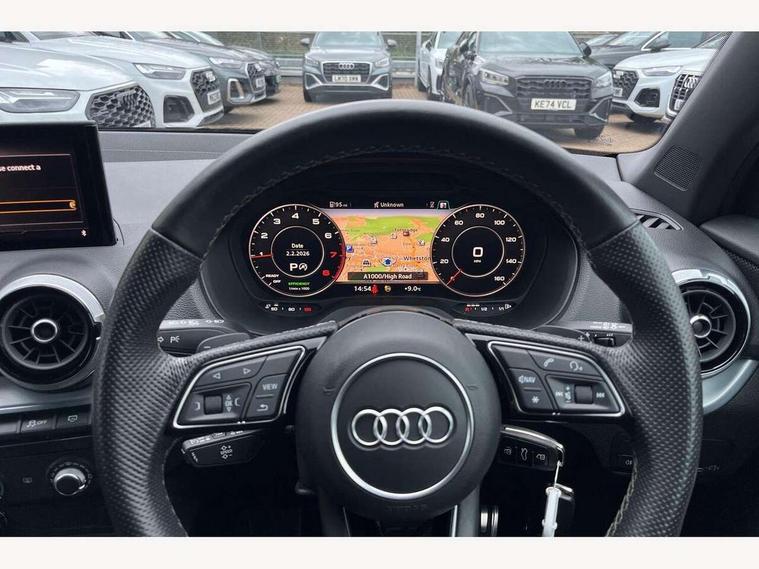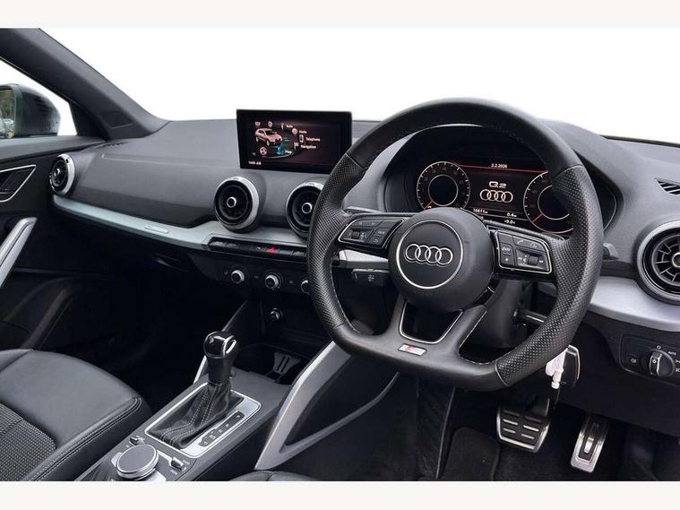 Audi connect navigation and infotainment includes innovative services, Audi connect remote and control connects your vehicle to your smartphone, Audi drive select, Audi drive select - Power steering assistance + engine + gearshift, Audi drive select with efficiency, Audi smartphone interface, Audi virtual cockpit, Automatic start/stop system with recuperation, Bluetooth interface includes bluetooth audio streaming, Cruise control, E-call, MMI navigation plus with MMI touch, Power operated tailgate, Progressive steering, Rear parking sensors, 2 x SDXC card reader, 8 passive loudspeakers, DAB Digital radio, DVD Drive, Auto dimming rear view mirror, Black window trims, Bumper in full body colour paint finish, Electrically adjustable, folding, auto dimming and heated door mirrors with integrated LED side indicators, Front windscreen with grey tinted sunband, LED daytime running lights, LED headlights with LED rear lights, LED third brake light, Privacy glass - dark tinted rear and rear side windows from B-pillar backwards, Rear side wing doors, Rear wiper, Variable front intermittent wipers, Wheel arch trims in manhattan grey, 12V socket in front, 3 seat bench in 2nd row, 3 spoke flat bottomed multi-function leather sport steering wheel with gear shift paddles, 4-way electric lumbar support for front seats including seat height adjustment for both front seat, 60/40 split folding rear seat bench, Black cloth headlining, Front and rear head restraints, Front centre armrest, Front/rear floor mats, Height/reach adjust steering wheel, Illuminated door sill trims with S logo, ISOFIX child seat mounting for front passenger with airbag deactivation and outer rear seat including top tether attachment point for outer rear seats, Single front passenger seat, Stainless steel pedals, Black styling pack - Q2, 3x3 point rear seatbelts, 6 airbags - Front, curtain and front side airbags, Electromechanical parking brake, Electronic stabilisation control including ABS, ASR and EDL, Hill hold assist, Pre-sense front with pedestrian recognition, Seatbelt monitoring, Tyre pressure warning light, Warning triangle and first aid kit, Anti theft alarm, Anti theft wheel bolts, Electronically operated child locks, Remote central door locking, Aluminium interior element, Matt brushed aluminium trim inlays, Tool kit,