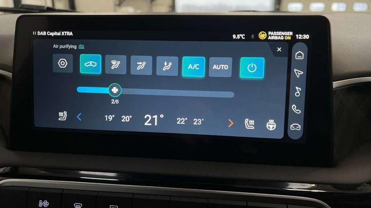 10.25" Colour touchscreen, 360 degree camera with rear sensor, 7" Driver display, Adaptive cruise control, Android Auto, Apple car play, Blind zone detection with lane change assist, Bluetooth connection, Driver attention alert system, E-call, Forward collision warning, Intelligent speed limit assist, Lane keep assist system (LAS) with Lane departure warning system (LDWS), PAS, Rear cross traffic alert, Reverse parking sensors, Satellite navigation with speed limit recognition, Traffic jam assist, Trip computer, 1 x USB port at rear for charging only, 6 speaker audio system, DAB audio, Radio, MP3 and AUX/USB, USB ports (2x front, 1x rear), Auto dimming rear view mirror, Automatic headlamps, Body colour bumpers, Body coloured door handles, Body coloured electrically adjustable heated door mirrors, Follow me home headlights, Front and rear electric windows with driver's one-touch up/down, Intelligent headlamp control, LED centre brake light, LED daytime running lights, LED projector headlights, Rain sensor wiper, Rear privacy glass, Rear side wing doors, Rear window defogger, Rear wiper, 12V socket, 3 seat bench in 2nd row, Air conditioning, Boot space lamp, Driver 6-way adjustable seat, Front centre armrest with storage, Front cup holders, Front headrests, Front interior courtesy light with time delay and reading lights, Front passenger seat map pocket, Front sun visors with driver and passenger mirrors, Heated front seats, Heated steering wheel, Leather style with cloth inserts upholstery, Multifunction steering wheel, One piece folding rear seat, Passenger 4-way adjustable seat, Single front passenger seat, Tilt adjustable steering column, 2 x adjustable rear head rests, 3x3 point rear seatbelts, ABS/EBD, Active emergency braking with pedestrian/Bicycle detection, Drivers seatbelt reminder, Dual front airbags, EBA, Electric parking brake with autohold, ESP, Front and rear passenger seat belt reminder, Front passenger airbag deactivation switch, Front seatbelts (3-point + pretensioner + load limiter), Front side airbags, Hill start assist, Rear child locks, Rear ISOFIX child-seat upper tether & lower anchor, Side curtain airbags, Tyre pressure monitoring system, Alarm & Engine Immobiliser, Keyless entry, Remote Central Locking with Fold-away Key, 16" Atlas alloy wheel, Tyre repair kit,