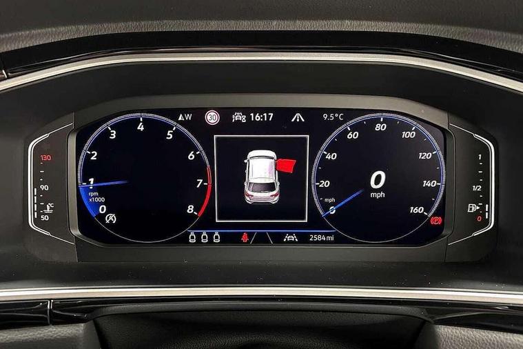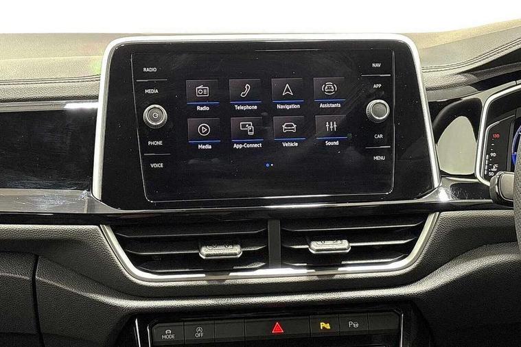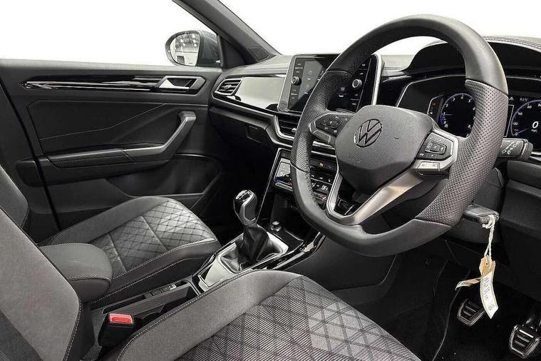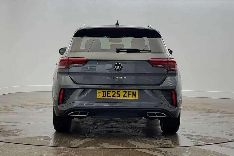 10.25" Digital cockpit pro, Advanced driver attention and drowsiness monitor, Emergency call service, Lane keeping system Lane Assist, Mobile phone interface, Modified key software - reduce switch off time for key status change to Long no motion, Online services, Park assist including front and rear parking sensors, Service interval indicator, Tailgate/trunk lid release from outside, Think blue trainer driver tips and journey analysis, Warning sound and light for front seatbelts unfastened, Wireless app connect, Battery regeneration during braking, Start/stop function with battery regeneration, DAB Digital radio, Diversity antenna for FM reception, Front and rear 6 speakers, Music playback - MP3, WMA and AAC files, Premium USB cable in choice of either Apple or Android smartphone compatibility, SD card slot, Simultaneous pairing of 2 compatible mobile devices, Title and cover art display, We Connect and We Connect Plus functionality, Auto dimming interior rear view mirror, Automatic hazard lights activation under emergency braking, Automatic headlight control with LED separate daytime running lights with coming/leaving home function, Body coloured exterior mirror housings and door handles, Electrically adjustable and heated door mirrors, Extended roof spoiler, Exterior mirrors aspherical on driver side, convex on front passenger side, External USB type C socket and charging sockets, Front windscreen wiper with intermittent wipe and 4 position delay, Heated rear window, LED 3rd brake light, LED rear combination lamps, LED rear number plate lights, Power windows with comfort operation and circuit breaker, Privacy glass for rear side windows and rear window, R-Line design body coloured bumpers, Rain sensor, Rear exhaust tailpipe, Rear fog light on one side and reversing lights on both sides, Rear side wing doors, Rear wash/wipe with intermittent wipe setting, Remote electrically foldable door mirrors, puddle lights and reverse activated passenger's door mirror, 12V power socket in centre console, 3 rear head restraints, 3 seat bench in 2nd row, 4 load lashing points in luggage compartment, Air care climatronic air conditoning system with active combination filter and 2-zone temperature control, Black roof lining, Chrome plated decorative trims, Chrome plated radiator grille inserts, air vent surrounds and light switch surrounds, Door and side trim panel with leatherette insert, Front + rear carpet mats, Front centre armrest, Front cupholders x 2, Front footwell illumination, Front reading light, Front scuff plates with R Line logo, Front seat back storage pockets, Glove compartment door with light, Instrument lighting, white adjustable panel illumination, Interior ambient lighting and surround lighting, Interior light delay, Isofix child seat preparation, Leather gearshift handle, Load-through provision with cup holder when folded down ('Unsplit rear seat bench, split folding backrest, with centre armrest), Luggage compartment lighting, Single front passenger seat, Stainless steel pedals, Storage compartment in left and right luggage area, Storage compartment in rear doors, Storage compartments in driver and front passenger doors, Sunvisors with illuminated vanity mirrors, Variable boot floor, height adjustable and removable, Driver assistance pack without proactive passenger protection - T-Roc, 3 point height adj front seatbelts + pretensioners, 3 point seatbelts in outer rear with ECE label, ABS, Child locks on rear doors, City emergency braking and pedestrian monitoring, Driver and front passenger airbag with front passenger airbag deactivation, Driver and front passenger safety-optimised head restraints, Drivers seatbelt reminder, Electronic parking brake, Electronic Stability Control (ESC) inc EDL (Electronic Differential Lock) and ASR (Traction Control), Front and rear passengers curtain airbag system including front side airbags, Hill start assist, Predictive pedestrian protection, Rear disc brakes, Two tone horn, Tyre pressure loss indicator, Volkswagen roadside assistance, Piano black decorative inserts in dashboard and front door trim panels, Trims for alloy wheels,