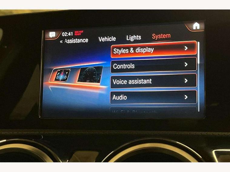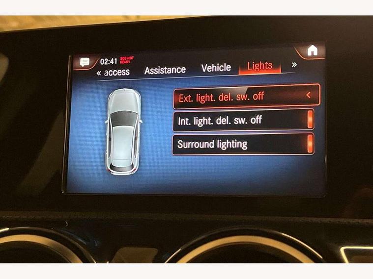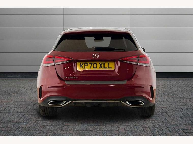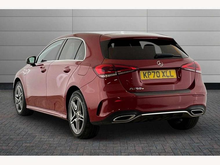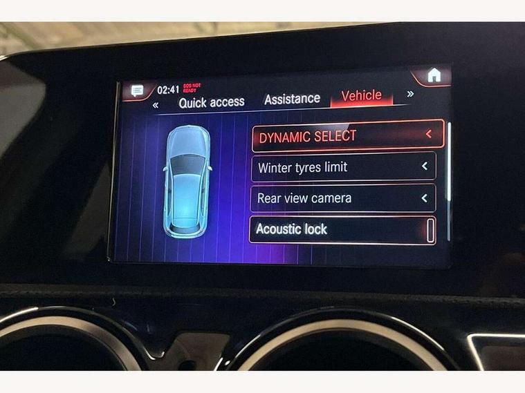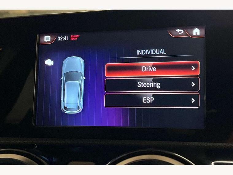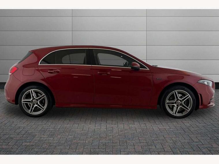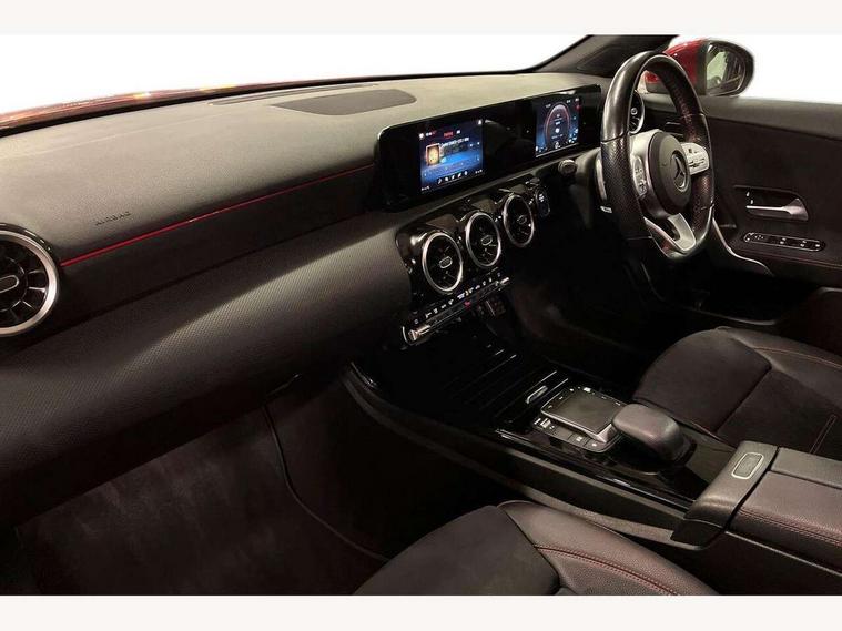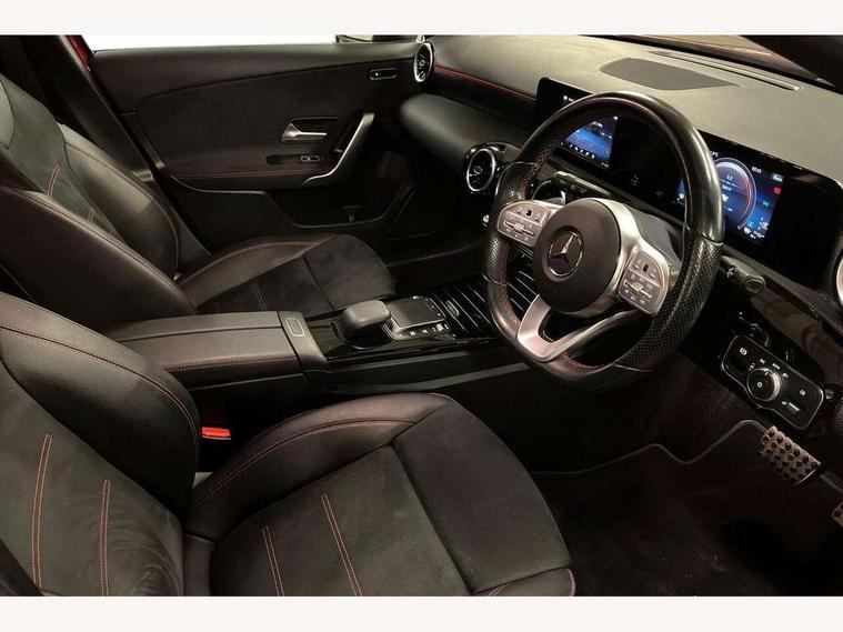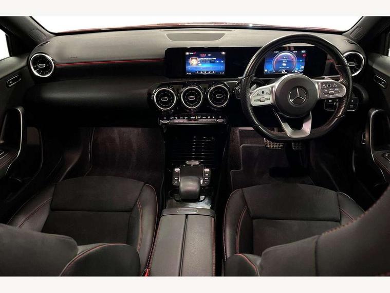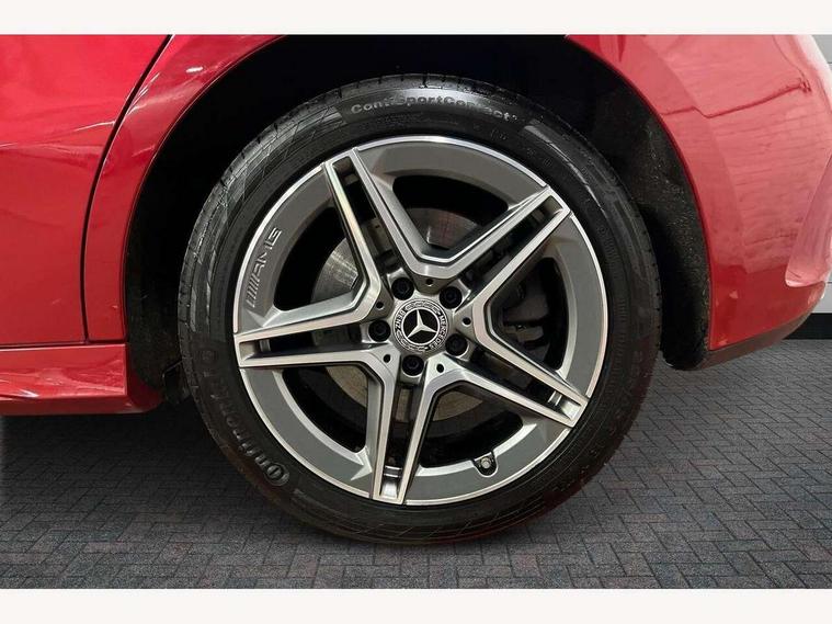 180 degree rear view camera with parking guidelines, 7" colour screen in instrument panel, 7" touchscreen media display, Acoustic ambient protection, Attention assist, Brake pad wear indicator warning light, Car wash mode, Cruise control + speed limiter, Direct steering, Dual bluetooth interfaces, DYNAMIC SELECT with a choice of driving modes (ECO, Comfort, Sport and Individual), ECO start/stop function, Fluid level warning indicator for fuel, oil, coolant and washer fluid, Hard-disk navigation, Hey Mercedes Voice activation, Lamp failure indicator, Mercedes me connect including emergency call system, accident recovery, breakdown and maintenance management, Mercedes me remote services, Outside temperature gauge, Owners manual in English, Pre-installation for private car sharing, Preinstallation for Mercedes Benz link, Remote and charging services plus, Service indicator (ASSYST), Speed sensitive power steering, Trip computer, 7.4 kW monophase on board charger, Comfort suspension, Mode 3 charging cable 11 kW, Rear axle multi-link, 2 USB ports (type C) in rear stowage compartment and one in front of center console, 6 speakers, DAB Digital radio, MBUX multimedia system with DAB digital radio and touchpad including satellite navigation, Mercedes-Benz sound system - 100W, 4 Electric Front and Rear windows, Adaptive brake lights, AMG bodystyling - Front apron with splitter in chrome, rear apron with chrome trim and chrome visible trim elements in tailpipe, Black weather strip, Body colour bumpers, Body colour door handles, Body colour side skirt, Body coloured door mirrors, Chrome beltline trim, Diamond radiator grille with chrome pins and silver louvre + chrome insert, Electric adjustable and heated door mirrors with integrated LED side indicators, EQ badging, Exhaust system - Twin visible tailpipes in polished stainless steel, Headlamp assist automatic headlamp activation, Heated glass rear windscreen + timer control, LED high performance headlamps with integrated LED daytime running lights, LED tail lamp, LED third brake light, Privacy glass, Radio aerial, Rain sensing windscreen wipers with two sensitivity settings, Rear fog lights, Rear wiper, Window line trim strip in chrome, 3 pin charging cable plug, 3 Spoke flat bottom leather multi function steering wheel with perforated leather in grip area, 40:20:40 split folding rear seats, Artico man-made leather/Microfibre Dinamica upholstery with red contrast stitching, Auto Mercedes-Benz child seat recognition sensor, Black air vents with surround in silver chrome, Black roof lining, Brushed stainless steel sports pedals with rubber studs, Charging socket, Controller on centre console with chrome surround, Floor mats with stitched edging and AMG lettering, Front centre armrest with storage compartment, Front door sills with Mercedes Benz lettering, Front seat backs luggage nets, Front seat cushion length adjustment, Galvanished gear shift paddles on steering wheel, Heated front seats, Height/reach adjustable steering column, Interior mirror with reading lamps in black and frameless, Manual height adjustable front seats, Pre-entry climate control, Rear head restraints, Seat occupancy sensor for front passenger seat, Sports seats with integrated headrests, Stowage compartment in centre console with retractable cover, Sunvisors with illuminated vanity mirrors, Touchpad on center console, Twin front cupholders, Two zone thermotronic luxury automatic climate control, Light and sight pack - A Class, Seat comfort pack - A Class, 3 rear 3 point seatbelts, ABS with Brake Assist, Active bonnet, Active brake assist includes forward collision warning system with autonomous braking, Adaptive brake assist with hold function and hill start assist, Black seatbelts, Childproof locks manually operated for rear doors and electrically operated for rear power windows, Crash responsive emergency lighting, Driver and passenger head and side airbags, Drivers knee airbag, Dual stage driver/passenger airbags, Electronic parking brake, ESP curve dynamic assist, ESP with ASR, Front and rear seatbelt reminder, Front brake callipers with Mercedes Benz lettering, ISOFIX and top tether child seat fixing points in two outer rear seats, Perforated front brake discs, Radar based regeneration, Tyre pressure monitoring system, Warning triangle and first aid kit, Window airbags, Alarm system/interior protection/immobiliser, Keyless Go, Remote central locking and crash sensor with emergency opening function, Urban guard vehicle protection system with immobiliser and interior protection, Dinamica microfibre trim in black, 18" AMG 5 twin spoke light alloy wheels in titanium grey with highsheen finish, Summer tyres, Tirefit sealant kit,