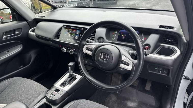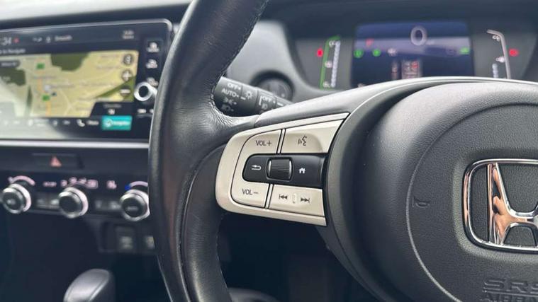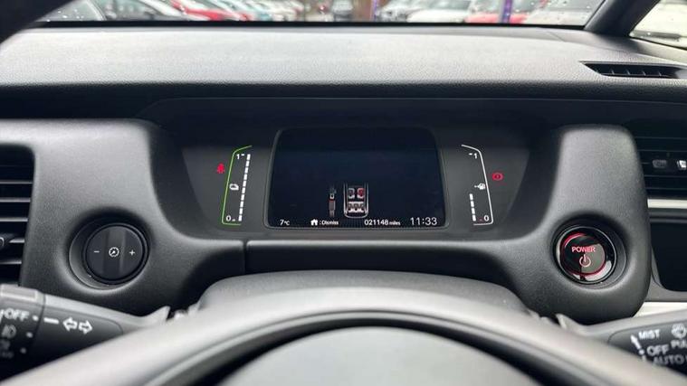 Adaptive cruise control, Adjustable speed limiter, Agile handling assist, BLIS (Blind Spot Information System) with Cross Traffic Monitor, Bluetooth hands free telephone connection, eCall emergency call system, Econ mode, Electric power steering wheel with variable gear ratio steering, Emergency stop signalling system, Forward collision warning, Front and rear parking sensors, Honda CONNECT with HERE Navigation + 9" touchscreen, AM/FM/DAB/Apple Carplay and android auto, Idle stop, Intelligent speed limiter, Lane departure warning system, Lane keep assist system, Low speed following, Multi-information display, Rear view camera, Road departure mitigation, Traffic sign recognition, Vehicle stability assist, 'Shark fin' mobile antenna, 2 USB sockets in rear, 2x USB Front socket (1 data & 1 charge), 4 speakers, Remote audio controls on steering wheel, Aspheric door mirrors, Auto wipers, Automatic headlights with on/off timer, Coming/leaving home function, Body colour door handles, Body coloured bumpers, eHEV emblem, Electric adjustable door mirrors, Electrically folding door mirrors, Front and rear electric windows, Heated door mirrors, High beam assist, LED daytime running lights, LED front fog lights, LED Headlights, LED rear lights, Privacy glass, Rear side wing doors, Rear wiper, Single exhaust tailpipe, Third brake light, 3 seat bench in 2nd row, 60/40 split rear bench seat, Cargo net hooks, Climate control air conditioning, Driver and front passenger seat armrests, Driver and passenger front seat pockets, Driver's seat height adjustment, Fabric/leather upholstery, Front accessory power socket, Front head restraints, Front map lights, Front/rear courtesy lights, Heated front seats, Heated steering wheel, Isofix child seat restraint mechanism, Isofix points, Leather gearshift knob, Leather steering wheel, Magic seat flexibility system, Paddle shift controls, Plating interior door handles, Rear head restraints, Rear parcel shelf, Single front passenger seat, Sunvisors with vanity mirrors, Tilt/telescopic adjustable steering wheel, Tonneau cover, Trunk light, 3x3 point rear seatbelts, Anti-lock braking system (ABS), Brake assist function, Brake hold function, Child locks on rear doors, Collision mitigation braking system, Deflation warning system, Driver knee airbag, Driver SRS airbag (single stage inflation), Driver/Front Passenger airbags, Electric parking brake, Front and rear side curtain airbag, Front side airbags, Hill start assist, Passenger SRS airbag cut-off device, Rear side airbags, Whiplash lessening front headrests, Front seat belt with emergency locking retractor, Honda super locks, Immobiliser, Mirrors and windows key fob operation, Remote central locking with 2 remote folding keys, Security alarm, Smart entry + Smart start, Soft pad leather interior panels, 16" Multi apperance alloy wheels in mat berlina black, Tyre repair kit,