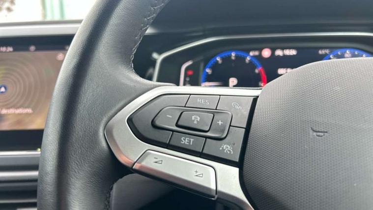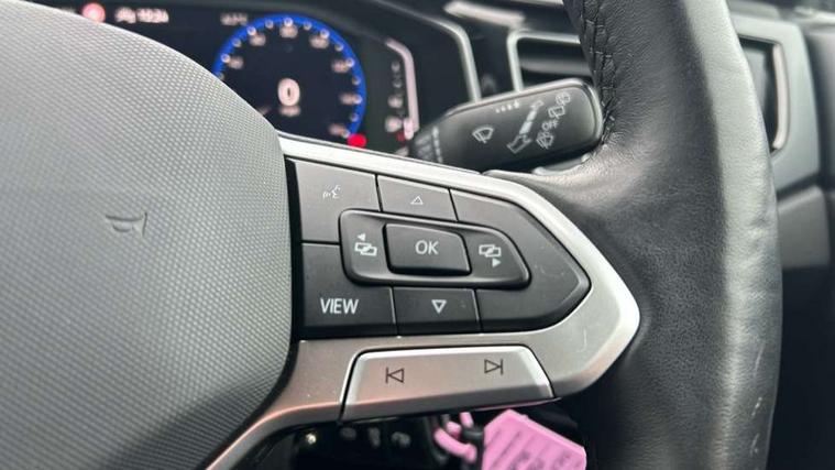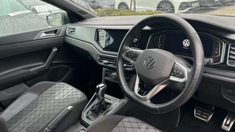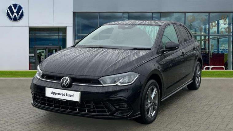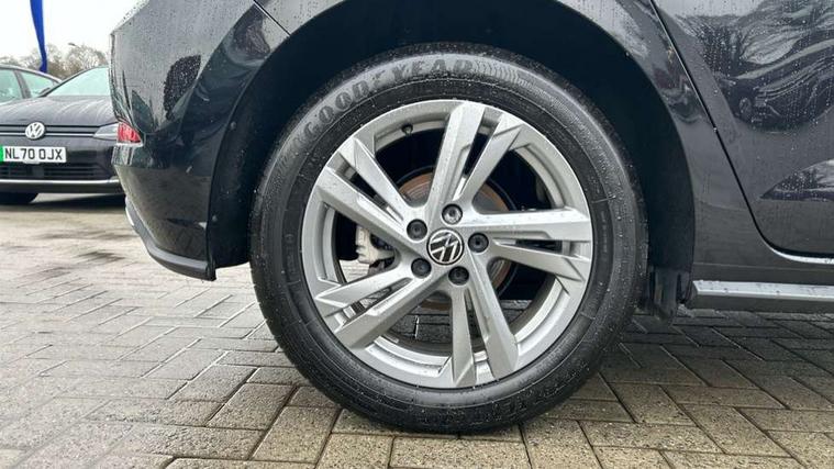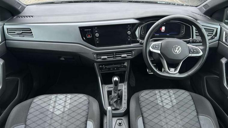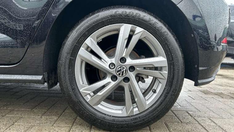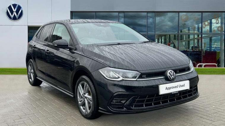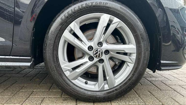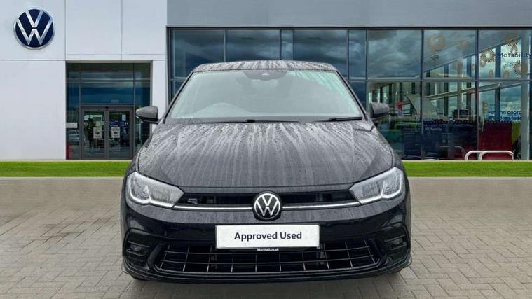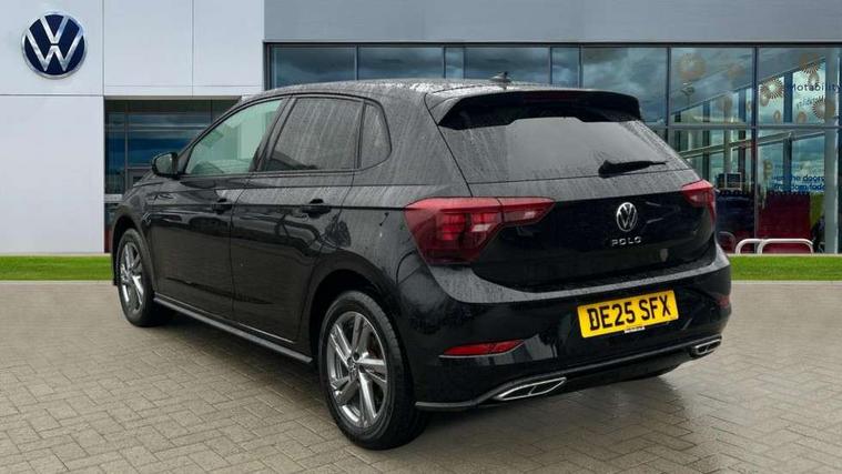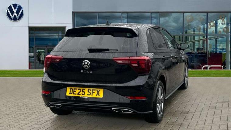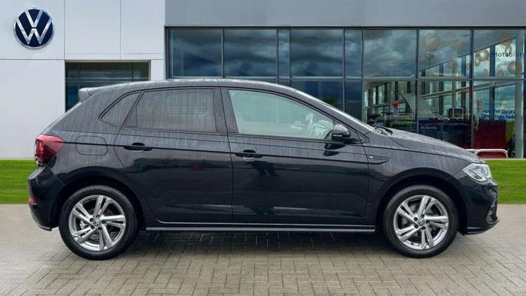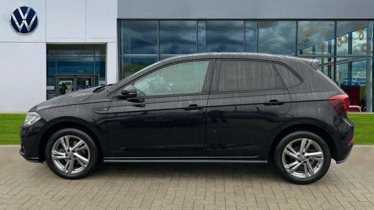 Adaptive cruise control with follow-to-stop and speed limiter, Advanced driver attention and drowsiness monitor, Bluetooth mobile phone interface, Digital Cockpit Pro with 10.25" Display, Dynamic road sign display, Emergency call service, Multifunction camera, Power assisted speed sensitive steering, Preparation for We connect and We connect plus, Speedo and rev counter, electronic odometer, trip, service interval display and fuel gauge, Standard rear axle, Travel Assist - Lane keeping system and traffic jam assist, Travel assist including emergency assist, Trip computer, Warning signal and warning light for front and rear seatbelts not fastened, Washer fluid level indicator, Wireless app connect, Front wheel drive, Rear shock absorpion, Start-stop system with battery regeneration (recuperation - energy recovery during braking), DAB Digital radio, Diversity antenna for FM reception, Front and rear 6 speakers, Body colour bumpers, Body colour door handles, Electric front windows, Front scuff plates with R-Line logo, Heat insulating glass windscreen, Power folding adjustable/heated exterior mirrors and front passenger exterior mirror lowering function, Rear electric windows, Rear fog light, Rear side wing doors, Rear windscreen washer and wiper with interval delay, Third brake light, 12V power socket in centre console, 2 USB-C ports in the front, 2 USB-C charging sockets on the center console in the rear, 3 rear head restraints, 60/40 split folding rear seat and rear seat bench not split, Air care climatronic air conditoning system with active combination filter and 2-zone temperature control, Black roof lining, Carpet mats, front and rear, Chrome plated radiator grille inserts, air vent surrounds and light switch surrounds, Door and side trim panel, Driver and front passenger seat height adjustment, Driver/passenger sunvisors with illuminated vanity mirrors, Front centre armrest, Front footwell illumination, Front seat backrest storage pockets, Front sports comfort seats, Handbrake lever handle in leather, Headliner in recycled material, Isofix child seat preparation easy-fit (for two outer rear seats, and front passenger seat) compatible with I-size, Karoso artvelours cloth upholstery, Leather trimmed gear knob, LED interior light with switch off delay and dimmer, 2 reading lights front and rear, Luggage compartment cover, Luggage compartment floor, Luggage compartment lighting, Lumbar adjustment for front seats, Single front passenger seat, Stainless steel pedals, Standard pedal cluster, Three spoke leather wrapped multifunction steering wheel with shifting paddles, Light and sight pack - Polo R-Line/Black Edition, 3 point height adj front seatbelts + pretensioners, 3x3 point rear seatbelts, ABS, Driver and front passenger airbag with front passenger airbag deactivation, Drivers and front passengers safety optimised head restraints, ESC (Electronic stability control) + EDL (Electronic Differntial lock) and ASR (Traction control), Extended and predictive pedestrian/ cyclist protection, Front curtain and side airbags with center airbag, Front/rear disc brakes, Hill hold control, Manual child lock in rear doors, Single tone horn, Tyre pressure loss indicator, Alarm with interior protection, Anti-theft alarm system with interior monitoring, backup horn, and towing protection, Anti-theft wheel bolts, Electronic engine immobiliser, Chrome applications on rotary light, mirror adjustment, window regulator switches, outlet with frame in black, Dark grey anodised matt decorative inserts in dash and front door panels, 16" Coventry alloy wheels, Low rolling resistance tyres,