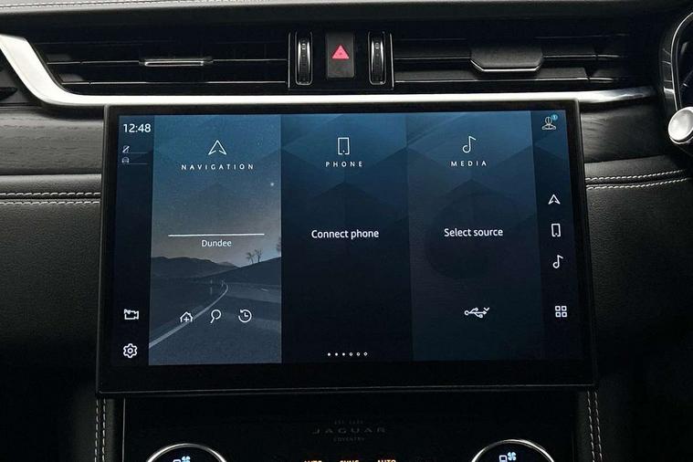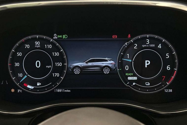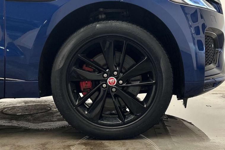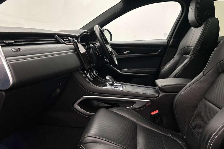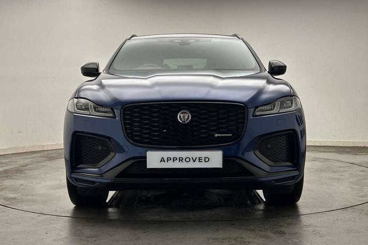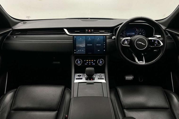 11.4" touchscreen, Android Auto, Apple car play, Bluetooth connectivity, Driver alert system, Driver condition monitor, eCall emergency call system, Eco driving style assistant, Electric power assisted steering, InControl remote, Interactive Driver display instrument cluster, Jaguar Toggle shift selector, Lane departure warning system, Lane keep assist, Outside temperature gauge, Personalisation profile management, Pivi pro connected navigation system with app interface and media storage, Pro services and wifi hotspot, Push button starter, Service interval indicator, Speed proportional steering, Start up sequence with movement in dials and lighting, Traffic sign recognition with adaptive speed limiter, Trip computer, Voice control system, 7 kW onboard charger, 8 speed automatic transmission, Adaptive dynamics, All terrain progress control, All Wheel Drive (AWD), Configurable dynamics, Home charging cable, Open differential with torque vectoring by braking, Public charging cable, AM/FM radio, Bluetooth streaming, DAB Radio (Digital Audio Broadcasting), Dynamic volume control, InControl apps, InControl protect, iPod integration, 3 flash lane change indicators, Animated directional indicators, Approach Illumination, Auto dimming rear view mirror, Automatic headlights, Electric windows with one touch open/close and anti trap, F-Pace and R Dynamic badge, Gloss black door mirrors, Gloss black roof rails, Green tinted glass, Heated front windscreen + heated washer jets, Heated rear window with timer, Jaguar script and leaper, LED High level third brake light, LED tail lights, Non acoustic front windscreen, P400e AWD badge, Privacy glass, R Dynamic badge on side door, Rain sensor windscreen wipers, Rear fog lights, Rear metal tread plates, Rear side wing doors, Rear wiper, Trailer stability assist, Variable front intermittent wipers, 12V power point front, 3 rear headrests, 3 seat bench in 2nd row, Air distribution speed, Bright metal foot pedals, Centre armrest console, Centre console with side storage, Deletion loadspace storage rails, Door sill tread plates, Fold flat front seats, Front centre armrest with storage compartment, Front door storage space, Glovebox finisher with jaguar script, Heated steering wheel, Hooks in loadspace, Illuminated glovebox, Interior front door handles with separate locking switches, ISOFIX on outer rear seats, Jaguar sense, Luggage tie downs in loadspace, Mist sensing, Multifunction steering wheel, Overhead lighting console, Overhead stowage for sunglasses, Passive front head restraints, Premium cabin lighting, Premium carpet mats, R-Dynamic branded leather steering wheel, Rear air vents, Rear armrest with twin cupholders, Rear centre headrest, Rear door storage space, Reversible boot floor, Satin chrome gearshift paddles, Shopping bag hook, Single front passenger seat, Sunvisors with illuminated vanity mirrors, Twin front cupholders with cover, Black Exterior pack - F Pace R-Dynamic/Sport, Exterior pack - F Pace R-Dynamic, Online Pack with data plan - F-Pace, 380mm front brakes and 325mm rear brakes, 3x3 point rear seatbelts, ABS, All surface progress control (ASPC), Brake pad warning light, DSC - Dynamic Stability Control, Electric parking brake (EPB), Emergency brake assist, Front airbags with passenger seat occupant detector, Front and rear seatbelt reminder, Front side airbags, Full length side window curtain airbag, Hill launch assist, Power operated child locks, Torque vectoring brake, Traction control, Tyre pressure monitoring system, Immobiliser, Keyless start, Locking wheel nuts, Perimeter alarm, Remote central locking, Valet mode,