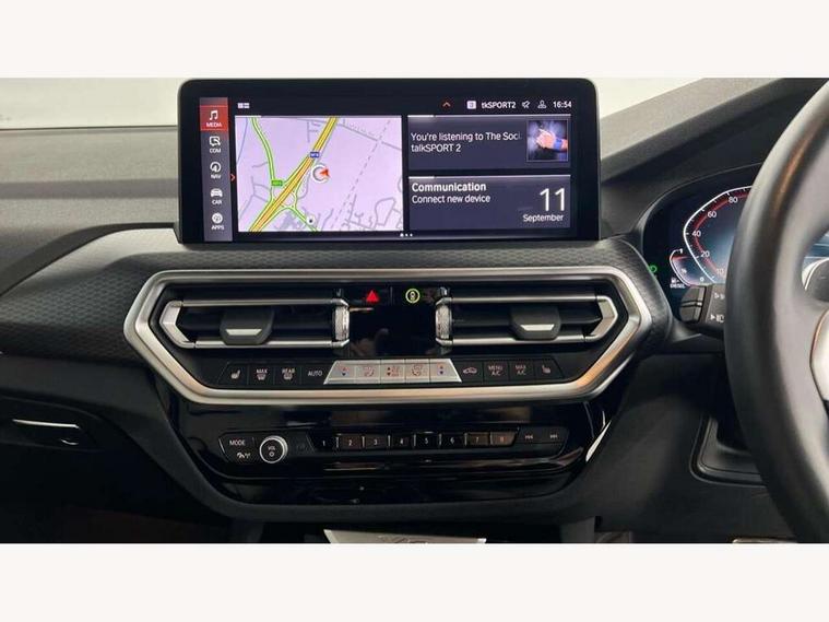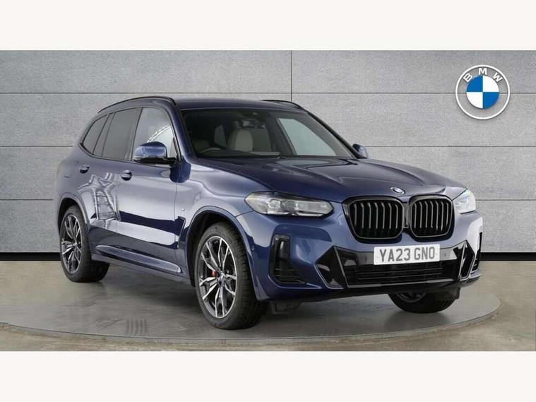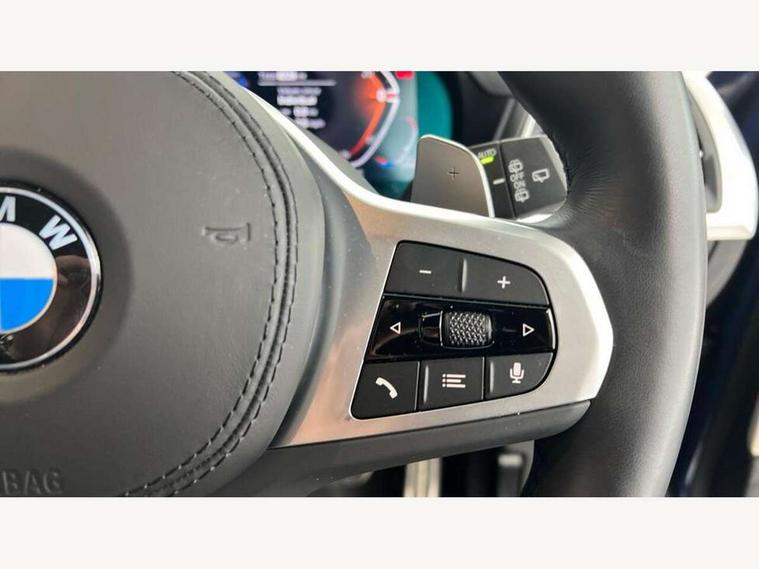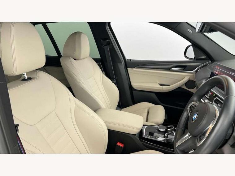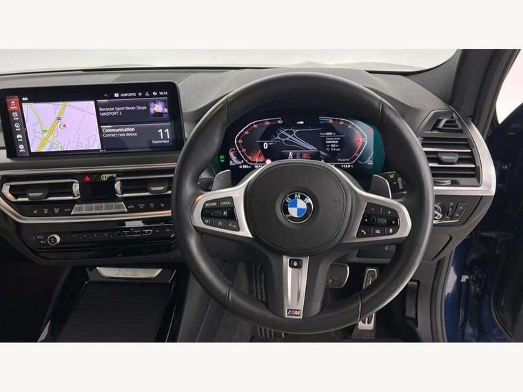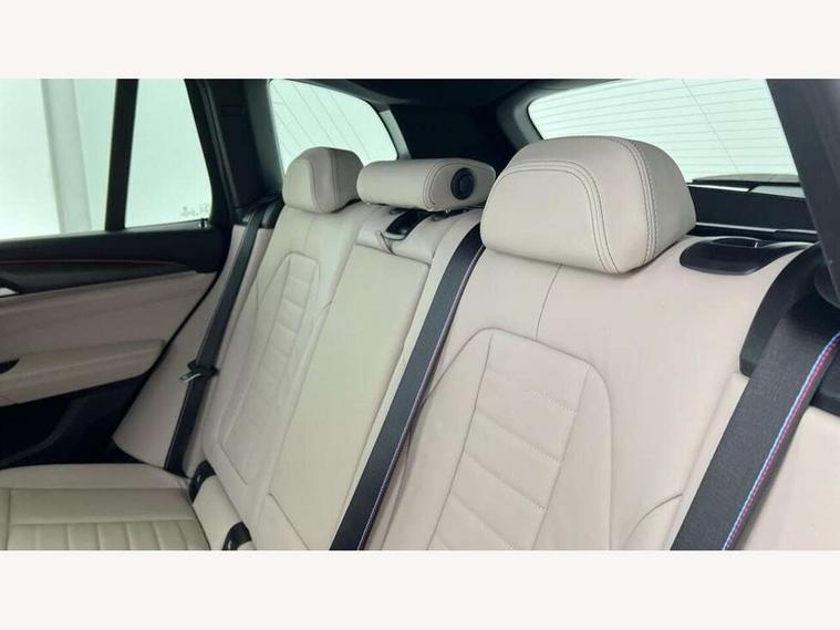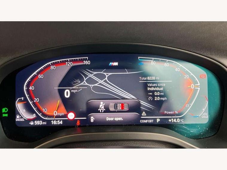 Active Guard, Attentiveness assist, BMW Live Cockpit Professional nav system including 12.3" instrument display + 12.3 high resolution control display, BMW Online services, BMW Teleservices, Brake pad wear indicator in front and rear, Check Control warning system for monitoring of lights and door/luggage compartment open warning, Condition based service - BMW service history, electronic service booklet, integrated owner's handbook, Connected drive services, Electric boot lid, Front/rear Parking distance control, iDrive touch controller with 8 favourite buttons, Instrument cluster with speedometer with mph readout, tachometer, fuel gauge and oil temperature gauge, Lights on warning by audio warning signal when ignition is switched off, Oil sensor for level and grade, warning by check control system, On board computer - average speed+fuel consumption, service interval, clock/date, odometer/trip meter, outside temperature display and ice warning, Optimum shift indicator, Personal Profile - automatic lock when driving away selectable, Run flat indicator, Stop/start system, Variable sports power steering with drive performance control Sport+ mode, Automatic transmission with gearshift paddles, Diesel particulate filter, Incorrect fuelling protection, Larger capacity fuel tank, M sport suspension, Multi-link rear suspension, BMW professional radio/CD/MP3, DAB tuner, Acoustic glazing, Automatic windscreen wipers and automatic headlight, Black finish on B pillars, Body colour door handles, Body colour electric adjust heated aspherical door mirrors, Body colour roof mouldings, Body coloured bumpers, Direction indicator, side repeaters, integrated in exterior mirrors, Dynamic brake lights, Exhaust tailpipes - dual, round, split left and right with chrome finisher, Fingertip control / anti-trap function on electric window, Folding wing mirrors with auto dimming, Follow me home headlights, Front and rear bumper system with replaceable deformation elements, Front and rear electric windows, Gloss chrome tailpipes finishers, Green tinted heat insulating glass, Heated windscreen washer jets, High beam assistant, High gloss black shadow line roof rails, High gloss shadowline exterior trim in decorative moulding side frame/recess cover/guide rail/B, C pillars/mirror frame and triangle with mirror base, High level 3rd brake light incorporating LED Technology, Interior rear view electrochromatic mirror with automatic anti dazzle function, LED tail lights, Lightweight engineering, M aerodynamic bodystyling, M Sport entry door sill strips, Model designation, Rain sensor, Rear side wing doors, Rear wing door, Rear wiper, Shark fin antenna, Side exterior M designation badges, Visible VIN plate, Welcome lighting, Windscreen wipers with adjustable interval, 12V power point in luggage area, 12V power socket in front centre console, 2 x USB Type C ports for charging and data transmission (front centre console) and 2 x USB Type C ports for charging (rear centre console), 3 rear headrests, 3 seat bench in 2nd row, 3 zone automatic air conditioning, 4 lashing points to secure luggage, 40:20:40 split folding rear seat with loading system, Ambient lighting, Anthracite headlining, Automatic interior light when door is opened/ignition switched off or via remote key, Floor mats in velour, Foldable storage floor with compartment, Four grab handles integrated in roof lining, Front and rear bottle holders integrated into door trim storage compartments, Front and rear side armrests integrated into door trim, Front centre armrest with storage compartment, Front footwell lights, Front head restraints, Front passenger seat, Front sports seats, Front/rear courtesy lights with soft on/off dimming, Front/rear reading lights, Heated front seats, Isofix rear child seat preparation, Leather gear knob, Lockable glove compartment, Luggage area underfloor compartment, Luggage compartment lighting, M sport leather steering wheel, Multifunction steering wheel, Parcel shelf removeable and storable under boot floor, Reach and rake adjustable steering column, Rear centre armrest with 2 cupholders, Removable / retractable luggage cover, Slope adjustable rear seats, Storage compartment in rear centre console and front/rear door trims, Sun visors with vanity mirrors and ticket pocket, Toolkit located in luggage compartment, Two front cupholders with removable oddments tray/lid, Connected pro pack - X3, ADB - Automatic Differential Brake, Anti-lock braking system (ABS) with brake assist, Automatic Stability Control (ASC), Battery safety cut-off, BMW emergency call, Brake drying, Brake energy regeneration, Braking pre-tensioning, Child locks on rear doors, Cornering brake control (CBC), Crash Sensor - activation of central locking release, hazard warning light and interior lighting, Deactivation of fuel pump in the event of a crash, Driver and front passenger front and side airbags with passenger deactivation and ITS front and rear head airbags, Driver and front passenger knee airbag, DSC+, Dynamic brake control, Dynamic Traction Control - DTC, Electromechanical parking brake, Hill descent control, Hill start assist, Seatbelt security check for front seats, Side impact protection, Three point seatbelts to all seats with front and outer rear pyrotechnic belt tensioners and seat belt force limiters, Two tone horn, Tyre pressure sensor, Ventilated front and rear disc brakes, Warning triangle and first aid kit, Central locking switch for all doors, fuel filler cap and luggage compartment, Electronic engine immobiliser, Locking wheel nuts, Remote control including two integrated key - one button for open/close all lockable content, windows and separate button for open luggage compartment, Remote control Thatcham category 1 alarm, Start/stop button with Comfort Go keyless engine start and auto Start/stop deactivation button, Low rolling resistance tyres,