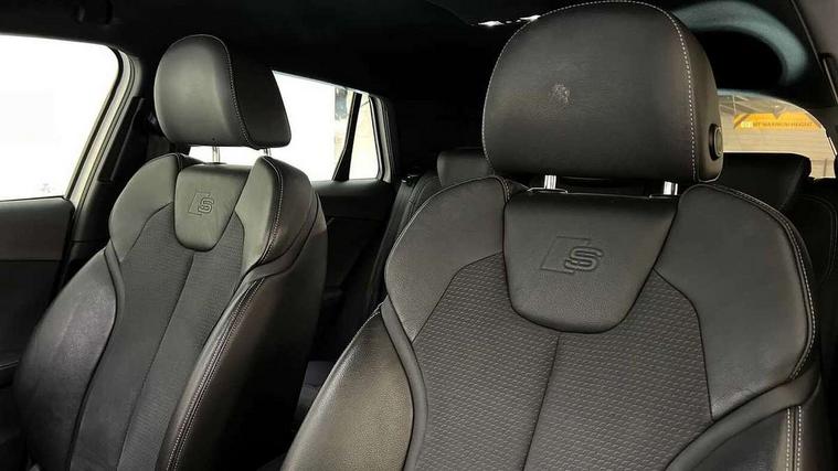 Aluminium interior element, Matt brushed aluminium trim inlays, Anti theft alarm, Anti theft wheel bolts, 2 x SDXC card reader, 8 passive loudspeakers, DAB Digital radio, DVD Drive, 3x3 point rear seatbelts, 6 airbags - Front, curtain and front side airbags, Electromechanical parking brake, Electronic stabilisation control including ABS, ASR and EDL, Hill hold assist, Pre-sense front with pedestrian recognition, Seatbelt monitoring, Tyre pressure warning light, Warning triangle and first aid kit, Auto dimming rear view mirror, Black window trims, Body colour door mirrors, Electrically adjustable, folding, auto dimming and heated door mirrors with integrated LED side indicators, Front windscreen with grey tinted sunband, S Line badges on the front wings, S Line body styling - front and rear bumpers, side skirts, radiator grille, rear diffuser insert and front air intakes, Wheel arch trims in manhattan grey, 4-way electric lumbar support for front seats including seat height adjustment for both front seat, 60/40 split folding rear seat bench, Black cloth headlining, Electronically operated child locks, Front and rear head restraints, Front centre armrest, Front/rear floor mats, Height/reach adjust steering wheel, Illuminated door sill trims with S logo, ISOFIX child seat mounting for front passenger with airbag deactivation and outer rear seat including top tether attachment point for outer rear seats, Stainless steel pedals, Tool kit, Audi connect navigation and infotainment includes innovative services, Audi connect remote and control connects your vehicle to your smartphone, Audi drive select, Audi smartphone interface, Audi virtual cockpit, Automatic start/stop system with recuperation, Bluetooth interface includes bluetooth audio streaming, Cruise control, MMI navigation plus with MMI touch, Power operated tailgate, Progressive steering, Rear parking sensors,