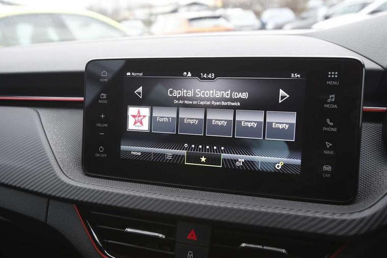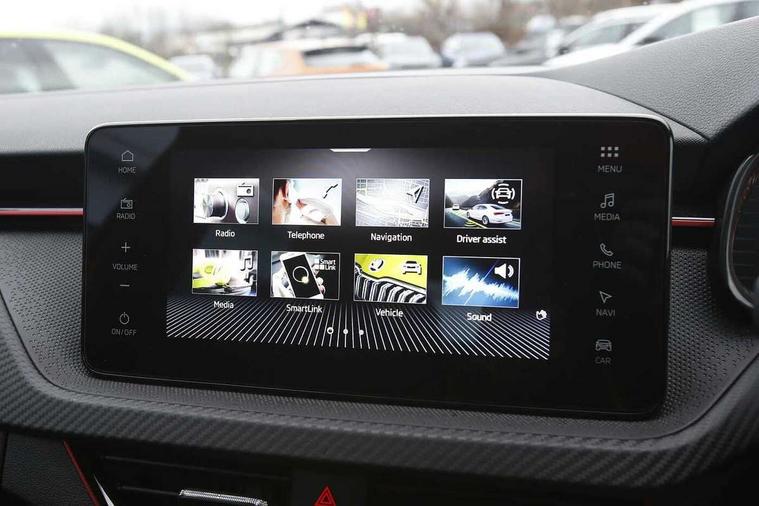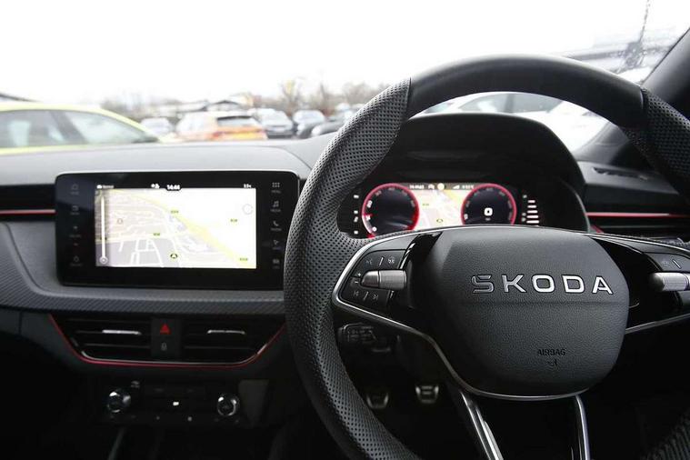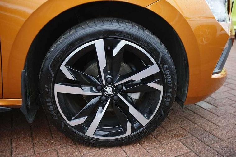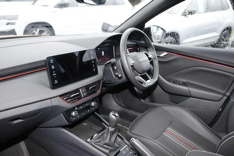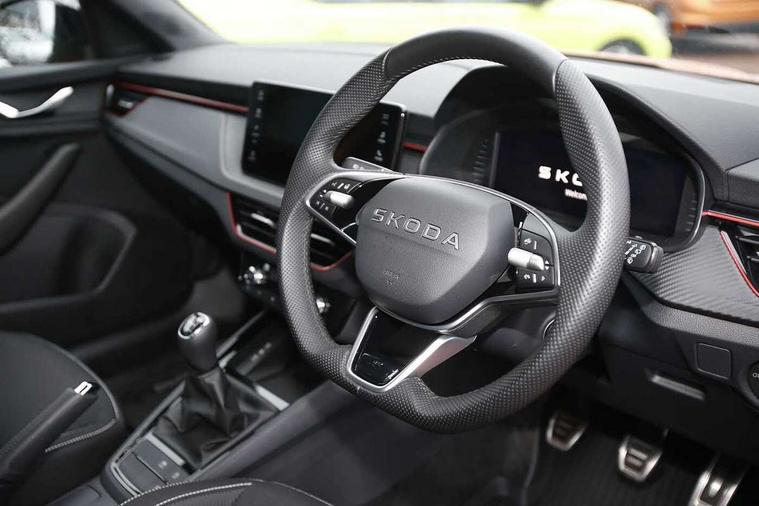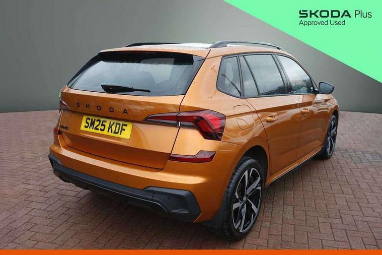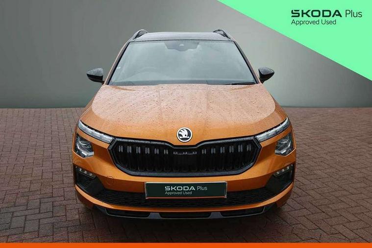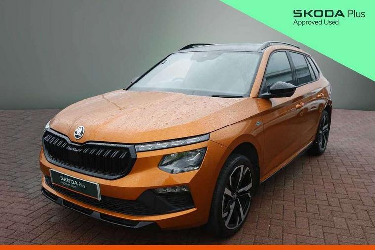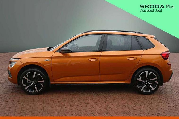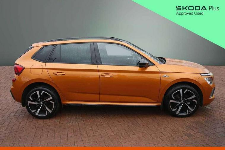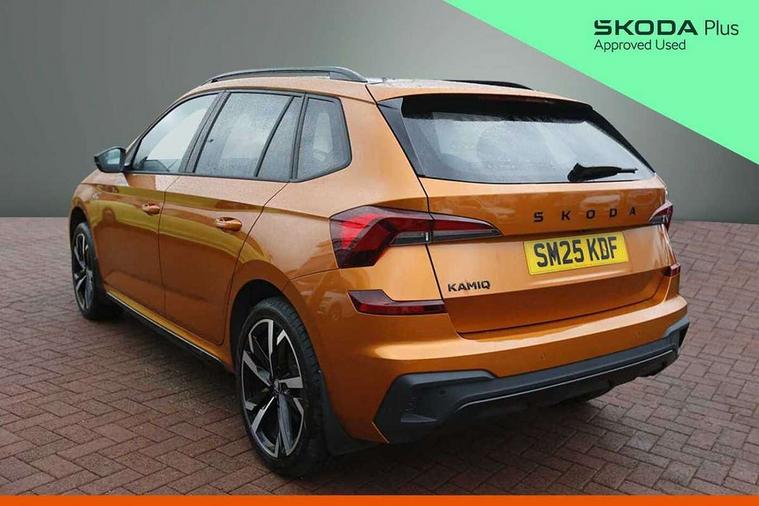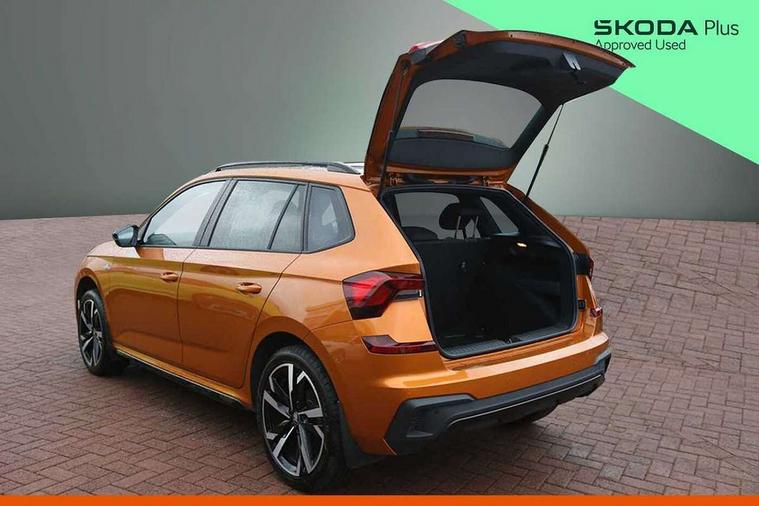 Advanced driver attention and drowsiness monitor, Bluetooth system, E-call, Front assist system, PAS, Rear parking sensors, Rear view camera, Service indicator, Speed limiter, Traffic sign recognition, Virtual cockpit with 10.25" display, Voice control system, Wireless smartlink, 4 USB C ports, 8 Speakers, 9.2" Skoda navigation display, DAB Digital radio, Auto dimming rear view mirror, Automatic headlight control with coming home and leaving home feature, Black door mirrors, Black radiator grille, Black rear diffuser, Black roof spoiler, Body colour bumpers, Body colour door handles, Boot lettering in black, Extended tailgate glass, Fixed panoramic sunroof with black roof rails, Front and rear electric windows, Heated rear window, LED daytime running lights, LED high beam, LED low beam, LED third brake light, Light sensors, Monte carlo plaque, Privacy glass, Rear side wing doors, Rear wiper, Ticket holder inside windscreen, 12V socket in luggage compartment, 3 seat bench in 2nd row, Aluminium pedals, Ambient lighting in white/red, Art leather carbon decor inserts, Art leather carbon door inserts, Black roof lining, Cargo elements, Chrome inner door handles, Driver and passenger sun visors with vanity mirror, Dual zone climate control, Front and rear roof lights, Front centre armrest, Front head restraints, Glove compartment with illumination, Height adjustable driver seat, Height adjustable front passenger seat, Ice scraper, Inner circulation control with pollen filter, ISOFIX on front passenger seat, Isofix preparation for back seats, Leather gearknob and handbrake lever, Manual lumbar support for front seats, Monte Carlo cloth upholstery, Net package and top tether hooks in boot space, Net under rear shelf, Pocket on the back of both front seats include mobile phone pockets, Rake/reach adjustable steering wheel, Reading lights, Rear centre armrests, Red hotstamping, Single front passenger seat, Sports seats, Textile floor mats, Third rear headrest, Top tether for front passenger seat, Umbrella in driver's door, Light and view plus package - Kamiq, 3x3 point rear seatbelts, Airbags - driver and front passenger, Disc brakes, ESP, Extended and predictive pedestrian/cyclist protection, Front passenger airbag deactivation switch, Front side airbags with curtain airbags, Hill hold control, Manual leather parking brake, Manual rear child locks, One tone horn, Seatbelt reminder for driver an co-driver, Traction control, Tyre pressure monitor, Anti-theft alarm system with interior monitoring, backup horn, towing protection and remote central locking with SAFE system, Anti-theft wheel bolts, Electronic engine immobilizer, 18" Ursa black diamond cut alloy wheels,