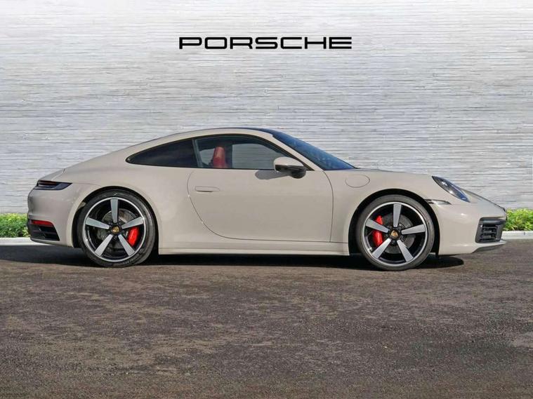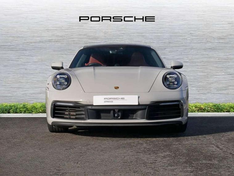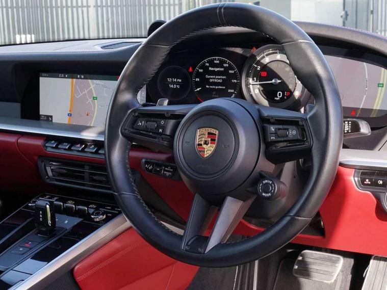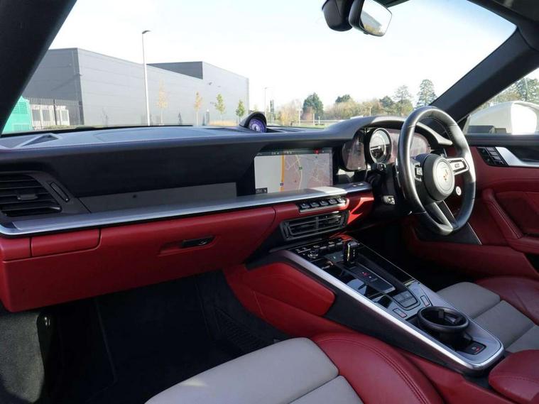 10.9 inch centre display, Automatic start/stop system, Connect Plus, Apple CarPlay, telephone module, wireless internet access, carfinder, remote vehicle status, remote service, vehicle track, Digital display for selected gear in rev counter, Electromechanical power-assisted steering with variable steering ratio and steering pulse generator, Instrument cluster with central analogue rev counter and two 7-inch TFT displays, PAS, Porsche communication management (PCM) including online navigation module, Porsche WET Mode, Service indicator, Stationary management with HOLD function, Trip computer, Warn and Brake Assist, 8 Speed Porsche Doppelkupplung (PDK), Aluminium block and cylinder heads, Direct fuel injection (DFI), Expansion intake manifold, Four valve per cylinder, Front anti roll bar, Gasoline particulate filter, Integrated dry-sump lubrication with an on-demand oil pump, McPherson strut front suspension, Multi-link suspension with anti-roll bar at rear, Porsche Stability Management (PSM), ABS with extended brake functions, Porsche Torque Vectoring Plus (PTV Plus) inc electronically regulated rear differential lock and fully variable torque distribution, Twin turbocharger intercooled, Two three-way catalytic converters and on-board diagnostics for monitoring emission control system, VarioCam Plus variable valve timing and switchable valve lift, Analogue sound system, DAB Digital radio, "PORSCHE" lettering integrated in taillight strip, Automatic headlight activation including welcome home lighting, Automatically operated rear spoiler, Body colour bumpers, Electrically adjustable heated exterior mirrors on door waist rails, aspherical on driver's side, Engine compartment cover grille with vertical slats in silver colour (high-gloss), Four-tract exhaust system with twin dual-tube tailpipes (in stainless steel), Green tinted heat insulating glass, Heated rear windscreen, Intelligent lightweight body in Aluminium/Steel composite construction, LED auxiliary light units in the front end with position lights, direction indicators and side indicators, Model designation on rear trim with highly polished chrome-plated finish, Power windows with one touch operation and door seal protection, Retractable door handles, Side air intakes at front with active cooling flaps and air blades, Taillight strip including integral parking lights and rear driving lights, Three dimensional LED taillights and integral third brake light, Trims on sideskirts in black, Windscreen washer system with aero wiper blades and washer jets, Windscreen with grey top tint, 12V socket in front passenger footwell, Automatic air recirculate, Centre console cupholder, Clothes hooks on seat backrests and on B-pillars, Floor mats, Front and rear head restraints, Heated front seats, Individual driver/passenger temperature controls, Inner door sill guards with model designation, ISOFIX child seat mounting points on passenger seat, Luggage compartment at front, Multifunction steering wheel, Passenger cupholder, Pollen/active carbon filters, Roof lining and A, B & C-pillar trims in fabric, Split folding rear seats, SPORT button to activate dynamic driving settings for engine, transmission (with PDK), Storage compartments in each doors, Two zone automatic climate control, Sound package plus - 911 (992), Brake discs with 350mm diameter at front and 350mm at rear, internally vented and cross-drilled, Dual stage driver/passenger airbags, Electric parking brake, Electromechanical power brake, ESP, Porsche side impact protection doors with thorax airbag in outer backrest side bolster and head airbag for driver/passenger in door panel, POSIP, PTM (Porsche Traction Management) and All-wheel drive with map-controlled multi-plate clutch, Six piston front and four piston rear in closed type aluminium monobloc, TPMS (Tyre pressure monitoring system), Alarm, interior ultrasonic protection, Electronic immobiliser, Keyless Go, Remote central locking, Tyre sealing compound and electric air compressor kit,