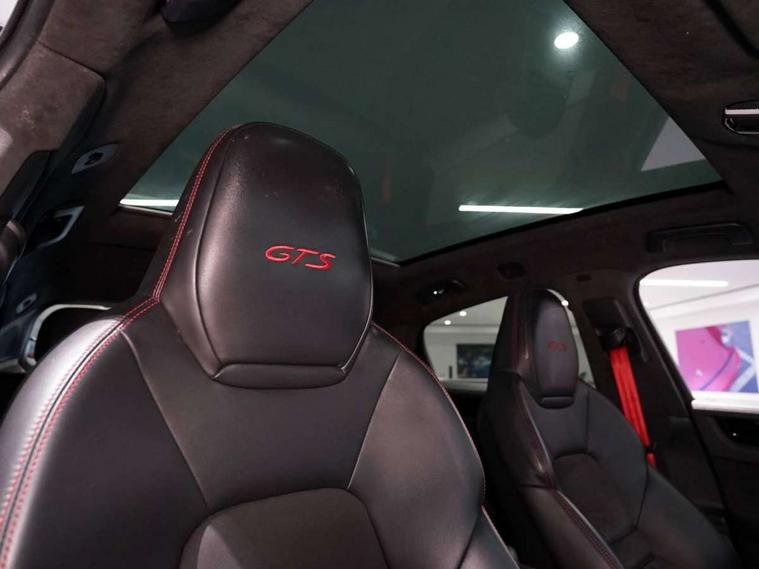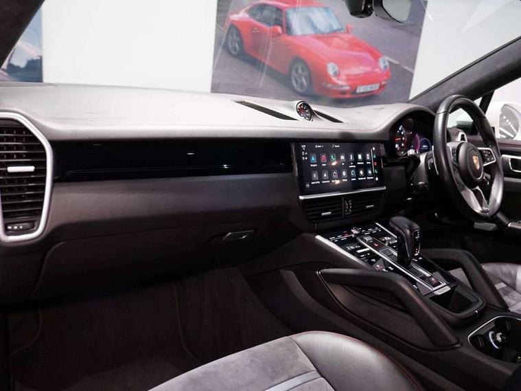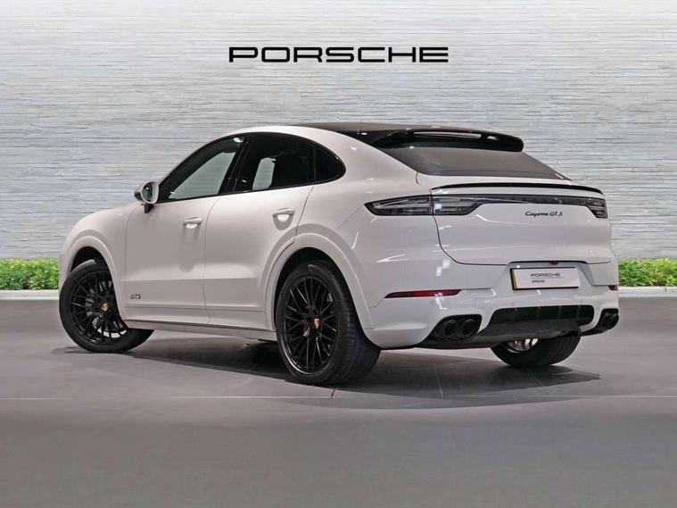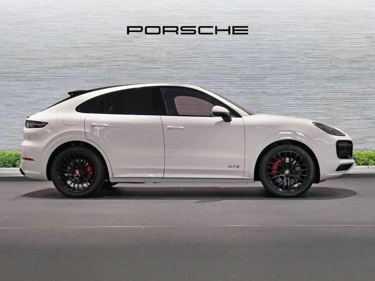 Android Auto, Apple car play, Auto start/stop function and coasting, Brake pad wear indicator, Central analogue rev counter with black dial face and GTS logo, Driver personalisation for climate, audio and communication, assistance systems and other customisable car systems, E-call, High resolution 12.3-inch touchscreen display in full HD resolution, Individual mode for individual selection of vehicle drive settings, Instrument cluster with two high-resolution displays, Mobile phone preparation with Bluetooth interface for telephone and music, Porsche Communication Management (PCM) including online navigation module, mobile phone preparation, audio interfaces and voice control system, Power steering plus, Power tailgate, Vehicle electrical system recuperation, Warn and brake assist including pedestrian protection, 8 Speed Tiptronic S transmission with auto Start-Stop and coasting function, 90 litre fuel tank, Adaptive cylinder control, Aluminium cylinder heads and engine block, Direct fuel injection (DFI) with central injector position, Front and rear aluminium multi link axles, Gasoline particulate filter, Panoramic roof with fixed glass panel, Porsche Torque Vectoring Plus (PTV Plus), Sport mode, Turbocharger with twin scroll turbine, VarioCam, Water cooled with thermal management, AM radio, Digital radio, Two USB charge ports in rear compartment, Two USB charging and connectivity ports in the front centre console storage compartment, Active air intake flaps, Automatic headlight activation including welcome home functionality, Bumper system with high strength cross members and two deformation elements + Two receptacles with screw threads towing lug + onboard tool kit, Door lower cladding trim in exterior colour, Electric windows + anti trap protection + one touch open/close drivers side, Electrically adjustable, folding and heated exterior mirrors, aspherical on drivers side including courtesy lights, Exclusive tinted LED tail lights with three dimensional lighting graphic including light strip and integrated four point brake lights, Extensive aerodynamic underbody protection, Exterior colour door side trim, Four point signature LED daytime running lights, Front end with integrated air intakes and airblades for the side air intakes, Front light modules including position lights and direction indicators in LED light guide technology, Front windscreen wipers with two speeds, intermittent wipe and rain sensor, Gloss black side window trims, Heated rear window with automatic switch off, LED High level third brake light integrated into roof spoiler, Porsche active aerodynamics (PAA) with adaptive roof spoiler, Porsche logo and cayenne GTS model designation on tailgate in matt black, Porsche logo integrated into rear taillight strip, PORSCHE' lettering integrated in tailgate strip, Preparation for the roof transport system, Rear apron lower cladding painted in exterior colour, Rear side wing doors, Rear window wiper with intermittent function and washer jet, 2 seat bench in 2nd row, Alcantara roof lining, B-pillar clothes hooks on driver and passenger's side, Charge air cooling, Double sun visors for driver and front passenger, Driver/passenger sunvisors and vanity mirrors, Elevated centre console with handles, Front and rear bottle holders in door panels, Front head restraints, GTS logo on door sills front, left and right in black, GTS logo on front door lower trim in black, GTS model logo on headrests front and rear in conjuction with GTS sports seat interior, GTS sports design in bench rear seat with 2 comfort outer seat, third centre seat + 2 way headrest on outer seat, manual fore/aft, backrest angle adj, Height adjustable rear headrests, Isofix fastening system for child seats on outer rear seats, LED interior light with switchoff delay function, footwell + glove compartment light, ashtray + ignition lock illumination, front + rear reading light, Manual height adjust for driver and front passenger seat belt, Particle/pollen filter with active carbon filter, Rear seat split folding design 40:20:40, Fold out centre armrest with integrated cup holder, manual fore/after adjust and backrest angle adjust, Rigid integrated and removable parcel shelf, Sideskirts in black plastic, Single front passenger seat, Stainless steel pedals, Storage compartments - Cooled glove compartment, front centre console, door and map pockets on front seat backrests + side luggage compartment, Three 12V power sockets - front below the glove compartment, centre console and at side of luggage compartment, Two integrated cup holders in front and rear with variable diameter, Sport design package - Cayenne, 3 point automatic seatbelts with front and outer rear seats pretensioners and front force limiter, 4 piston aluminium monobloc fixed caliper brakes at rear and internally vented brake discs, 6-piston aluminium monobloc fixed caliper brakes at front, internally vented brake discs, Active bonnet, Auto hold function, Brake discs with diameter 390mm at front 358mm at rear, Curtain airbags along roof frame and side glazing from the A-pillar to the C-pillar, Distance warning, Electronic parking brake, Front passenger airbag deactivation function for front seat mounting of child seat, Front side airbags integrated into seat, Full size driver and front passenger airbags, Knee driver and passenger airbags, Manual child lock in rear doors, Mounting points on passenger seat for ISOFIX child seat mounting system, Multi-Collision braking, Porsche hill control (PHC), PTM Porsche Traction Management active all-wheel drive with an electronically variable, map-controlled multi-plate clutch, ABD and anti-slip regulation, Rollover detection for activation of curtain airbags and seat belt pretensioners, Seat belt warning system for driver and front passenger and rear seat system, Side impact protection in doors, Tyre pressure monitoring system, Vehicle stability system, Porsche stability management (PSM) including ABS, ASR, ABD, MSR and