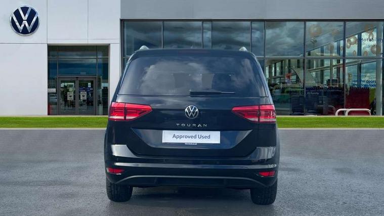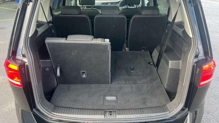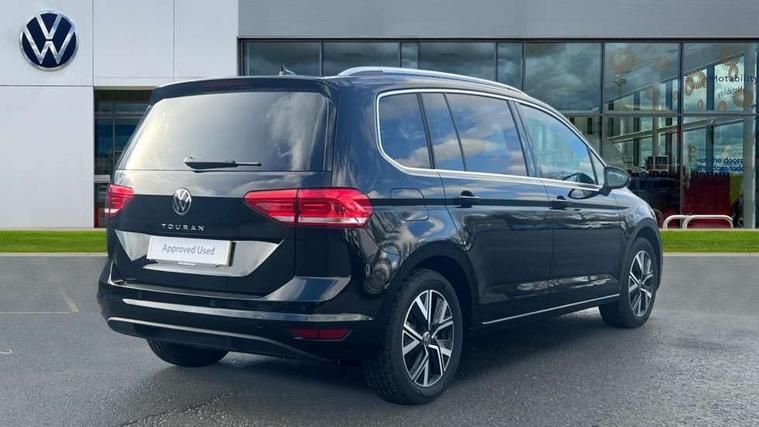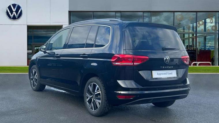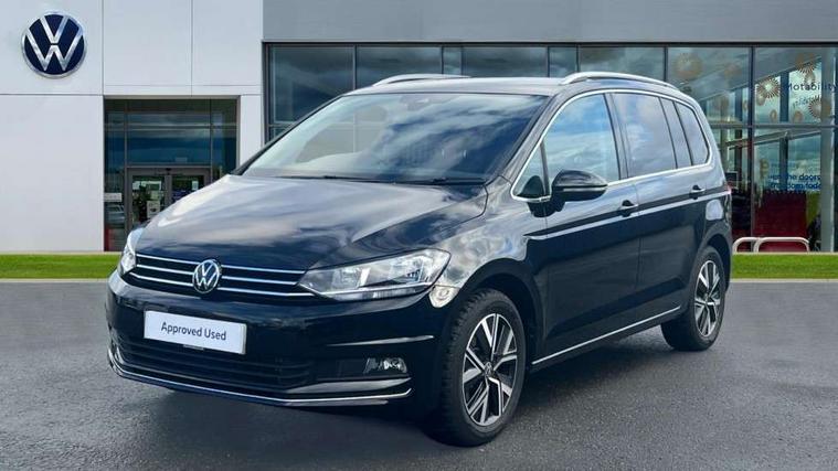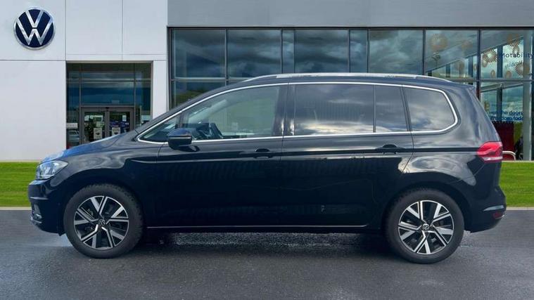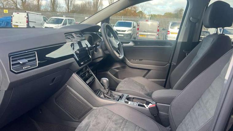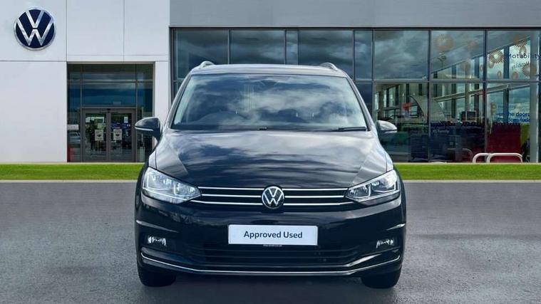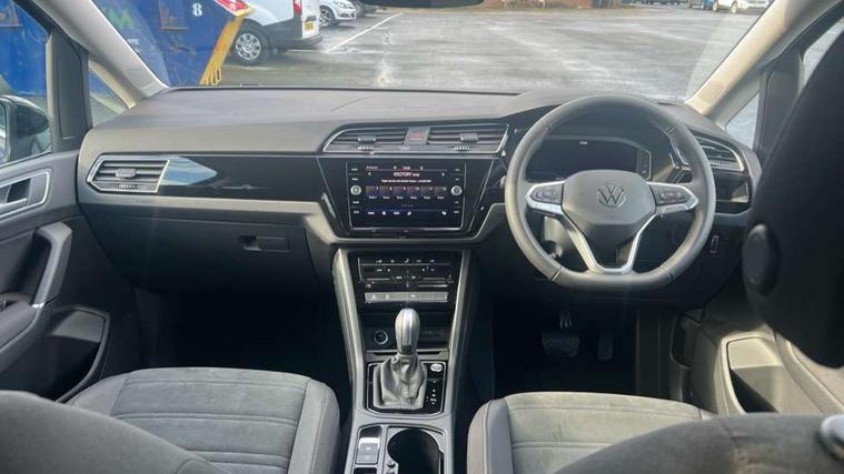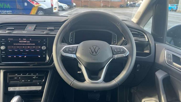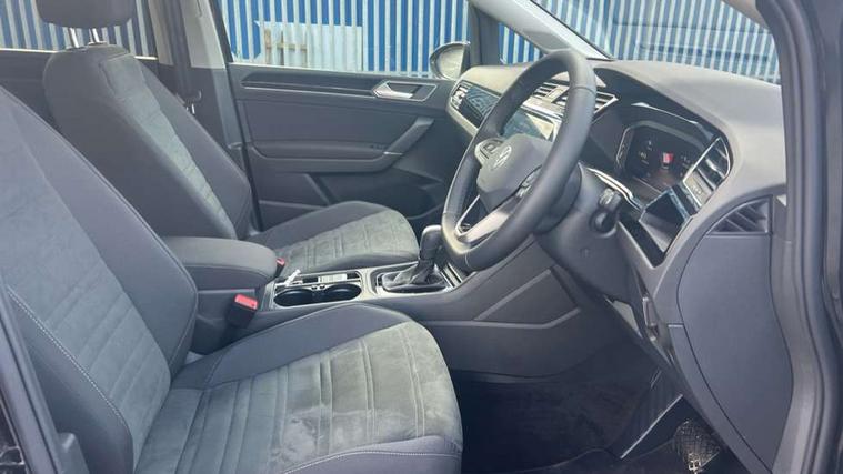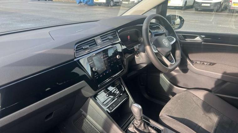 Active info display - Digital cockpit 10.25" HD display screen, Adaptive cruise control, Audible lights on warning, Discover media navigation touchscreen navigation/radio system with streaming and internet, Driver alert system, Driver electronic voice amplification function, Driver profile selection, Dynamic road sign display, Electronic odometer, Emergency services call system, Extended, crash-active and proactive Pedestrian and cyclist monitoring, External temperature gauge, Front parking sensors, Lane change system side assist and rear traffic alert, Lane keep assist, Mobile pairing with SMS function, Mobile phone interface with inductive charging, Rev counter with fuel gauge, Speed limiter, Speed sensitive power steering, Stop/start system, Think blue trainer driver tips and journey analysis, Trip and service interval display, Wireless app connect without mirror link, Petrol Particulate Filter, XDS electronic differential lock, 4x20 watt output, 8 Speakers, Audio Connectivity System, DAB Digital radio, External USB-C data socket with increased charging performance - 2 USB sockets 45W, MP3/WMA compatability, SD card slot, Title and cover art display, USB connection, Aerial integrated into side window, Auto dimming door mirrors, on driver side, surround lighting and front passenger side mirror lowering function, Auto dimming rear view mirror, Automatic coming/leaving home lighting function, Body colour bumpers, Body colour door handles, Body colour door mirrors with integral indicators, Chrome fog light surround, Chrome lower front bumper insert, Chrome trimmed front air intake surrounds, Chrome trimmed radiator grille louvre inserts, Chrome trimmed side windows, Dusk sensor + auto driving lights, Front and rear electric windows, Front fog lights with static cornering function, Fully galvanised body, Gloss black finish B pillar, Green tinted heat insulating glass, High level third brake light, Rain sensor, Rear side wing doors, Rear tinted glass from B-pillar backwards approx 65% tinted, Rear wash/wipe with intermittent wipe setting, Silver roof rails, Tailgate wiper- reverse gear activation, Twin chrome exhaust tailpipes, Volkswagen roundel, Windscreen wipers intermittent wipe, 12V power point for Row 2, 12V socket in luggage compartment, 2 individual fold flat 3rd row seats, 2 three point seatbelts in 3rd row, 2nd row centre armrest, 2nd row centre seat converts into table, 3 single slide/fold/removable 2nd row seats, 3 spoke steering wheel, 3 Zone electronic climate control with automatic air recirculation, 3x3 point seatbelts on 2nd row with height adjust on outer seats, 4 boot load lashing points, 4 way adjustable front head restraints, 5 headrests, Ambient lighting in door trim and foot well, Art velour/Microfibre cloth upholstery, Driver and front passenger under seat drawer, Dust/pollen filters, Foldable front passenger seat backrest, Front + rear carpet mats, Front and rear reading lights, Front centre armrest with storage compartment, Front comfort seats with lumbar support, Front cupholders x 2, Front passenger seat height adjust, Front seat storage pockets, Front seatback folding tables, Height adjustable driver's seat, Height/reach adjust steering wheel, Illuminated glovebox, Illuminated vanity mirrors, Instrument lighting white adjustable panel illumination with red night time illumination, Interior light with delay, Isofix on 2nd row outer seats, Isofix on 3rd row seats, Large storage compartment in roof console, Leatherette on rear of front seats, Low tunnel 2nd row seat, Luggage compartment lighting, Media box in dashboard on passenger side, Multi storage in passenger/luggage areas, Multi-function centre console with storage facilities, Multifunction leather trimmed steering wheel including leather trimmed gear knob with 3.5" screen with multifunction computer, Retractable luggage cover, Split folding rear seat backrests, Storage bins on all doors, Mirror pack - Touran, 3 point height adjustable front seatbelts, Auto hold function, Automatic post collision braking system, Door open warning reflectors, Driver/Front Passenger airbags, Drivers knee airbag, EDL + ASR, Electrically operated child locks on rear doors, Electronic parking brake, Energy recovery system, ESC with ABS, First aid kit, Front and rear (row 2) curtain airbags, Front assist including city emergency braking, Front seat side impact airbags, Front seatbelt pretensioners, Front/rear disc brakes, Hill hold control, Hydraulic Brake Assist (HBA), Loose wheel warning function, Manual passenger airbag deactivation function, Pre crash preventive occupant protection, Proactive passenger protection system with front and side assist, Rear child proof door locks, Seatbelt warning lamp and buzzer, Traction control, Two tone horn, Warning triangle, Alarm with remote central locking and interior protection, Electronic engine immobiliser, Chrome plated instrument surrounds, Piano black decorative inserts, 17" Alexandria alloy wheels with self sealing tyres and anti-theft wheel bolts,