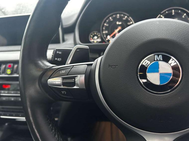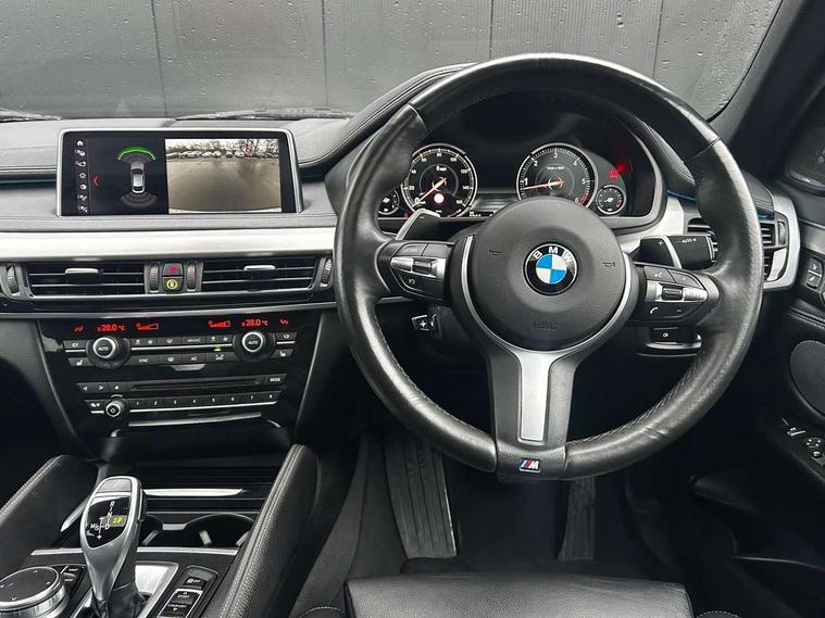 20GB Hard drive, 6.5" colour display screen, BMW information plus, BMW remote services, BMW Teleservices, Brake force display, Check control system, Lights on warning, Mobile App interface, On board computer, Outside temperature gauge, Park distance control, Professional multimedia navigation system, Service interval indicator, Servotronic PAS, Stop/start button, Voice control system, Adaptive M suspension, Diesel particulate filter, Auxiliary point for auxiliary devices, BMW professional twin tuner radio with single CD player and MP3 CD playback facility, DAB Digital radio, Auto dimming and folding door mirrors, Auto dimming rear view mirror, Body colour bumpers, Body colour door handles, Body colour door mirrors, Chrome exhaust tailpipes, Clear indicator lenses, Door mirror integrated indicators, Double kidney grille with high gloss black surround and black slats, Downlights in exterior door handles, Electric + heated aspheric door mirrors, Electric front/rear windows with anti-trap, Electric headlight adjustment, Follow me home headlights, Green tinted glass, Headlight washer jets, Heat insulated glass, Heated washer nozzles, Individual door sill finishers, M aerodynamic body kit, Rain sensor with auto light activation system, Two piece tailgate, Xenon headlights, 12v socket in front centre armrest storage compartment, 12V socket in luggage compartment, 2 x 12V socket in rear centre console, 3 spoke sports leather multi-function steering wheel with gear shift paddles, 40:20:40 split folding rear seats, Ambient interior lighting, Anthracite Velour floor mats, Boot lashing points, Electric front seats + driver memory, Front and rear cupholders, Front armrest with storage bin, Front reading lights, Front/rear courtesy lights with soft on/off dimming, Full black panel display, Heated front seats, Height adj rear head restraints, Illuminated glovebox with lock, Isofix child seat preparation, LED footwell lights, Luggage compartment cover, Reach + rake adjustable steering column, Storage bins on all doors, Sunvisors with illuminated vanity mirrors, Tilt/height adjustable front head restraints, Toolkit located in luggage compartment, Extended storage pack - X6, 3 rear 3 point seatbelts, ABS, ADB - Automatic Differential Brake, Automatic Stability Control (ASC), BMW emergency call, Child locks on rear doors, Cornering brake control (CBC), Crash Sensor - activates hazard/interior lighting + unlocks doors, Driver/Front Passenger airbags, DSC - Dynamic Stability Control, Dynamic brake control, Dynamic Traction Control - DTC, Electronic brake force distribution, Electronic parking brake, Front and rear head airbags, Front passenger airbag deactivation, Front passenger seat occupancy sensor, Front side airbags, Height adjustable front seatbelts, Hill descent control, Hill start assist, Pyrotechnically pre-tensioned front seatbelts, Tyre pressure monitor, Warning triangle and first aid kit, Locking wheel nuts, Remote central locking, Thatcham cat 1 remote alarm/immobiliser, Run flat tyres,