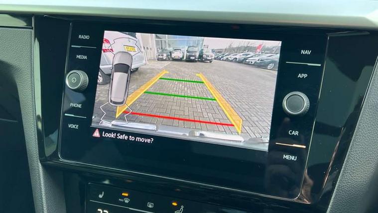 Adaptive cruise control (ACC) with speed limiter, front assist (reacting vehicles pedestrian and cyclists) and follow to stop, App connect including wireless Apple CarPlay, Camera for warning system, Digital cockpit with 10.25" high resolution TFT display screen with customisable menus and information, Driver alert system with fatigue detection, Driver profile selection including ECO function, Dynamic road sign display, eCall - Emergency call service for SOS calls to emergency response, Emergency assist, Hands free boot opening, Press and drive key, Progressive steering, Speedo and rev counter, electronic odometer, trip, service interval display and exterior temperature gauge, Tailgate, Travel assist - Lane keeping assist and traffic jam assist, Voice activation for telephone and navigation, Start/stop function with battery regeneration, External, USB type C data sockets with increased charging performance front (45 Watt), Premium USB cable in choice of either Apple or Android smartphone compatibility, Auto dimming interior rear view mirror, Automatic headlights, Body colour door handles, Body colour side skirt, Body coloured top and matt black lower door mirrors with integrated indicators, Chrome plated radiator grille inserts and light switch surrounds, Chrome side window surrounds, Dynamic headlight range control, Electric folding door mirror, adjustable, heated with front passenger exterior mirror lowering function, Front and rear electric windows, Front and rear stainless steel door sill protection, Front windscreen washers and wipers with 4x interval delay, Heat insulating side and rear windows, Heated rear windscreen, Heated windscreen washer jets, LED 3rd brake light, LED rear combination lamp with dynamic indicators, LED rear number plate lights, Panoramic sunroof with tilting and sliding including integrated roller blind, R Line design body coloured bumpers, Rain sensor, Rear fog lamp on one side and reversing lamp on both sides, Rear side wing doors, Rear tinted glass from B pillar backwards, approx 65% tinted, Rear windscreen washer and wiper with interval delay, Roof spoiler, Tailpipes behind rear bumper, 12V socket in front centre console, 12V socket on rear of front centre armrest, 3 rear head restraints, 3 seat bench in 2nd row, 30 colours options interior ambient lighting, 60:40 split folding rear seat backrests with centre armrest, Air care climatronic 3 Zone electronic air conditioning with automatic air recirculation, Black roof lining, Chrome trim on upper and lower air vents extending across cockpit, Driver and front passenger sunvisor with vanity mirror, Front + rear carpet mats, Front cupholders x 2, Front footwell illumination, Front sports comfort seats, Glovebox, Heated front seats, Height/reach adjust steering wheel, Isofix child seat preparation easy fit for two outer rear seats, Luggage compartment lighting, Removable luggage compartment cover, Single front passenger seat, Split folding front seat backrest with front centre armrest, Stainless steel pedals, Two LED front reading light, 3 rear three point seatbelts, ABS+EBD+Brake assist, Child locks on rear doors, Driver airbag and front passenger airbags with deactivation switch including driver knee airbags, Electronic parking brake, Electronic stability control (ESC) and Electromechanical brake booster, Front disc brakes, Front side airbags with curtain airbags, Hill start assist, Pro active occupant protection to detect critical situations with elevated accident potential from the front, Rear disc brakes, Three point height adjust front seatbelts + pretensioners, Two tone horn, Tyre pressure loss indicator, Warning buzzer for seatbelts if unfastened, Warning triangle, Alarm with interior protection with deactivation via infotainment system, Electronic engine immobiliser, Keyless entry system including start/stop button on centre console, Remote central locking, Aluminium decorative inserts, Chrome trim on lower doors in front and rear, Leatherette insert on door and side trim panel in foam film, Piano black decorative inserts in centre console,