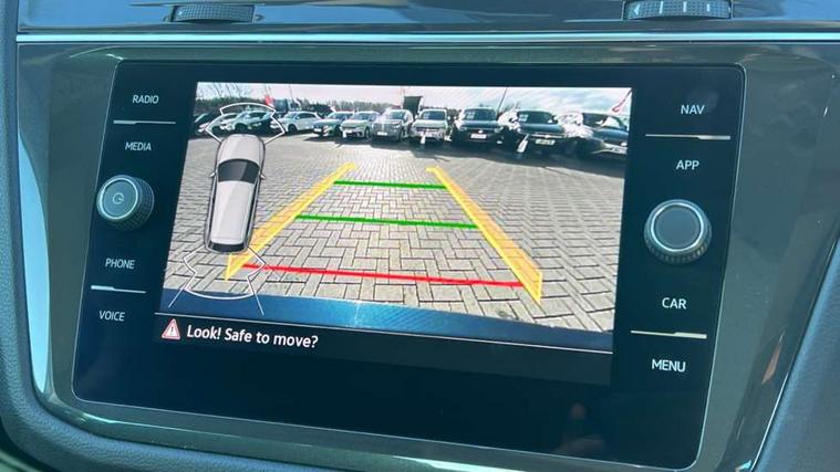 Adaptive cruise control ACC stop and go including speed limiter, App-Connect incl. App-Connect Wireless for Apple CarPlay and Android Auto, Bluetooth phone integration system, Distance control assist, Driver alert system, Driver profile selection, Dynamic road sign display, eCall emergency call system, Electromechanical speed sensitive power steering, Engine start/stop button, Lane keeping system Lane Assist, Lights on warning, Motorised electric tailgate operated via key fob, drivers door and foot movement under tailgate, Multifunction front facing camera, Outside temperature display, Premium multifunction display with multi colour display, Remote control boot opening, Rev counter, Revision / skills operating concept travel assistant, Service interval indicator, Speed limit display, Start/stop system with regenerative braking, Tailgate/trunk lid unlocking from outside, Trip computer, Warning sound and light for doors and tailgate open, Battery regeneration during braking, XDS electronic differential lock for improved traction and handling, 4 X 20 watt output, 8 Speakers, Diversity antenna for FM reception, Radio, SD card slot, Simultaneous pairing of 2 compatible mobile devices, SMS functionality - read, compose and send SMS messages using touch-screen display, Title and cover art display, USB C ports, Aluminium door sill protectors, Auto dimming interior rear view mirror, Automatic headlight control system, Body colour door handles, Body coloured bumpers, Body coloured door mirrors with integrated indicators, Coming/leaving home lighting function, Dynamic headlight range control, Front and rear electric windows, Heated rear window, High level 3rd brake light, IQ light-Adv high beam, Dynamic light assist for LED matrix headlamp+LED separate DRL+DCL, dark red rear LED tech, Poor weather light+ cornering light, Laminated safety glass windshield, heat and sound insulating, LED rear number plate lights, Poor weather light and cornering light, Privacy glass for rear side windows and rear window, Rain sensor windscreen wipers, Rear exhaust tailpipe, Rear fog lamp, Rear side wing doors, Rear windscreen washer and wiper with interval delay, Side and rear windows in heat insulating glass, Tilting and sliding panoramic sunroof with rear panoramic sunroof, Trailer Stability Programme, Windscreen wipers/ intermittent wipe + 4 position delay, 12V outlet in center console rear and in luggage compartment, 12V outlet in front and tray, 2 cup holders in front, 2 LED front reading lights, 2 LED rear reading lights, 3 bench rear seats in 2nd row, 3 rear headrests, 4 load lashing points, 40:20:40 split folding rear seats, Air Care Climatronic 3 zone automatic climate control with enhanced air filter and controls in the rear, Backrest release for left front seat, Climate control unit rear with touch function, Door and side trim panel in foam film and woven fabric, Front centre armrest, Front footwell illumination, Front seats head restraints (x-adjustment), Height adjustable front seats, Height/reach adjust steering wheel, Instrument lighting white adjustable panel illumination, Interior light with delay, Isofix Preparation 2 Rear child seats, Leather gear knob, Lockable cooled glovebox, Luggage compartment lighting, Luggage net, Rear bench seat asymetrically split folding, longitudinally movable and folding with load-through hatch and center armrest, Remote unlocking for rear seat backrest, Removable luggage cover, Removable rear headrests, Safety optimised front head restraints, Single front passenger seat, Sliding/reclining rear seats, Standard rear seat release, Storage compartment in driver's door, Storage compartment in passenger's door, Storage compartment in rear doors, Storage compartments in luggage area left and right, Storage tray on dashboard, Sun visors with illuminated vanity mirrors, Top front comfort seats, Variable boot floor, height adjustable and removable, Easy open and close pack with safelock - Tiguan, 3 point seat belt for centre rear seats, 3 point seat belts with seat belt pretensioners for the outer rear seats, Active bonnet, Curtain airbags for front and rear passengers, Driver/Front Passenger airbags, Drivers knee airbag, Electronic parking brake with auto hold, Electronic Stability Control with driver steering recommendation, ABS, ASR, EDL, EDTC and trailer stabilization, Front assist with autonomous emergency braking (for Adaptive Cruise Control ACC up to 130 mph), Front disc brakes, Front passenger airbag deactivation, Front side airbags, Height adjustable front 3 point seatbelts + pretensioners, Hill hold control, Manual child proof rear door locks, Pedestrian monitoring system, Power assisted brakes, Proactive passenger protection system in combination with front assist, Rear disc brakes, Rigid safety cell with front and rear crumple zones, Two tone horn, Warning sound and light for front seat belts if unfastened, Anti theft alarm system with interior monitoring, backup horn and towing protection, Anti theft wheel bolts, Central locking system with safelock radio remote control and 2 remote control folding keys, Electronic engine immobiliser, Tool kit,