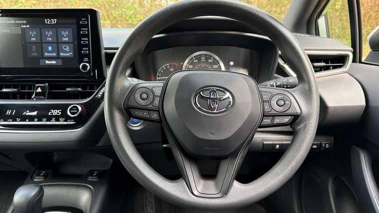 Driver attention alert, eCall emergency system, Electric power steering, Lane departure alert with steering control, Lane trace assist, MyT connected services, Pre-collision system with pedestrian and cyclist detection, Reversing camera, Road sign assist, Smart phone integration with Android auto & Apple CarPlay, Static guide lines on reversing camera, Toyota safety sense with adaptive cruise control, lane keep assist, Tyre pressure warning system (TPWS), Voice recognition, 4.2 colour multi information display, 6 speakers, 8 inch multimedia display with DAB and bluetooth, Toyota touch 2 multimedia system, USB connector, Auto Headlights, Automatic high beam, Black lower front grille, Black window frame, Body coloured door mirrors and door handles, Body coloured front spoiler, Body coloured rear bumpers, Body coloured rear spoiler, Body coloured shark fin antenna, Electrically heated and adjustable door mirrors, Emergency brake light assist (EBS), Follow me home headlights, Gloss black upper front grille, Intermittent windscreen, LED Daytime running lights, LED multi-reflector headlights, Light remind warning, Manual headlight levelling, Manually retractable door mirrors, Mesh lower front grille, Paint protection wax/film wrap guard, Rear window defogger system, 12v power outlet in boot, 2 front seats, A/C ECO mode switch, Automatic dual zone air conditioning, Black interior door handles, Boot light, Electric adjustable lumbar support for driver seat, Fabric armrests, Fabric upholstery, Floor mats, Front 12v power outlet, Full metal bulkhead, Heated and manually height adjustable front seats, Illuminated entry system, Key reminder warning, Manually sliding driver and front passenger seat, Rubber lined load bay, Satin chrome gear shift surround on centre console and speedometer, Satin chrome insert on dashboard, 7 airbags, Child safety door lock, Remote door lock, ABS + EBD, Adjustable speed limiter, Hill start assist control, 15" steel wheels with centre wheel caps, Tyre repair kit,