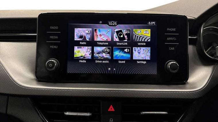 Bluetooth system, E-call, Front assist system, PAS, Service indicator, Speed limiter, Wireless Smartlink for Apple CarPlay (wired for Android Auto), 8 Speakers, Auxiliary input socket, DAB Digital radio, Body colour bumpers, Body colour door mirrors and handles, Chrome grille surround, Dimming rear view mirror with black surround, Electrically adjustable and heated door mirrors, Front and rear electric windows, Headlight range control, Heated rear window, LED rear lights - low functionality, LED third brake light, Light sensors, Rain sensor, Rear fog lights, Rear side wing doors, Rear wiper, 12V Accessory socket in centre console, 3 seat bench in 2nd row, Chrome inner door handles, Cloth upholstery, Front head restraints, Glove compartment with illumination, Ice scraper, Isofix child seat fittings on outer rear seats, ISOFIX on front passenger seat, Manual lumbar support for front seats, Rake/reach adjustable steering wheel, Reading lights, Single front passenger seat, Sun visors with illumination on front passenger, Textile floor mats, Third rear headrest, Top tether for front passenger seat, Umbrella in driver's door, 3x3 point rear seatbelts, Airbags - driver and front passenger, ESP, Front passenger airbag deactivation switch, Front side airbags with curtain airbags, Hill hold control, Manual parking brake, Manual rear child locks, One tone horn, Rear disc brakes, Seatbelt reminder for driver an co-driver, Traction control, Tyre pressure monitor, Anti-theft alarm system with interior monitoring, backup horn, towing protection and remote central locking with SAFE system, Anti-theft wheel bolts, Electronic engine immobilizer,