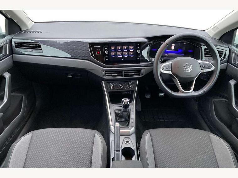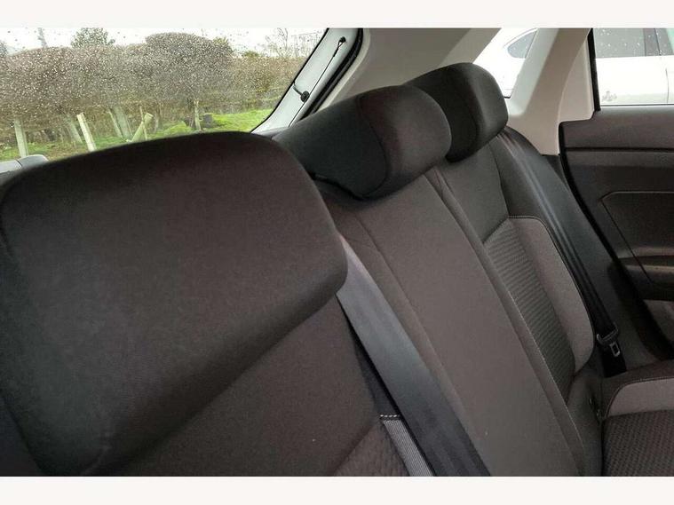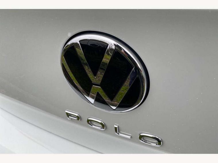 Adaptive cruise control without follow-to-stop and speed limiter, Advanced driver attention and drowsiness monitor, Bluetooth mobile phone interface, Dynamic road sign display, Emergency call service, Multifunction front facing camera for distance control, Park distance control, Power assisted speed sensitive steering, Preparation for navigation system with media and internet package, Preparation for We connect and We connect plus, Rear view camera, Speedo and rev counter, electronic odometer, trip, service interval display and exterior temperature gauge, Standard rear axle, Travel Assist - Lane keeping system and traffic jam assist, Travel assist including emergency assist, Trip computer, Warning signal and warning light for front and rear seatbelts not fastened, Washer fluid level indicator, Wireless app connect, Front wheel drive, Rear shock absorpion, Start-stop system with battery regeneration (recuperation - energy recovery during braking), DAB Digital radio, Diversity antenna for FM reception, Front and rear 6 speakers, Automatic dimming interior rear view mirror, Automatic headlight control with LED separate daytime running lights with coming/leaving home function, Body colour bumpers with chrome inserts, Body colour door handles, Body colour door mirrors, Electric front windows, Engine badge deletion, Headlight range adjustment, Heat insulating and laminated safety glass windshield, LED Headlights, LED rear combination lamps, Power folding adjustable/heated exterior mirrors and front passenger exterior mirror lowering function, Rain sensor, Rear electric windows, Rear fog light, Rear side wing doors, Rear tinted glass from B-pillar backwards approx 65% tinted, Rear windscreen washer and wiper with interval delay, Third brake light, 12V power socket in centre console, 2 front and 2 rear reading lights with switch off delay and dimmer, 2 USB-C ports in the front, 2 USB-C charging sockets on the center console in the rear, 3 rear head restraints, 60/40 split folding rear seat and rear seat bench not split, Ceramique roof lining, Chrome plated radiator grille inserts, air vent surrounds and light switch surrounds, Door and side trim panel, Driver and front passenger seat height adjustment, Driver/passenger sunvisors with illuminated vanity mirrors, Front centre armrest, Front seat backrest storage pockets, Front standard seats, Handbrake lever handle in leather, Hartley/Thomas cloth upholstery, Headliner in recycled material, Isofix child seat preparation easy-fit (for two outer rear seats, and front passenger seat) compatible with I-size, Leather trimmed gear knob, Luggage compartment cover, Luggage compartment lighting, Removable luggage compartment floor, Single front passenger seat, Standard climatic zones, Standard pedal cluster, Three spoke leather wrapped multifunction steering wheel, Light and vision pack - Polo, 3 point height adj front seatbelts + pretensioners, 3 point seat belt for centre rear seat, 3 point seatbelts, outer rear with ECE lable, ABS, Driver and front passenger airbag with front passenger airbag deactivation, Drivers and front passengers safety optimised head restraints, ESC (Electronic stability control) + EDL (Electronic Differntial lock) and ASR (Traction control), Extended and predictive pedestrian/ cyclist protection, Front assist with autonomous emergency braking (for Adaptive Cruise Control ACC up to 130 mph), Front curtain and side airbags with center airbag, Front disc brakes, Hill hold control, Manual child lock in rear doors, Rear drum brakes, Single tone horn, Tyre pressure loss indicator, Alarm with interior protection, Anti-theft alarm system with interior monitoring, backup horn, and towing protection, Anti-theft wheel bolts, Electronic engine immobiliser, Lava stone black gloss/matt decorative inserts in dash and front door panels, 16" Torsby alloy wheels, Low rolling resistance tyres,