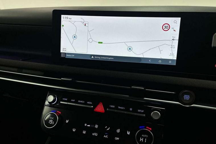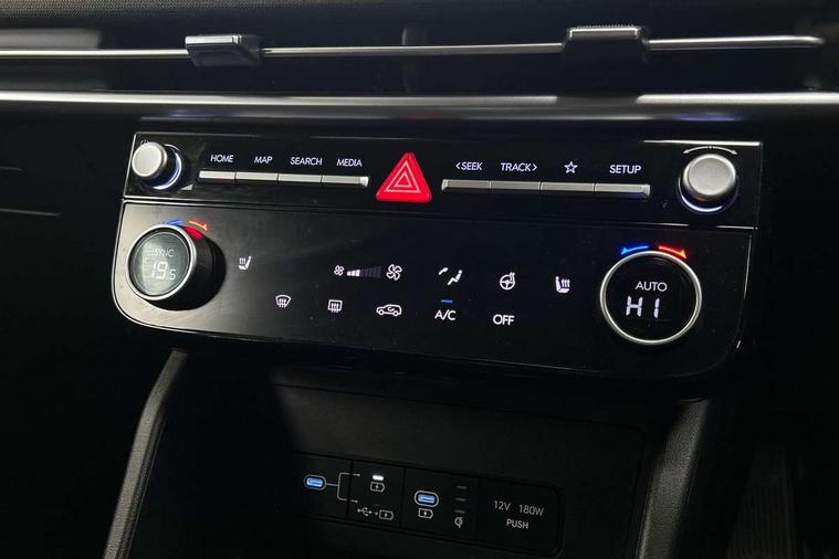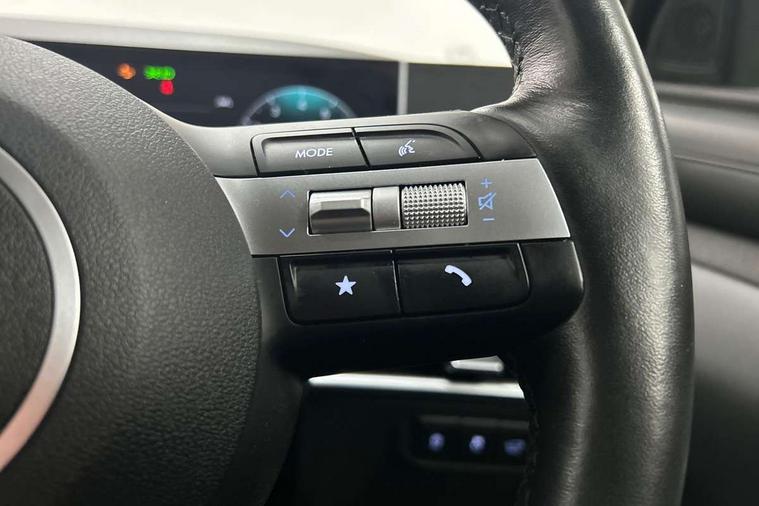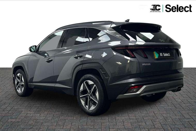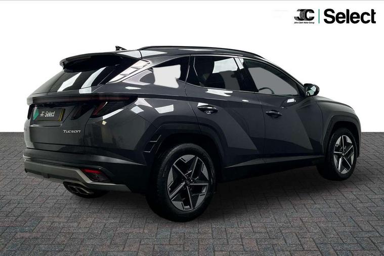 12.3" LCD display with driver's supervision instrument cluster, 12.3" widescreen navigation with bluelink and mapcare, Bluetooth system, Cruise control, Digital clock, Drive mode selector, Driver attention warning, E-call, Emergency stop signalling system, Forward Collision Avoidance Assist (FCA) - Car, Pedestrian and Cycle, Forward Collision Avoidance Assist Junction Turning (FCAJX), Front and rear parking sensors, Hyundai road side assistance, Intelligent speed limit assist, Lane follow assist, Lane keep assist, Over the air updates(OTA), PAS, Rear camera and guidance parking system, Rev counter, Smart power tailgate, Tailgate open warning light, Trip computer, Trip odometer, Voice recognition, Water temperature gauge, Windscreen washer fluid sensor and warning indicator, Wireless Apple CarPlay/Android Auto, Wireless phone charging pad, 2 front and 2 rear USB-C ports, DAB Digital radio, Krell premium audio system with 8 speakers and subwoofer, Steering wheel mounted audio/phone controls, Adjustable intermittent front windscreen wipers with aero wiper blade, Auto dimming rear view mirror, Automatic defog system, Automatic headlights with dusk sensor, Automatic windscreen wipers with rain sensor, Black wheel arches, Body colour bumpers, Body colour door mirrors with integrated indicators, Body colour exterior door handles, Electrically adjustable, heated and power folding door mirrors, Follow me home headlights, Front and rear electric windows with anti-trap mechanism and one touch control, Front fog lights, LED 3rd brake light, LED daytime running lights, LED Headlights, LED rear lights, Positioning Lights - LED, Privacy glass - Rear windows and tailgate, Rear side wing doors, Rear wash/wipe with intermittent wipe setting, Roof rails, Soft touch rear door paneling, Tinted glass with windscreen shade band, Trailer stability assist, 12V power outlets in front console and luggage compartment, 3 seat bench in 2nd row, 40/20/40 split folding rear seat, 64 colours interior ambient lighting, Adjustable head restraints (Up and down), Cupholders in rear armrest, Door courtesy lights, Driver and passenger sunvisors with illuminated LED vanity mirrors, Driver's seat electric adjustments, Dual zone climate control, Front and rear door pockets, Front armrest with storage box, Front centre console and door bottle holders, Front passenger's seat electric adjustments, Heated front seats, Heated rear seats, Heated steering wheel, Height/reach adjustable steering column, Illuminated/air conditioned glove compartment, ISOFIX child seat anchorage points attached on outer rear seats, Leather wrapped steering wheel and gear knob, LED interior lighting, Luggage compartment lighting, Luggage cover, Luggage hooks, Luggage net, Map and reading lights, Premium cloth/leather upholstery, Rear seat remote folding function, Rear side window sunblind, Reclining rear seats, Retractable load cover, Single front passenger seat, Sunglasses holder, Touch sensitive climate controls with temperature dials, TUCSON branded metal door scuff plate, Underfloor boot compartment, Trailer wiring package - Tucson, 3x3 point rear seatbelts, Active bonnet, Airbag - Front, front side, curtain and centre front airbags, Anti-lock brake system (ABS), Brake assist function, Childproof rear door locks, Curtain airbag roll over sensor, Downhill brake control, Electric parking brake, Electronic stability control, Front and rear seatbelt reminder, Front passenger airbag deactivation switch, Front seatbelt pretensioners, Hill start assist control (HAC), Multi-Collision braking, Outer rear seatbelt height adjustment, Seatbelt height adjustment for front seats, Traction control, Tyre pressure monitoring system with individual tyre pressure display - TPMS, Vehicle stability management, Deadlocks, Immobiliser, Locking wheel nuts, Remote control central locking, Smart key with keyless entry and engine start/stop button, Speed sensitive auto door locking, Thatcham category 1 alarm, 18" Alloy wheels, Tyre repair kit,