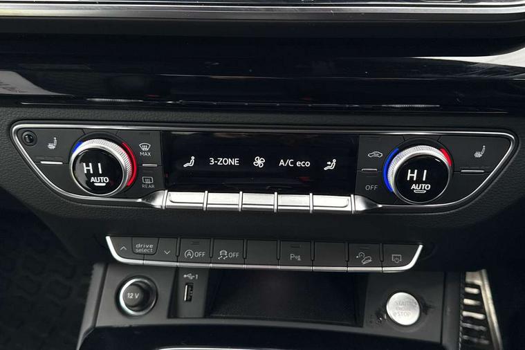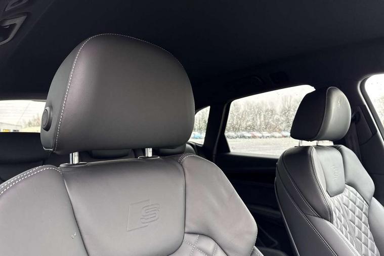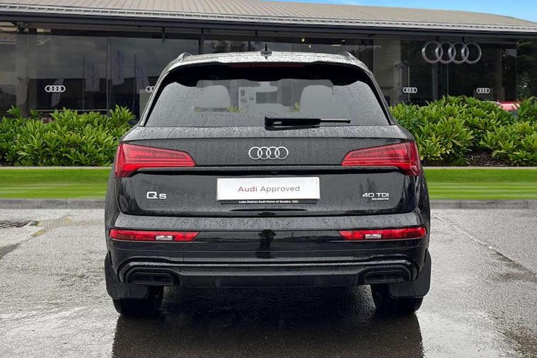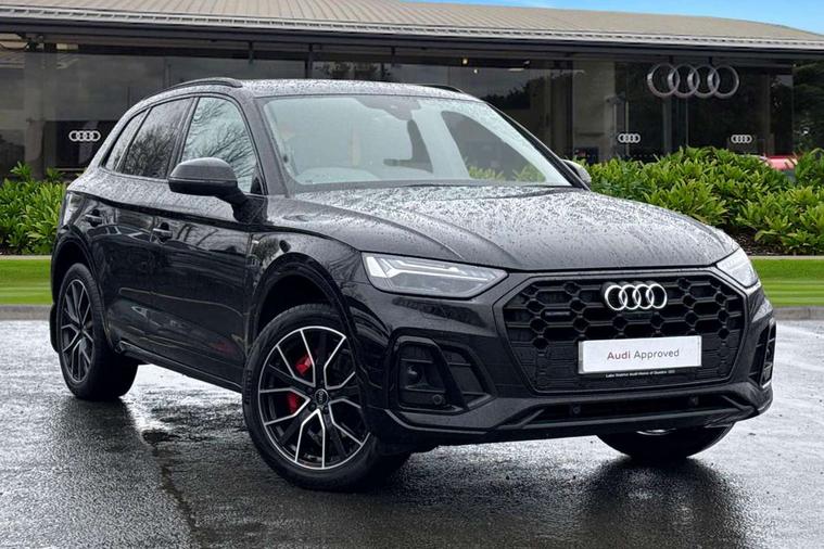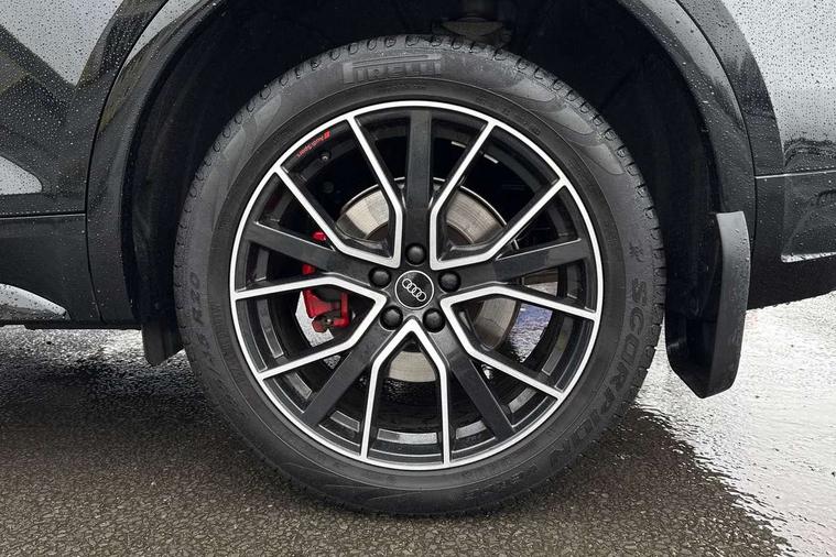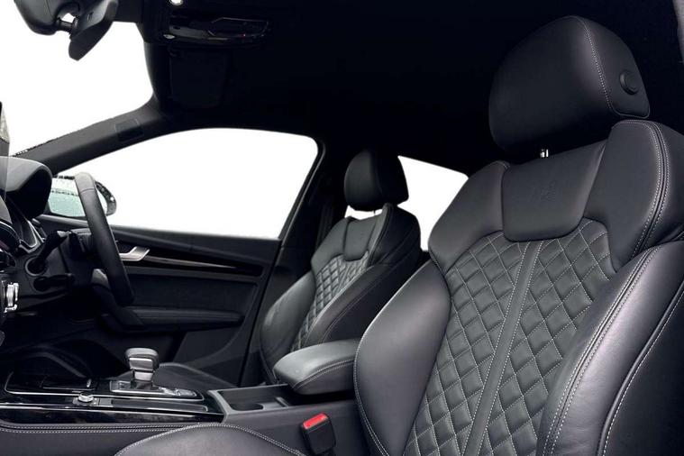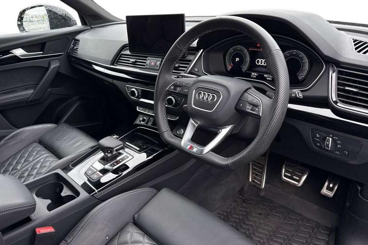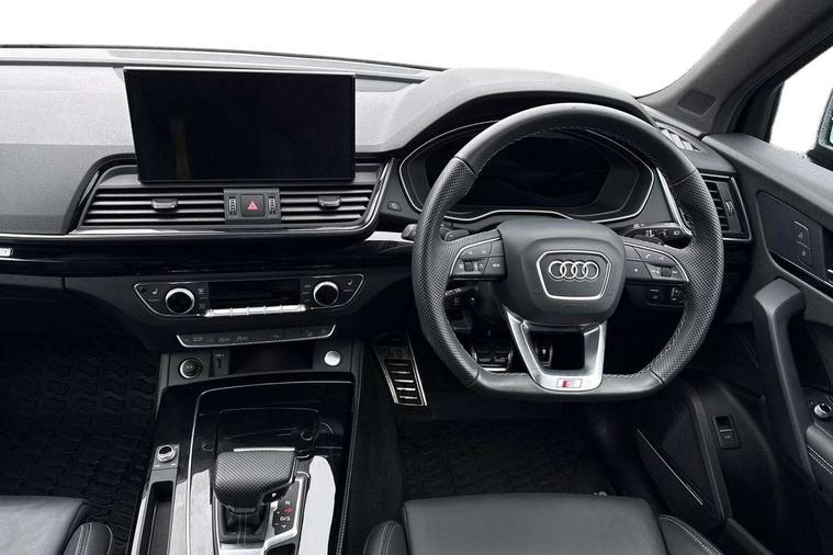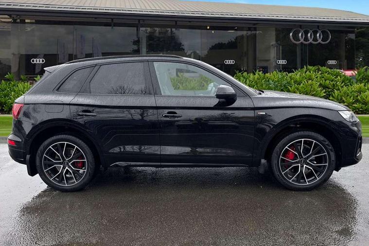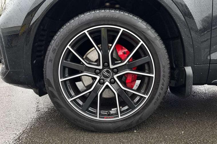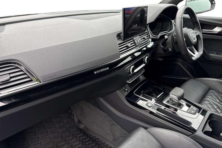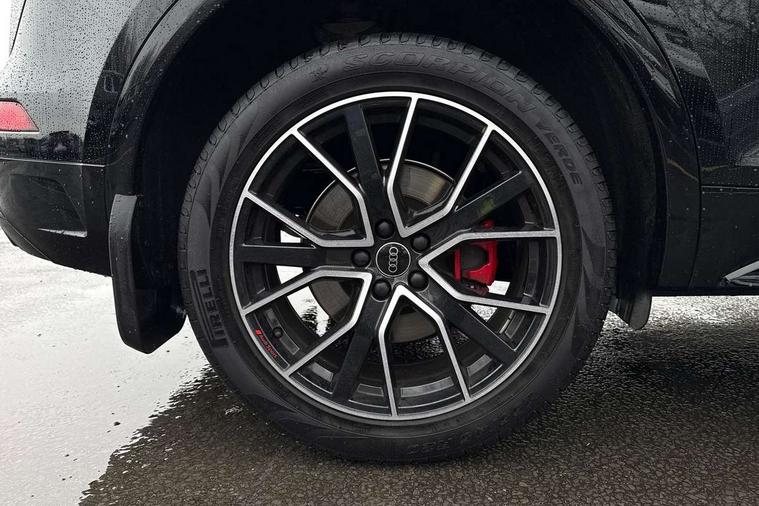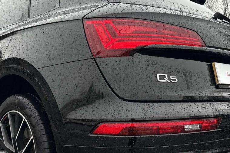 Audi connect safety and service (e-call), Audi connect with Amazon Alexa Integration, Audi drive select, Audi virtual cockpit plus with 12.3" screen and three different layout designs, Audi wireless smartphone interface, Automatic start-stop system with coasting functionality and efficiency programme, Bluetooth interface, Electro - mechanical power assisted steering, MMI navigation plus with 10.1" touch screen, Power tailgate, Reversing camera, Service interval indicator, Voice control system with Audi hotword activation "Hey Audi", Diesel particulate filter, Quattro on demand, S line sports suspension, 2 x USB charging port with aux input socket, DAB Digital radio, Acoustic windscreen, Audi matrix LED headlights with dynamic front and rear indicators, Audi rings at front and rear in black, Audi rings decal on rear doors, Auto dimming door mirrors, Auto dimming rear view mirror, Automatic headlights and windscreen wipers, Black door mirrors, Black roof rails, Body colour bumpers, Body colour underbody protection, Chrome plated exhaust trims, Daytime running lights, Door sills in Selenite silver, Electric adjustable/heated/folding door mirrors, Front air inlet surrounds in titanium black, Front and rear electric windows, Headlight washers, High gloss black B pillar trims and triangular rear door trim, High level LED brake light, Rear chrome trim strip below lights, Rear privacy glass and rear side windows, Rear side wing doors, Rear wiper, Roof bars, S Line rear spoiler, 3 rear headrests, 4 way electric lumbar support for driver and front passenger, 40:20:40 split folding 3 rear bench seat in 2nd row with rear centre armrest, Black cloth headlining, Comfort front centre armrest, Contrast stitching on seats, steering wheel and gear lever gaiter, Deluxe 3 zone electronic climate control, Electrically adjustable front seats, Fine Nappa leather upholstery with diamond pattern contrast stitching + front sport seats with S embossed logo, Front/rear floor mats, Gear lever in black leather, Heated front seats, Height adjustable front head restraints, Height/reach adjustable steering column, Illuminated door sill trims with S logo, ISOFIX child seat mounting and top tether, Rear seat bench plus, Removable luggage compartment floor, Single front passenger seat, Stainless steel pedals, Sunvisors with vanity mirrors, Black styling package - Q5 Edition 1, Extended interior upholstery pack - Q5, Extended LED Interior multi coloured Lighting Pack - Q5, 3 point seatbelts on all seats, 6 airbags - Driver, front passenger, curtain and side airbags, Electrically operated child locks on rear doors, Electromechanical parking brake, Electronic stabilisation control including ABS, ASR and EDL, Front and rear brake calipers painted in red, Front passenger airbag deactivation, Hill descent control, Hill hold assist, Multi collision brake assist, Pop-up bonnet for pedestrian protection, Pre sense city, Seat belt force limiter, Seatbelt monitoring, Tyre pressure warning, Warning triangle and first aid kit, Anti theft alarm, Anti-theft wheel bolts, Keyless Go access/ignition system, Remote central locking, Piano black finish inlay,