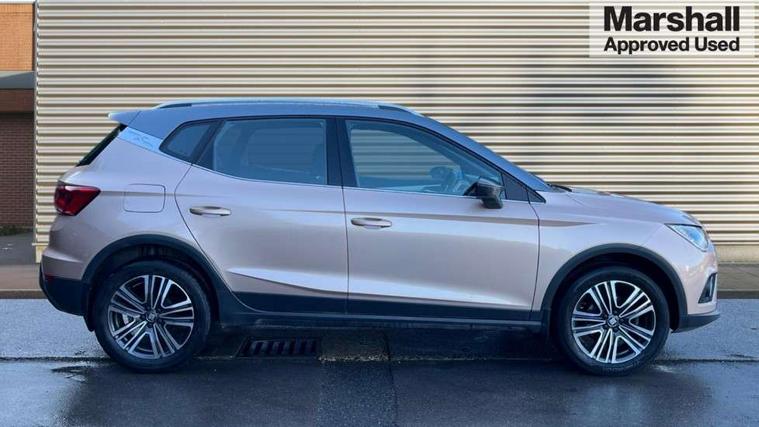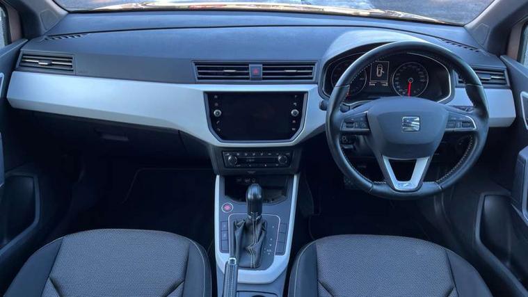 'Lights On' Reminder warning buzzer, Adaptive cruise control, Blind spot monitor, Electric speed sensitive power steering, Front assistant collision mitigation, Outside temperature display, Rear cross traffic alert, Rear parking sensor, Trip computer, Comfort suspension, 6 speakers, Bluetooth interface for hands free and audio streaming, DAB Digital radio, Steering wheel mounted audio controls, Auto dimming interior mirror, Automatic activation of hazard warning lights, Automatic headlights, Body coloured bumpers, Body coloured door handle inserts, Chrome grille bars, Chrome grille surround, Chrome roof rails, Chrome window surround, Coming/leaving home lighting function, Electric front/rear windows with one touch/auto up/down, Electrically adjustable and heated door mirrors, Electrically folding wing mirrors, Front fog lights with static cornering function, Full LED headlights, LED daytime running lights, LED tail lights, Rain sensor windscreen wipers, Rear window wash/wipe, Roof colour door mirrors, 2 cupholders, 3 rear height adjustable headrests, 60/40 split folding rear seat, Ambient interior lighting, Cloth upholstery, Double boot floor, Driver and passenger sunvisors, Driver/front passenger seat height adjustment, Dual zone climate control, Dust/pollen filter, Footwell ambient lighting, Front courtesy lights, Front reading light, Front seat and rear pockets, Height/reach adjustable steering column, Illuminated boot, Isofix attachments on outer rear seats, Leather handbrake, Leather steering wheel and gear knob, Connectivity pack plus - Arona, Storage pack - Arona, 3 point seatbelts on all rear seats, ABS+EBA, Child locks on rear doors, Driver/Front Passenger airbags, Electronic stability control, Front and rear seatbelt reminder, Front side/curtain airbags, Height adjustable active front headrests, Hill hold control + Tyre Pressure monitor, Multi-Collision braking, Passenger airbag deactivate switch, Tiredness recognition system, Traction control, 2 folding remote keys with window open/close function, Alarm with interior monitoring, Immobiliser, Keyless entry and start, Locking wheel bolts, Remote central locking + deadlocks, Interior chrome line trim, 17" Dynamic machined alloy wheels,