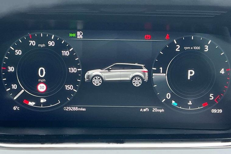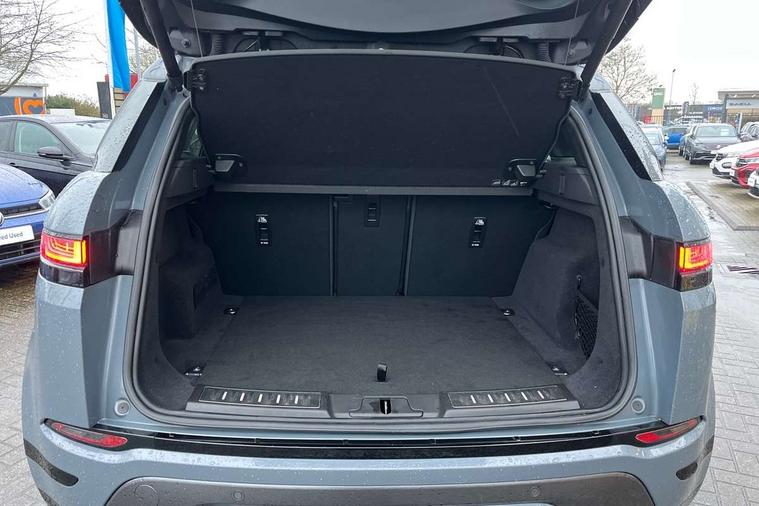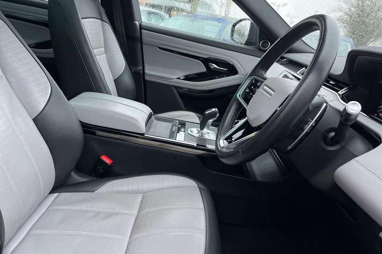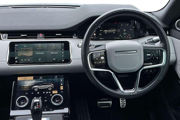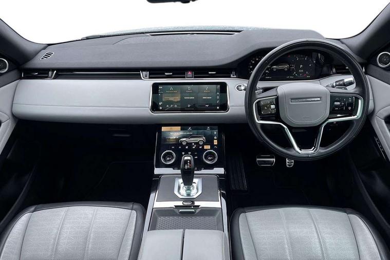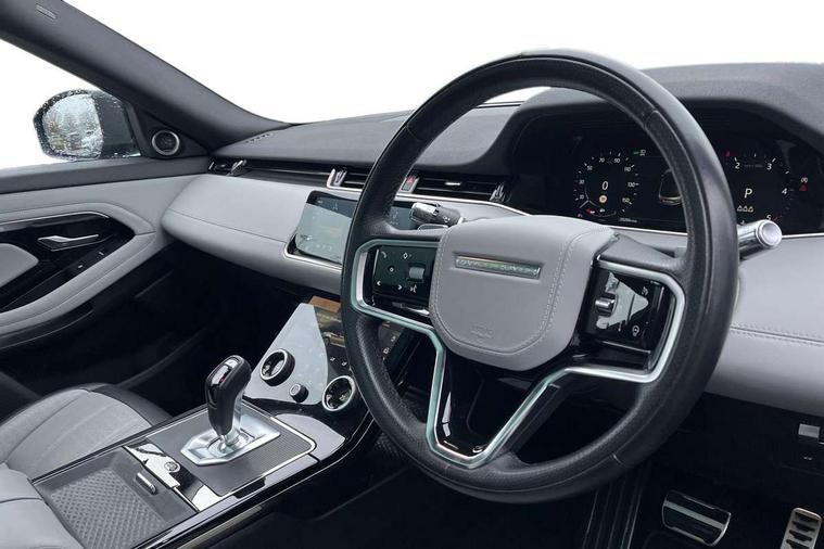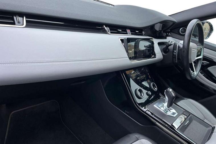 3D 360 degree surround camera, Adaptive cruise control, Android Auto, Apple car play, Blind spot assist, Bluetooth connectivity, Brake pad wear indicator warning light, Clear exit monitor, Driver condition monitor, Duo touch pro, Electronic power assisted steering (EPAS), InControl remote, Interactive Driver display instrument cluster, Land Rover InControl apps, Lane keep assist, Pivi pro connected includes upgraded infotainment, connected navigation pro, Nuance speech licence, Powered gesture tailgate/boot lid, Push button starter, Rear collision monitor, Rear traffic monitor, Traffic sign recognition with adaptive speed limiter, Voice control system, Wade Sensing, All terrain progress control, Efficient Driveline, Passive suspension, Terrain Response 2 Auto, Digital Audio Broadcast radio-DAB, Steering wheel mounted controls, Automatic headlight levelling, ClearSight interior rear view mirror, Electric windows with one touch open/close and anti trap, Evoque and R-Dynamic badge, Flush deployable exterior door handles, Heated rear window with timer, Heated washer jets, Heated windscreen, Power fold, auto-dimming, heated door mirrors with approach lights and auto dimming driver side, Rain sensing windscreen wipers, Rear fog lights, Shadow atlas bonnet and tailgate script, Tailgate spoiler, 40:20:40 split folding rear seats with centre headrest and armrest, Ambient interior lighting, Bright metal pedals, Isofix system on outer rear seats, Overhead lighting console, Overhead stowage for sunglasses, Passive front head restraints, R-Dynamic branding illuminated metal tread plates in loadspace and row 1 with brand name script and non illuminated metal in row 2, Rear air vents, Rear centre headrest, Satin chrome gearshift paddles, Sunvisors with illuminated vanity mirrors, Twin sliding front centre armrest, 3 rear 3 point seatbelts, Anti-lock braking system (ABS), Customer configurable autolock, DSC - Dynamic Stability Control, Electronic brake force distribution, Electronic parking brake, Electronic traction control, Emergency braking, Front and rear seatbelt reminder, Hill descent control, Hill launch assist, Low traction launch, Power operated child locks, Roll stability control, Six airbags - Driver and passenger airbags/driver knee airbag/front side airbag and curtain airbags, Torque vectoring brake, Tyre pressure monitoring system, Alarm, Immobiliser, Intrusion sensor, Keyless entry, Locking wheel nuts,