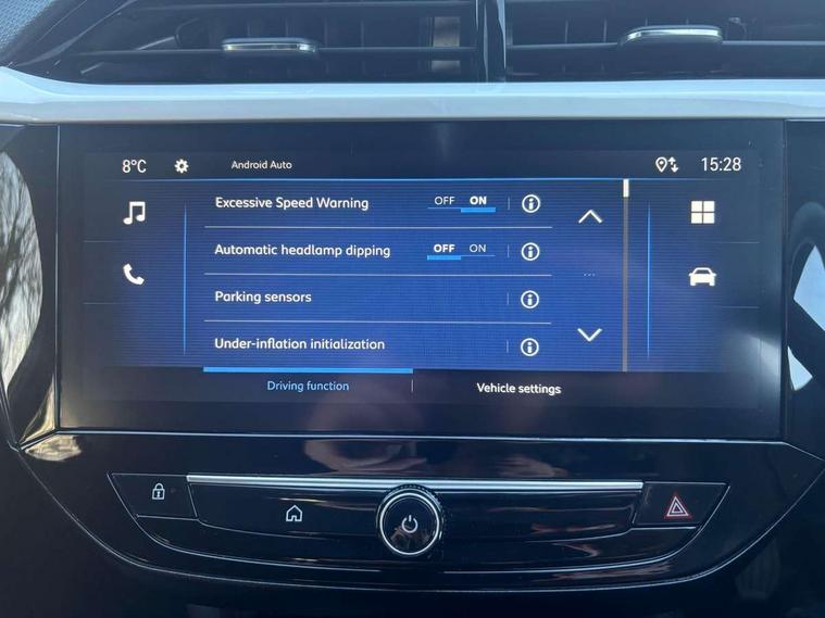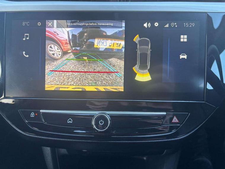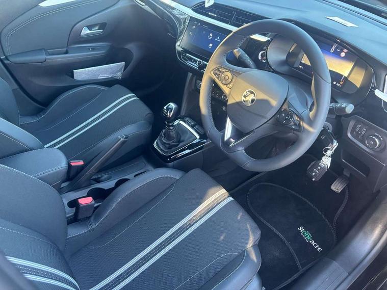 130 degree rear view camera, 7 inch digital instrument cluster display, Auto tele unit 3S vehicle communication system, Breakdown call (b-call), Central facia display with digital clock, outside air temperature and audio information, Cruise control with intelligent speed limiter, Driver drowsiness alert system, E-call, Engine oil life indicator, Front and rear parking sensors, Front camera system, Instrumentation - Speedometer, rev counter, low fuel gauge warning light + water temperature gauge warning light, Lane departure warning, Lane keep assist, Lights on audible warning, Multi function trip computer, Pre conditioning of vehicle temperature, RDS with traffic programme, Remote check of battery level programming and charge management, Service indicator, Side blind spot alert, Smartphone projection, Speed sensitive power steering, Speed sign recognition, Sport drive mode selector, Start/stop system, Vauxhall connect box, Vehicle status and information, Wireless Apple CarPlay/Android Auto, Electronic returnless fuel system, Petrol Particulate Filter, Under body shield for aero, AM/FM stereo radio, Bluetooth A2DP audio streaming function (Advanced audio distribuition profile), DAB Digital radio, Multimedia with 10-inch touchscreen, Six speakers, Steering wheel audio, phone and cruise controls, USB type C port, 3rd brake light, Automatic headlight control system, Black door mirror housings, Black Griffin logo and vizor frame, Black lower side window mouldings, Body colour door handles, Body colour front and rear bumpers, Bonnet/headlight/wiper structure, Corsa lettering in tailgate, Dark tinted rear side windows + tailgate window, Electrically adjustable and heated door mirrors, Electrically folding door mirrors, Electrically operated front and rear windows with safety auto reverse and one touch up/down facility, Electrochromic automatic anti-dazzle rear view mirror, Flexible roof mounted aerial, Glazed tailgate and heated rear window with wash/wipe facility, Hazard warning lights, Headlamps for left side traffic, High beam assist, High gloss black finish B pillar, High gloss black honeycomb lower grille with black badging, Intelli-LED headlights, LED daytime running lights, LED tail lamp, Rain sensitive windscreen wipers, Rear fog lamp, Rear reversing lights, Rear side wing doors, Rear wiper, Solar heat absorbing windscreen and windows, Sports front and rear body styling for upper and lower bumper design, Two speed windscreen wipers with variable intermittent wipe, Windscreen and side window demist vents, 12V power sockets, 3 bench rear seats in 2nd row, 3 spoke steering wheel, 4 speed fan with illuminated controls, 4 way manual co-driver seat reach fore/aft, backrest upright/recline, 6 way manual adjustable driver seat height up/down, reach fore/aft, backrest upright/recline, 60/40 split folding rear seat, Air conditioning with air recirculation facility, Banda cloth upholstery, Black headliner, Cabin particulate filter - removes dust, airborne particles and pollen, Driver/passenger sunvisors with vanity mirrors + covers, Four adjustable facia vents, Front centre armrest with storage, Front cupholder, Front headrests, Height adjustable head restraints, Illuminated glovebox with lid, Interior courtesy light, Internal chrome door handles, LED boot light, Polyurethane gear knob/lever, Reach and rake adjustable steering column, Rear cupholder, Rear headrests, Right hand drive (RHD), Single dome lamp with dual front reading lamps, Single front passenger seat, Sports style front seats, Standard floor mats, Two litre open door pockets, 3 rear 3 point seatbelts, Anti-lock braking system (ABS), Automatic emergency braking with pedestrian detection, Cornering brake control, Deactivation switch for front passenger's airbag, Drag torque control, Driver and front passenger airbags, front seat side impact airbags, full size curtain airbags, EBD - Electronic brakeforce distribution, Electrical child lock system in rear door latch, Electronic Stability Programme (ESP), Emergency brake assist, Forward collision alert, Front seatbelt unfastened audible warning and warning light, Front ventilated disc brakes - 381mm, Hill hold and start system, ISOFIX child seat mountings incorporating top tether anchor points located on second row rear seats, Manual handbrake, Rear drum brakes - 203mm, Seatbelt pretensioners, Single tone horn, Straight line stability control, Traction control, Tyre deflation detection system, 2 keys one folding with integral remote, Electronically protected audio equipment, Engine deadlock and immobiliser, Freewheeling door locks, Locking wheel nuts, Remote control central locking, Remote control security alarm system, Remote locking fuel filler flap, Steering column lock, Visible vehicle identification number, Silent black fascia with blanc banquise insert, 17" 5 Double spoke alloy wheels with spare wheel provision,