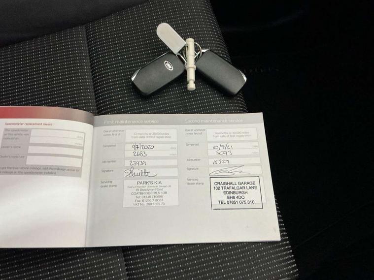 360 degree surround camera, 4.2" supervision colour cluster display, 8" touchscreen satellite navigation with European mapping and traffic messaging channel, Android auto with voice control, Apple car play with voice control, Blind spot collision warning, Bluetooth connectivity with voice control, Cruise control + speed limiter, Digital clock, Driver attention warning, Emergency stop signalling system, Forward collision avoidance assist, Front parking sensor, Kia connected services featuring TomTom live, Lane keep assist, Rear parking sensor, Speed limit information, Speed sensitive power steering, Trip computer, Windscreen washer level indicator, Intelligent Stop and Go, Bluetooth audio streaming, DAB Radio with MP3, JBL Premium sound system with 8 speakers, external amp, subwoofer and front centre speaker, Steering wheel mounted audio controls, USB/iPod/auxiliary input connections, All round electric windows with drivers auto up/down function, Auto dimming rear view mirror, Automatic defog system, Automatic headlights, Black wheel arch body mouldings and side sills with chrome insert, Body colour door handles with chrome inserts, Body colour door mirrors, Chrome front bumper insert, Chrome grille surround, Chrome window surround, Cornering light, Electrically adjustable/heated/folding door mirrors with LED indicators, Front fog lights, High beam assist, High gloss black diamond mesh radiator grille, LED Bi-Function headlights, LED daytime running lights, LED rear lights, Metallic paint, Privacy glass (rear side windows and rear screen), Rain sensing front wipers, Rear spoiler, Rear wiper, Roof rails, Shark fin antenna, Silver painted front and rear skid plates, Speed sensitive front wipers, Tinted glass, Trailer stability assist, Welcome and follow-me home light functionality, Wide view drivers door mirror, Windscreen wiper de-icer, 10 way driver/8 way passenger electrically power adjustable seats, 12V power in front and rear centre console, 3 x passenger assist grips, 60/40 split folding rear seat, Air filter, All-round height adjustable headrests, Centre cabin light, Centre console storage box, Cloth/leather upholstery, Door armrest in leather, Driver and front passenger side sunvisors with illuminated vanity mirrors, Drivers seat power lumbar support, Dual zone automatic air conditioning, Front and rear door storage, Front cabin LED map light with sunglasses case, Front door courtesy reflectors, Front seat and rear pockets, Front/rear centre armrests, Gear shift indicator, Glovebox illumination, Heated front and outer rear seats, Heated steering wheel, Illuminated glovebox, Interior door lock/unlock function, ISOFIX Child seat top tethers and anchor fixings, Leather steering wheel, Leather trimmed gearshift, Light grey headlining, Luggage area light, Luggage area load cover, Luggage net with hooks, Rear centre armrest with cupholder, Rear coat hooks, Rear headrests, Satin chrome interior door handles, Stainless Steel Scuff Plates, Tilt/telescopic adjustable steering wheel, Ventilation ducts to rear compartment, 3x3 point rear seatbelts, Active front headrests, All round 3-point seatbelts, Anti-lock braking system with electronic brakeforce distribution, Dual front side airbags, Electronic parking brake, Electronic stability control with downhill brake control, ESP + traction control, Front passenger airbag cut-off switch, Front seatbelt pretensioners + load limiters, Height adjustable front seatbelts, Hill start assist control (HAC), Impact sensing auto door unlocking, Rear door child safety locks, Twin curtain airbags with roll over sensor, Twin front airbags, Tyre pressure monitoring system, Advanced anti-theft system including immobiliser and alarm, Door deadlocks, Engine Start/Stop Button with Smart Entry System, Locking wheel nuts, Speed sensitive auto door locking, Visible vehicle identification number, High gloss black centre fascia, 17" Alloy wheels, Tyre mobility system,
