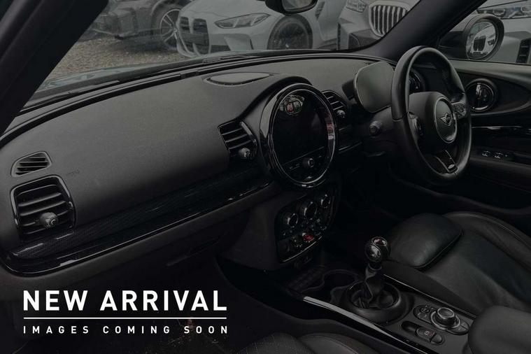 Active Guard incl speed limiting and lane departure functions with auto steering, and front collision warning with brake intervention, Automatic start/stop function with brake energy recuperation, Car sharing preparation, Compatible mobile phone bluetooth with audio streaming, Electro-mechanical speed dependant steering assistance, Instrument cluster, Mini E-call, MINI TeleServices, On board computer, Rear parking distance control, 6 Speed manual transmission including gear change indicator display, Double Vanos system, Fully variable valve control, High precision injection, Performance Control, 6 speakers, FM tuner and DAB digital radio, Body colour fuel filler cap, Door sill strips, Dynamic brake lights, Electric windows, Exhaust tailpipe, Heated rear window, Heated windscreen washer jets, John Cooper Works - aerodynamic kit (front and rear apron, spoiler), front and rear sport bumpers and part-painted side sills with door sill finishers, John Cooper Works rear spoiler, LED headlights with closed ring as daytime driving lights, LED rear light with union jack design, Left exhaust tailpipe with chrome finisher, Model logo on rear doors, Piano black exterior, Radiator grille, Rain sensor with auto headlights, Rear fog lights, Rear window wiper, Side scuttle panel with integrated indicator, Split rear doors, Sun/heat protection glass, White indicator lenses, 12V Accessory socket in centre console, 360L luggage compartment capacity, 4 lashing eyes in luggage compartment, 60/40 split folding rear seat, Anthracite headlining with grab handles and clothes hooks, Chrome interior highlights, Cupholders, English handbook, Floor mats, Glove compartment, Height and length steering column adjustment, Interior lighting with 12 basic colours selectable via toggle switch in roof, Isofix rear child seat preparation, John Cooper Works leather gearshift lever and handbrake gaiter, John Cooper Works sports seat with integrated headrest, adjustable thigh support and John Cooper Works logo, LED reading lights, vanity mirror lights, front foot well light and spotlight on front seats, Manual air conditioning, Multifunction steering wheel, Nappa leather steering wheel with JCW badge, Stainless steel pedals, Storage compartments in doors, Sunvisors with vanity mirrors, Toolkit, Excitement pack - Clubman, Extended interior lighting pack - Mini Clubman, Navigation pack - Clubman, 2 tone horn, 3 point seatbelts on all seats, 6 Airbags - front, side, head and seat belt tensioners, Anti-lock braking system (ABS), DSC - Dynamic Stability Control, Electronic handbrake, Front and rear disc brakes, Tyre pressure monitoring system, Alarm system with tilt sensor, monitoring doors, bonnet interior and tailgate, Auto drive away locking, Deadlocking function, Electronic vehicle immobiliser, Locking wheel bolts, Start/stop toggle with keyless go, Piano black interior trim,