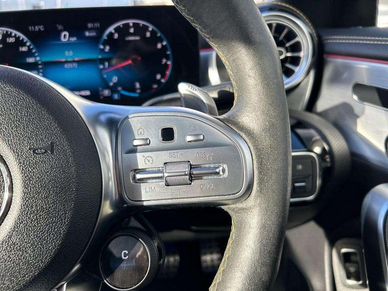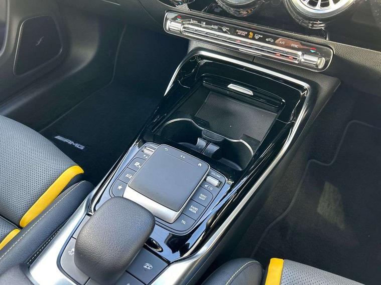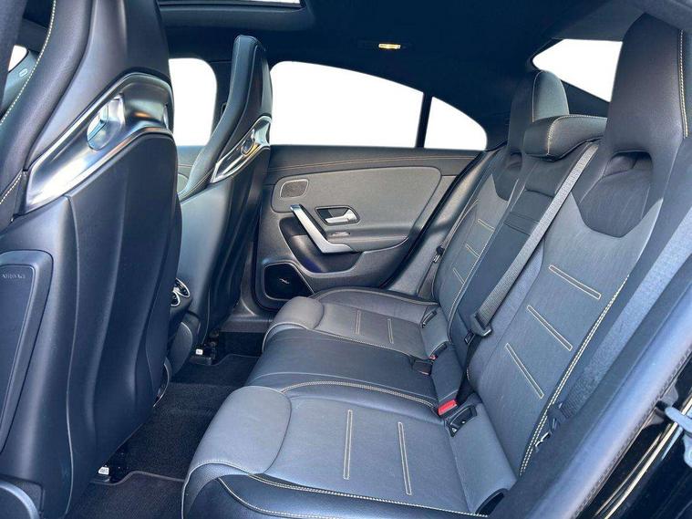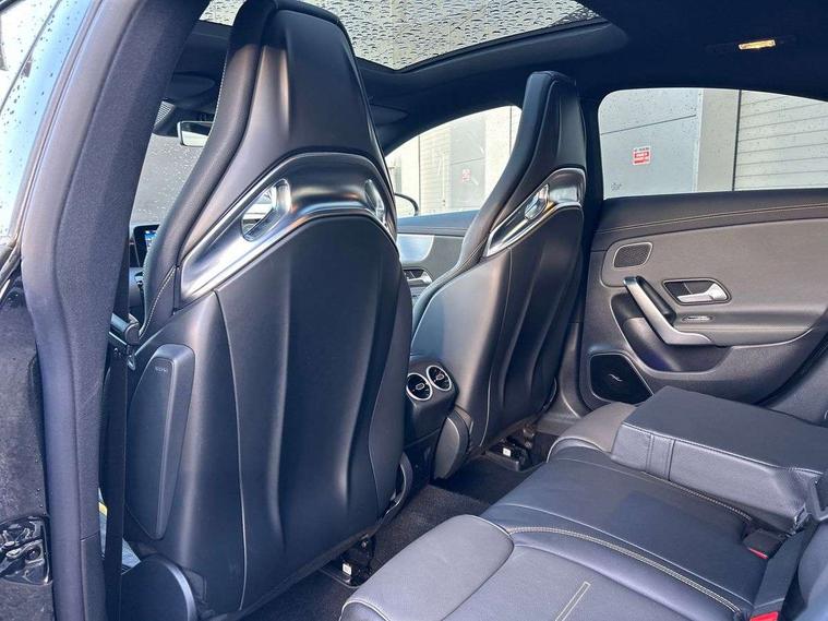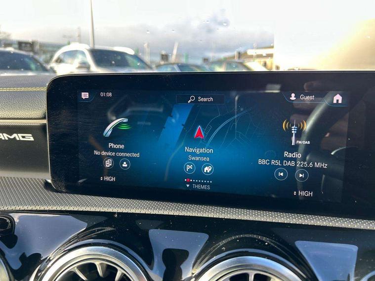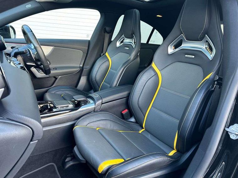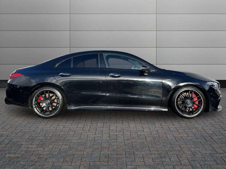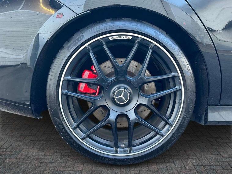 10.25 inch Instrument display with digital cockpit, 10.25 inch touchscreen media display with AMG specific, AMG start up logo, visualisation of the AMG drive programs, vehicle and engine data, AMG drive unit, AMG DYNAMIC SELECT with drive programs Slippery, Comfort, Sport, Sport+, Individual and RACE including Drift mode activated + RACE START function, AMG menu with sporty additional information - Gear indicator with yellow M symbol manual mode, Warm Up menu and Set Up menu, Attention assist - Monitors steering behaviour and long journey fatigue, Bluetooth connection, Car wash mode, ECO start/stop function, Fluid level warning indicator for fuel, oil, coolant and washer fluid, Hard-disk navigation, Hey Mercedes Voice activation, Lamp failure indicator, Mercedes me connect including emergency call system, accident recovery, breakdown management and maintenance, Mercedes me remote services, Outside temperature gauge, Owners manual and service booklet in English, Pre-installation of private car share, Preinstallation for Mercedes Benz link, Radio aerial integrated into front and rear windshields, Service indicator (ASSYST), Smartphone integration with Apple CarPlay and Android auto, Traffic sign assist, Trip computer in multifunction display with current consumption indicator, AMG performance 4MATIC+ with torque control distribution, Rear axle multi-link, Suspension with adaptive damping system, DAB digital radio tuner, MBUX multimedia system with DAB digital radio and touchpad including satellite navigation, Mid-range sound system, USB (type C) ports (2) in stowage compartment and 1 in front of centre console, Adaptive brake lights, AMG body styling specific front apron, AMG side sill panels, AMG rear apron, AMG roof spoiler lip, Specific S labelling boot lid + front apron CLA 45, AMG specific radiator grille in high gloss chrome with AMG lettering, AMG specific radiator grille with a wider lower contour and twelve vertical louvres, AMG spoiler lip in body colour, AMG wider side skirts, Auto headlights, Automatically controlled exhaust flap, Beltline strips in High gloss Black, Body colour bumpers, Body colour door handles, Chrome weather strip, Diffuser with two vertical twin fins, Electric windows, Electrically adjustable and heated door mirrors with integrated LED indicators, Exhaust system with AMG Real Performance Sound (Balanced or Powerful settings), Front apron with horizontal fins in the outer air inlets and stretched lower air inlet, Headlamp assist automatic headlamp activation, Heated glass rear windscreen + timer control, High level LED third brake light, Integrated LED daytime running lights, Interior mirror with black reading lamps and frameless, LED tail lamp, Multibeam LED headlamps with adaptive highbeam assist plus, Privacy glass with dark tinting on rear side windows and rear window, Rain sensing windscreen wipers with two sensitivity settings, Rear boot, Rear fog lamp, Rear side wing doors, Two round twin tailpipe trim elements each measuring 90 mm in diameter and AMG lettering plus ribbing on the inside of the pipe, Valve control dependent on drive program, Window line trim strip in high gloss black, 3 seat bench in 2nd row, 3 spoke flattened lower sporty design AMG Performance steering wheel with Nappa/DINAMICA microfiber, grip area, 12 clock mark +AMG letter silver chrome, 40:20:40 split folding rear seats with backrest, Air conditioning - Two zone thermotronic luxury automatic climate control with display, Air vents with surround in silver chrome, AMG brushed stainless steel sports pedals with rubber studs, AMG centre console decidedly sporty with raised front section, AMG centre console finished with trim in silver chrome, AMG Performance sportily shaped seats with power adjustable front seats, special seat cushions + AMG badge backrests, AMG Steering wheel touch control buttons, Automatic child seat recognition sensor, Black roof lining, Fixed head restraints, Floor mats with stitched AMG lettering, Front centre armrest with stowage, Heated front seats, Illuminated front door sills with changeable cover, Illuminated glove compartment stowage, Interior lighting - 64 colour Ambient lighting, Manually height and reach adjustable steering column, Rear armrest with two integral cup holders for drinks, Silver coloured aluminium gear shift paddles on steering wheel, Single front passenger seat, Stowage compartment in centre console with retractable cover, Sunvisors with illuminated vanity mirrors, Touchpad on center console, Twin front cupholders, Two outer rear seat isofix and top tether child seat fixing points, Aerodynamics pack - CLA, AMG driver's package - CLA, AMG Multi contour seat pack - CLA, AMG Night package - CLA 35/45, AMG performance seat pack (High End) - CLA 45 S 4Matic+ Plus, Keyless go pack - CLA, Light and sight pack - CLA, Mirror pack - CLA, Parking package - CLA, Seat comfort pack - CLA, Active bonnet pedestrain safety measure which detects an impact and raises bonnet by 65mm, Adaptive brake assist with hold function and hill start assist, AMG high performance brake system with red painted brake callipers and black AMG lettering at the front, ventilated and perforated brake discs, Anti-lock braking system (ABS), Black seat belts, Bonnet with power domes, Brake pad wear warning indicator, Childproof locks manually operated for rear doors and electrically operated for rear power windows, Crash responsive emergency lighting, Driver and front passenger head and sidebags, Driver and front passenger windowbags, Drivers knee airbag, Dual stage driver and front passenger airbags, Electric parking brake, Electronic stability programme with acceleration skid control, ESP curve dynamic assist with 3 stage ESP, Front and rear seatbelt reminder, Front passenger seat occupancy sensor, Three point rear seat belts, Tyre pressure monitoring system, Warning triangle and first aid kit, Remote central locking and crash sensor with emergency opening function, Urban guar