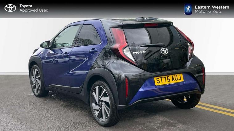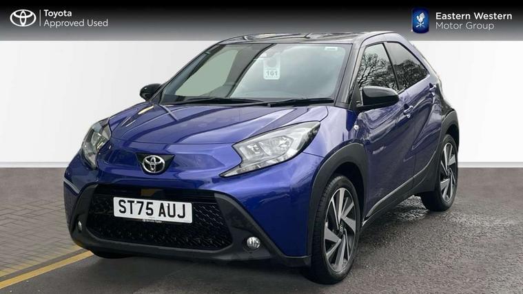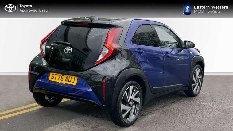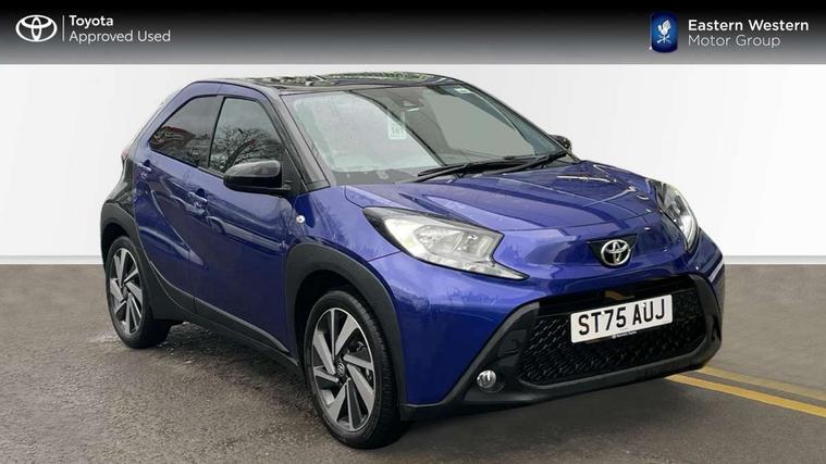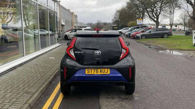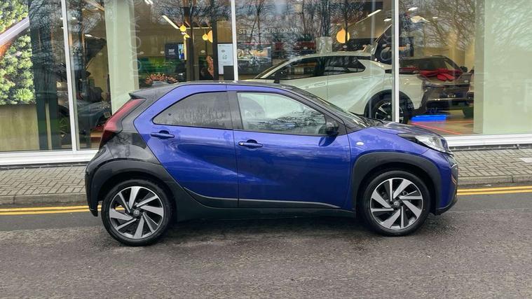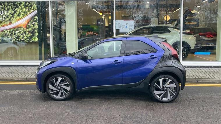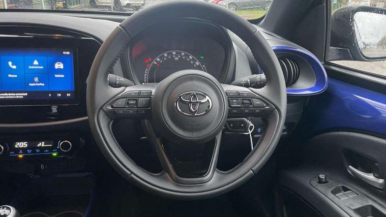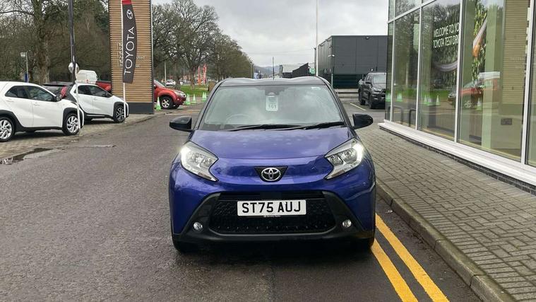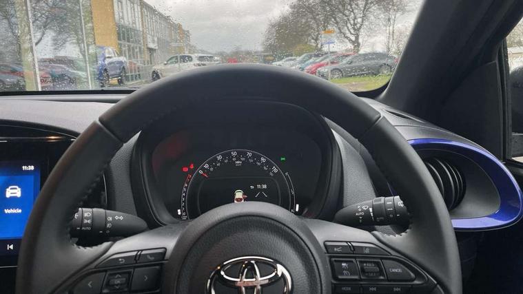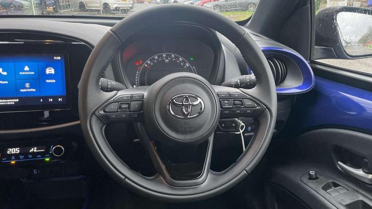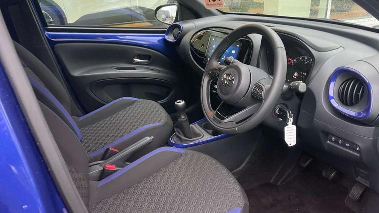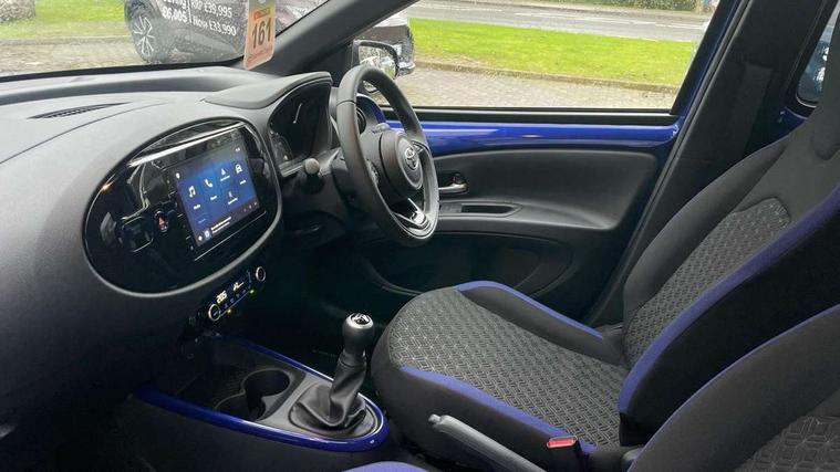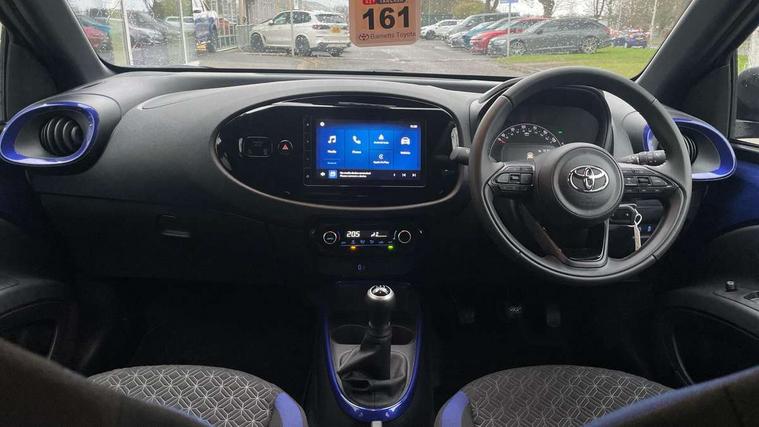4.2" TFT colour screen, Adjustable speed limiter, Analogue speedometer, Bluetooth connectivity, Digital tachograph, Driver attention alert system, eCall emergency call system, Electric power steering, Intersection turn assist, Key reminder warning, Noise reduction kit, Pre collision system with emergency steering assist, Reversing camera with static guide lines, Smart phone integration with Apple car play/Android Auto, Speed limit display, Start and stop, Vehicle Stability Control (VSC), 4 speakers, 9" HD multimedia display touch screen with Toyota smart connect, DAB digital audio broadcast, USB connector, Auto headlights, Auto wipers, Automatic headlights cut-off, Bicycle towing hook, Black contrast roof, Black side protection mouldings, Black wheel arch mouldings, Body colour door handles, Body coloured front bumper, Boot door scuff plate, Eclipse black rear bumper, Electric heated door mirrors, Follow me home headlights, Front fog lights, Front power windows, Gloss black door mirrors, Gloss black upper front grille, Headlight cut-off reminder, LED daytime running lights, LED front light guide, LED High mounted stop lamp, Manual day/night rear view mirror, Manual headlight levelling, Pagoda roof, Power adjustable door mirrors, Power back door, Privacy glass, Projector halogen headlights, Rain sensor, Rear combination lights LED bulb type, Rear side wing doors, Rear windscreen defogger, Rear windscreen wiper, Short antenna, Variable intermittent windscreen wipers, 12v power outlet - front, 2 seat bench in 2nd row, 3 spoke leather steering wheel, 50/50 split folding rear seat, Adhesive roof headlining, Adjustable speed limiter switch on steering wheel, Audio and telephone switches on steering wheel, Auto air conditioning, Black insert on steering wheel, Black roof lining, Boot light, Centre room light, Chrome interior door handles, Chrome surround on air conditioning buttons, Clean air filter, Console box storage in body color, Fabric upholstery, Floor mats, Front and rear cup holders, Front head rest deco art, Front head restraints, Height adjustable driver seat, Intelligent adaptive cruise control switch on steering wheel, ISOFIX child restraint system on rear seats, Lane departure alert switch on steering wheel, Leather gearshift knob, Manual tilt steering wheel, Manually reclining and sliding driver seat, Manually reclining and sliding front passenger seat, Multimedia switches on steering wheel, Pollen filter, Rear door pockets, Rear head restraints, Satin silver insert on gear shift knob, Single compartment glovebox with lights, Single front passenger seat, Soft tonneau cover, Sun visors with mirror on driver and passenger side, Voice recognition switch on steering wheel, Toyota safety sense pack - Aygo X, Anti lock braking system + Electronic brake force distribution, Child safety door lock, Emergency brake light signal (EBS), Hill start assist control (HAC), Passenger airbag on/off switch, Seat belt reminder for front and rear seats, Supplement restraints system (SRS) - 6 airbags, Traction control, Tyre pressure warning system, Immobiliser, Remote power door locks, Black wheel centre caps, Tyre repair kit,