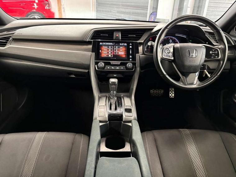 7" touch screen, Adaptive cruise control, Apple car play/Android Auto, Bluetooth hands free telephone connection, Colour driver's information system display, Easy fuel capless refuelling system, Electric power steering, Emergency stop signalling system, Forward collision warning, Front and rear parking sensors, Lane departure warning system, Lane keep assist, Rear parking camera, Red instrument illumination, Speed limiter, Traffic sign recognition, Vehicle stability assist, 'Shark fin' mobile antenna, 2x USB and HDMI, 8 Speakers, Auxiliary socket for external MP3 player, Connect with Garmin sat nav, touch screen, internet radio/MP3/CD, Aha app, internet, Digital Audio Broadcast (DAB) Tuner, Steering wheel mounted audio controls, Automatic coming/leaving home lighting function, Automatic headlights with dusk sensor, Automatic rain sensing wipers, Automatic retractable door mirrors, Black grille, Black window surrounds, Body colour door handles, Body colour door mirrors, Body coloured bumpers, Dual exhaust pipes, Electric adjustable heated door mirrors, Electric front/rear windows/one touch operation, Headlight washers, High beam assist, LED daytime running lights, LED fog lights, LED Headlights, Power foldback door mirrors, Privacy glass, Rear wiper, Remote control door mirrors, Remote window closing, Alloy pedals, Ambient lighting, Boot light, Cargo hooks, Centre console storage and sliding armrest, Cloth upholstery, Driver's electric lumbar adjustment, Driver's seat height adjustment, Dual climate control air conditioning system, Front accessory power socket, Front map lights, Front/rear courtesy lights, Glovebox light, Isofix system on outer rear seats, Leather gear knob, Leather steering wheel, Paddle shift controls, Passenger seat back pocket, Rear armrest with cupholder, Sunvisors with illuminated vanity mirrors, Three height adjustable rear head restraints, Tilt/telescopic adjustable steering wheel, Tonneau cover, 5 three point seatbelts, ABS+EBD+Brake assist, Anti-whiplash front headrests, Collision mitigation braking system, Deflation detection system, Dual front SRS airbags, Electronic parking brake with auto hold, Front and rear curtain airbags, Front seatbelt pretensioners, Front side airbags, Hill start assist, Passenger airbag deactivate switch, Tyre pressure warning, ECU immobiliser, Honda super locks, Remote central locking with 2 remote folding keys, Ultrasonic alarm, Tyre repair kit,