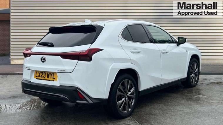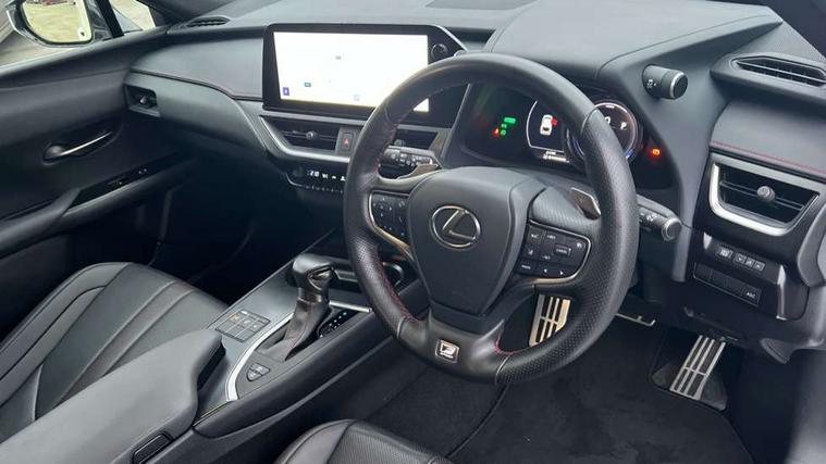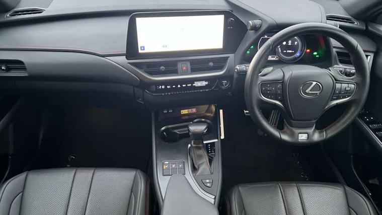 4 driving modes EV/Eco/Normal/Sport, 7" Lexus media display, 8" LFA inspired TFT meters with movable meter ring, Analogue clock with GPS function, Apple car play/Android Auto, Compatible mobile phone bluetooth with audio streaming, E-call, Electric power steering (EPS) with speed sensitive features, Front and rear parking sensor with intelligent clearance sonar, Lane change flasher function, Lexus link connected services, Lexus navigation system, Lexus safety systems + includes dynamic radar cruise control, pre collision system day and night, lane tracing assist, road sign assist, Push button start, Remote touch interface, Reversing camera with back guide lines, Trip computer, F Sport suspension tuning and rear performance dampers, Vehicle Dynamics Integrated Management (VDIM), Vehicle Stability Control (VSC), 2 front USB and 2 rear USB charging points, 6 speakers, AM/FM and DAB radio, AUX socket with VTR compatibility, CD player, Acoustic windscreen, Aero stabilising arch mouldings, Aero stabilising rear lights, Aero ventilated wheels, Aluminium roof rails, Auto dimming interior rear view mirror, Bi-LED (low and high beam) headlights with Auto High Beam (AHB), Black roof drip mouldings, Body adhesive, laser screw welding and laser brazed roof structure, Body coloured bumpers, Colour coded wheel arches, Electric adjustable/heated door mirrors, F SPORT exterior styling consists of black Mesh front grille, enhanced side rockers, metallic coated front bumper and F SPORT badging, Front and rear one touch power windows, with anti-jam protection, Headlight cleaners, LED cornering headlights, LED daytime running lights, LED front and rear fog lights, LED tail lights, LED third brake light, Privacy glass, rear doors and tailgate, Rain sensor windscreen wipers, Rear side wing doors, Rear wiper, Shark fin roof aerial, Single hidden exhaust pipe, Towing preparation, Variable front intermittent wipers, 12V accessory port centre console and luggage compartment, 2 cup holders in the front and rear centre console, 2 way electrical lumbar adjustment for driver, 2 x folding shopping bag hooks in boot, 2 x sun visors with vanity mirror and lamp, 3 seat bench in 2nd row, 4 x tie down hooks in the boot, 5 headrests, 60/40 split folding rear seat, 8 way driver/passenger electrically adjustable front seats, Active sound control, Card holder installed in driver and passengers sun visors, Centre armrest with storage, Driver and passenger door pocket, Dual zone electronic climate control + Nano-E humidity sensor, F Sport aluminium sports pedals, F SPORT dimpled leather gear lever, F SPORT front seat headrest adjustable forwards and backwards, F Sport interior styling, F Sport leather steering wheel with paddle shifts, Fabric/Tahara leather upholstery, Glovebox, Heated steering wheel, Illuminated entry system, LED interior illumination, Map pockets in the rear of passenger's front seat, Rear air vents with 2 USB chargers, Rear armrest with 2 cupholders, Single front passenger seat, Storage tray under audio panel, Textile carpet mats, Tilt/reach adjustable steering column, Under deck storage, Under desk side storage, 2 x Isofix child rear seat restraints, 3x3 point rear seatbelts, Anti-lock braking system (ABS), BAS (Brake Assist System), Driver and front passenger 2 stage airbag, Driver and front passenger knee airbag, Driver/front passenger side airbags, EBD - Electronic brakeforce distribution, ECB (Electronically Controlled Brake System), Electric child locks, Electric parking brake, Front adjustable seatbelt anchor points, Front and rear curtain shield airbags, Front outer seatbelt+pre-tensioners, force limiter+tension reduction: 3-point with active safety link to PCS, Hill start assist control (HAC), Passenger airbag cut-off device, Rear outer seatbelt+pre-tensioners, force limiter+tension reduction: 3-point with active safety link to PCS, Centre belt w/o pre tensioner+force limiter, Secondary Collision Brake (SCB), TRC (Traction Control), Tyre pressure warning, 2 x remote key fobs, Anti theft system : Alarm instruction sensor, glass breakage sensor and engine immobiliser, Locking wheel nuts, Remote central door locking, Speed sensitive auto door locking, Two motion door lock with double lock, VIN Window etching, 18" F Sport alloy wheels with run flat tyres,