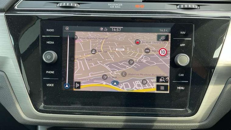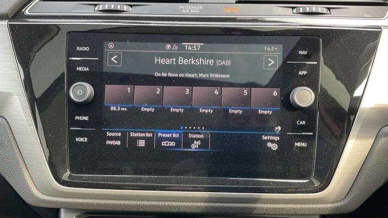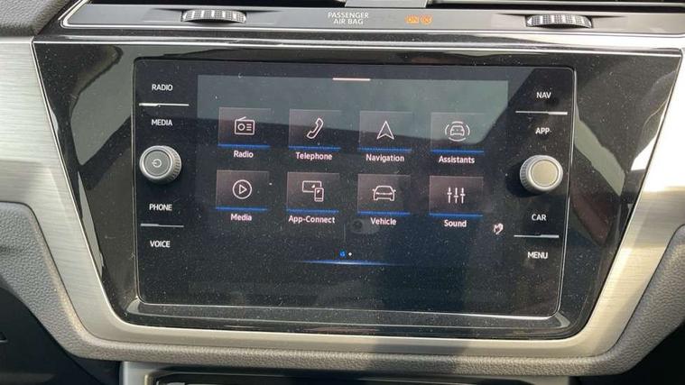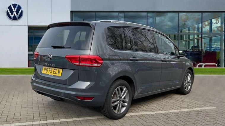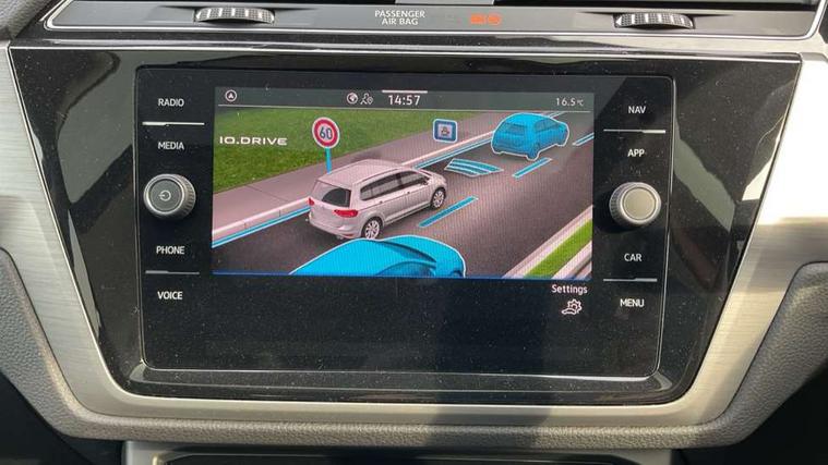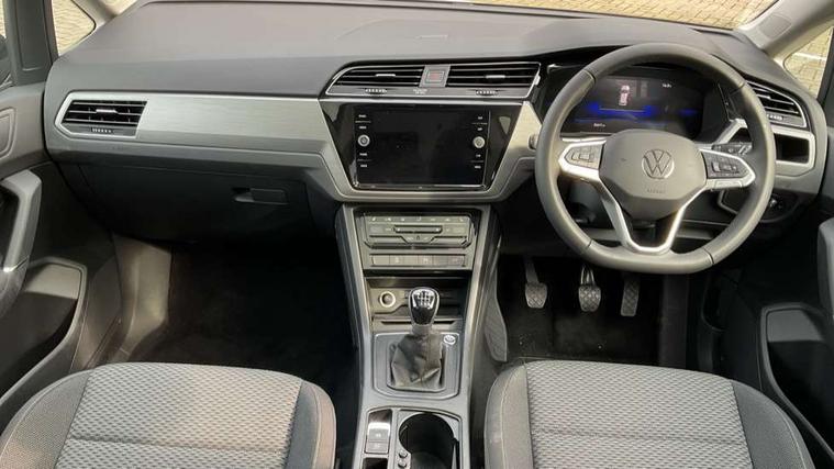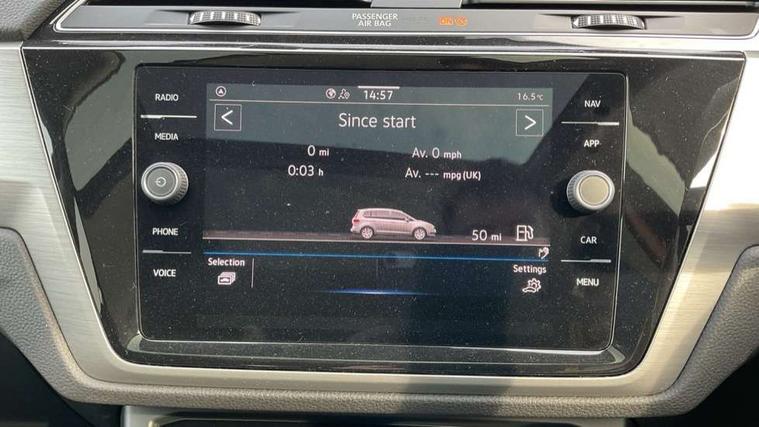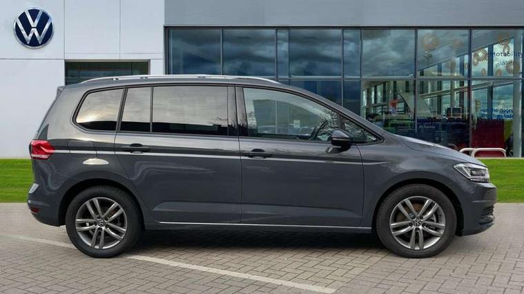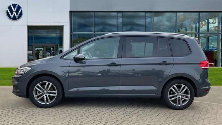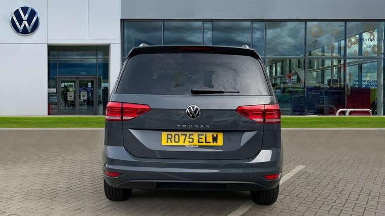 Adaptive cruise control, Audible lights on warning, Discover media navigation touchscreen navigation/radio system with streaming and internet, Driver alert system, Driver profile selection, Dynamic road sign display, Electric tailgate, Electronic odometer, Emergency services call system, Extended, crash-active and proactive Pedestrian and cyclist monitoring, External temperature gauge, Front parking sensors, Lane change system side assist and rear traffic alert, Lane keep assist, Misfuelling protection device, Mobile pairing with SMS function, Mobile phone interface with inductive charging, Rear view camera displayed via vehicles audio system display, Rev counter with fuel gauge, Side scan, Speed limiter, Speed sensitive power steering, Stop/start system, Think blue trainer driver tips and journey analysis, Trip and service interval display, We connect' and 'We connect plus' functionality, Petrol Particulate Filter, Rear stabiliser bar, XDS electronic differential lock, 4x20 watt output, 8 Speakers, Audio Connectivity System, DAB Digital radio, External USB-C data socket with increased charging performance - 2 USB sockets 45W, MP3/WMA compatability, SD card slot, Title and cover art display, USB connection, Aerial integrated into side window, Auto dimming door mirrors, on driver side, surround lighting and front passenger side mirror lowering function, Auto dimming rear view mirror, Automatic coming/leaving home lighting function, Body colour bumpers, Body colour door handles, Body colour door mirrors with integral indicators, Door mirrors with memory function, Dusk sensor + auto driving lights, Electric folding door mirrors, Electric heated + adjustable door mirrors, Electric, glass sliding/tilting panoramic sunroof including integrated roller blind and LED lighting around aperture, Front and rear electric windows, Fully galvanised body, Gloss black finish B pillar, Green tinted heat insulating glass, High level third brake light, Rain sensor, Rear fog lights, Rear side wing doors, Rear tinted glass from B-pillar backwards approx 65% tinted, Rear wash/wipe with intermittent wipe setting, Removable engine badge, Silver roof rails, Tailgate wiper- reverse gear activation, Twin chrome exhaust tailpipes, Volkswagen roundel, Windscreen wipers intermittent wipe, 12V power point for Row 2, 12V socket in luggage compartment, 2 individual fold flat 3rd row seats, 2 three point seatbelts in 3rd row, 2nd row centre armrest, 2nd row centre seat converts into table, 3 single slide/fold/removable 2nd row seats, 3 spoke steering wheel, 3x3 point seatbelts on 2nd row with height adjust on outer seats, 4 boot load lashing points, 4 way adjustable front head restraints, 5 headrests, Activated charcoal canister for intensified evaporation system, Air care climatronic 3 zone air conditioning system with rear air conditioning control panel, Chrome plated radiator grille inserts, air vent surrounds and light switch surrounds, Driver and front passenger under seat drawer, Dust/pollen filters, Foldable front passenger seat backrest with load through function, Front and rear reading lights X 2, Front centre armrest with storage compartment, Front comfort seats with lumbar support, Front cupholders x 2, Front passenger seat height adjust, Front seat storage pockets, Front seatback folding tables, Height adjustable driver's seat, Height/reach adjust steering wheel, Illuminated glovebox, Instrument lighting white adjustable panel illumination with red night time illumination, Interior light with delay, Isofix on 2nd row outer seats, Isofix on 3rd row seats, Large storage compartment in roof console, Lasano cloth upholstery, Leather multifunction steering wheel with gear knob, Leatherette on rear of front seats, Low tunnel 2nd row seat, Luggage compartment lighting, Media box in dashboard on passenger side, Multi storage in passenger/luggage areas, Multi-function centre console with storage facilities, Retractable luggage cover, Split folding rear seat backrests, Storage bins on all doors, Sun visors with illuminated vanity mirrors, Family Pack - Touran, Winter pack without heated washer jet - Touran, 3 point height adjustable front seatbelts, Auto hold function, Automatic post collision braking system, Door open warning reflectors, Driver/Front Passenger airbags, Drivers knee airbag, EDL + ASR, Electronic parking brake, Energy recovery system, ESC with ABS, First aid kit, Front and rear (row 2) curtain airbags, Front assist with autonomous emergency braking, Front seat side impact airbags, Front seatbelt pretensioners, Front/rear disc brakes, Hill hold control, Hydraulic Brake Assist (HBA), Loose wheel warning function, Manual passenger airbag deactivation function, Pre crash preventive occupant protection, Proactive passenger protection system with front and side assist, Rear child proof door locks, Road sign recognition, Seatbelt warning lamp and buzzer, Traction control, Two tone horn, Warning triangle, Alarm with remote central locking and interior protection, Electronic engine immobiliser, Keyless Access Keyless locking and starting system with SAFELOCK, New brushed design decorative inserts in dash and front doors, 17" Salvador alloy wheels with anti-theft wheel bolts, 215/55 R17 self sealing tyres with low rolling resistance,