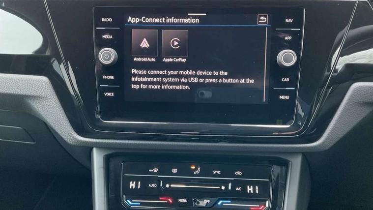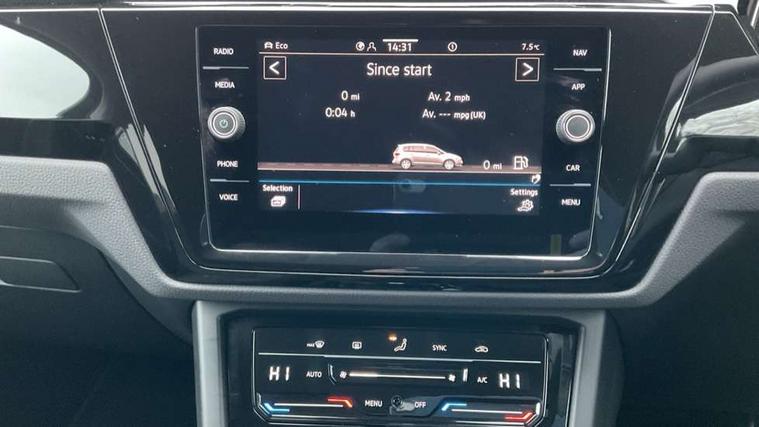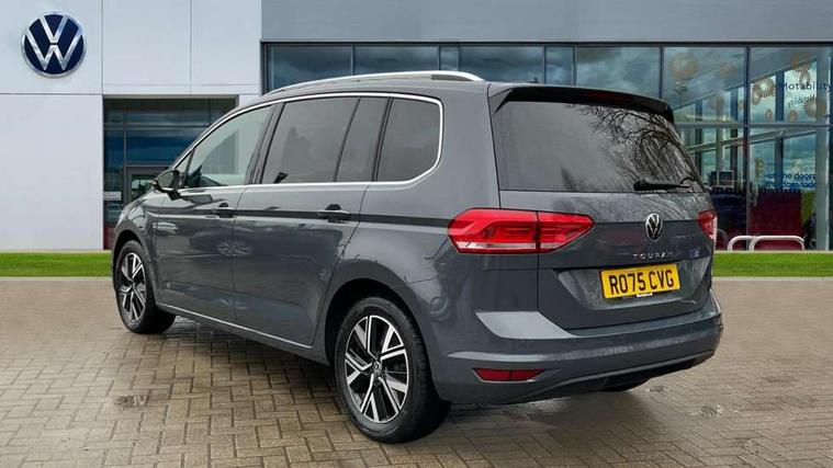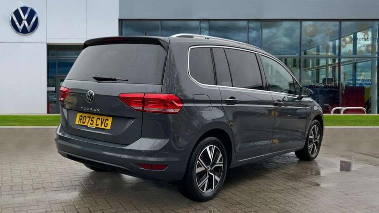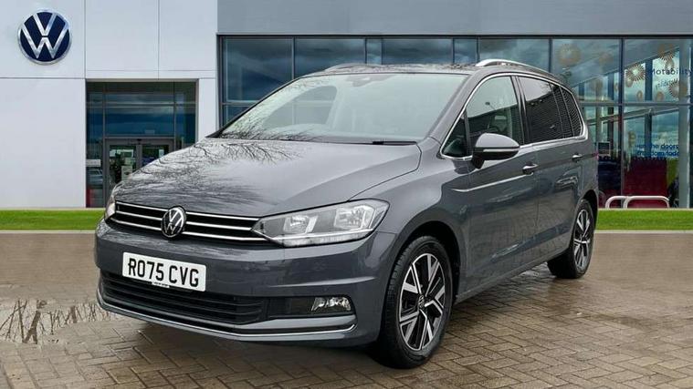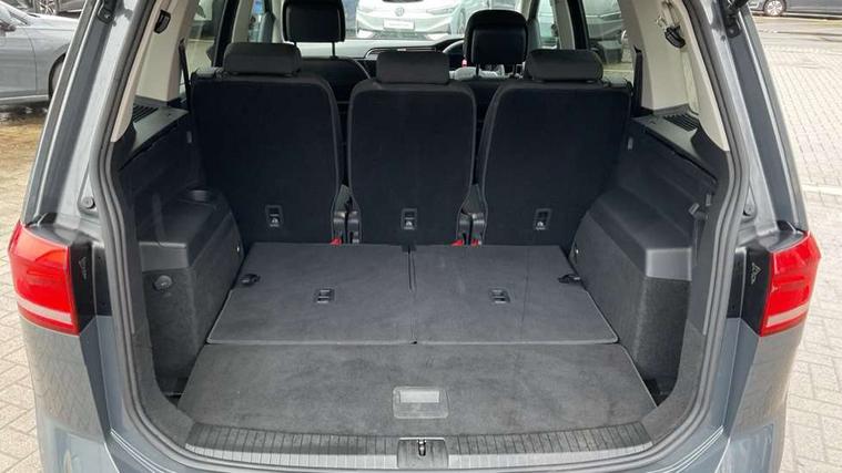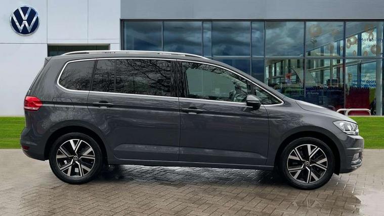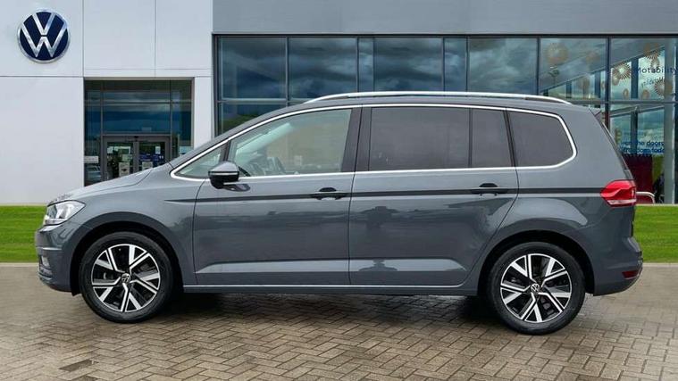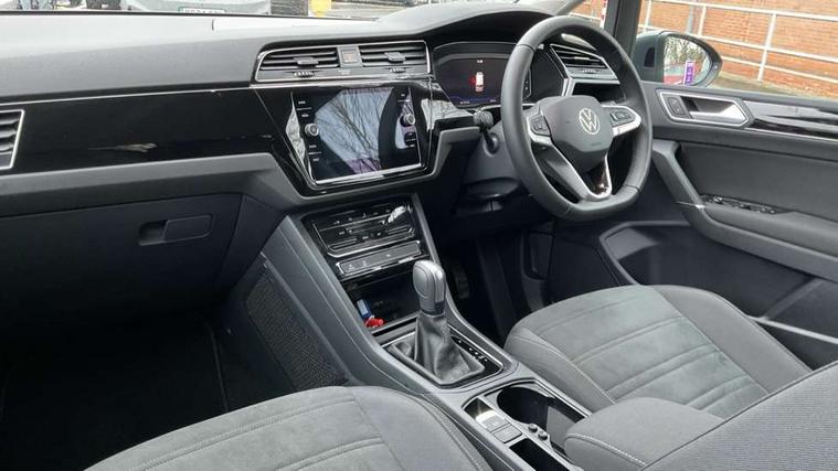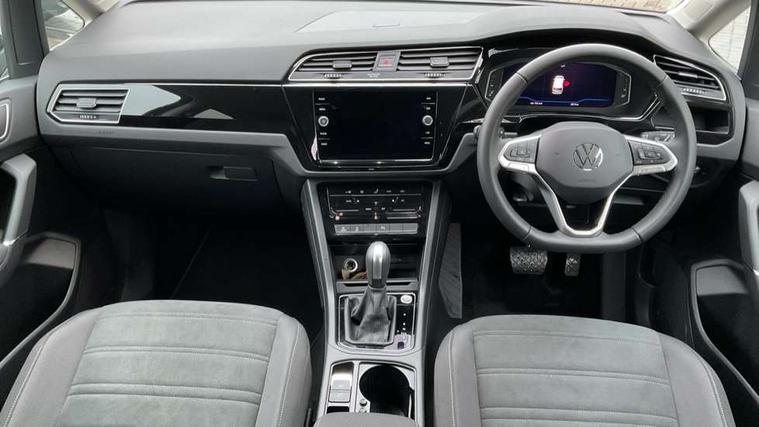 Active info display - Digital cockpit 10.25" HD display screen, Adaptive cruise control, Audible lights on warning, Discover media navigation touchscreen navigation/radio system with streaming and internet, Driver alert system, Driver electronic voice amplification function, Driver profile selection, Dynamic road sign display, Electronic odometer, Emergency services call system, Extended, crash-active and proactive Pedestrian and cyclist monitoring, External temperature gauge, Front parking sensors, Lane change system side assist and rear traffic alert, Lane keep assist, Mobile pairing with SMS function, Mobile phone interface with inductive charging, Rev counter with fuel gauge, Speed limiter, Speed sensitive power steering, Stop/start system, Think blue trainer driver tips and journey analysis, Trip and service interval display, Wireless app connect without mirror link, Petrol Particulate Filter, XDS electronic differential lock, 4x20 watt output, 8 Speakers, Audio Connectivity System, DAB Digital radio, External USB-C data socket with increased charging performance - 2 USB sockets 45W, MP3/WMA compatability, SD card slot, Title and cover art display, USB connection, Aerial integrated into side window, Auto dimming door mirrors, on driver side, surround lighting and front passenger side mirror lowering function, Auto dimming rear view mirror, Automatic coming/leaving home lighting function, Body colour bumpers, Body colour door handles, Body colour door mirrors with integral indicators, Chrome fog light surround, Chrome lower front bumper insert, Chrome trimmed front air intake surrounds, Chrome trimmed radiator grille louvre inserts, Chrome trimmed side windows, Dusk sensor + auto driving lights, Front and rear electric windows, Front fog lights with static cornering function, Fully galvanised body, Gloss black finish B pillar, Green tinted heat insulating glass, High level third brake light, Rain sensor, Rear side wing doors, Rear tinted glass from B-pillar backwards approx 65% tinted, Rear wash/wipe with intermittent wipe setting, Silver roof rails, Tailgate wiper- reverse gear activation, Twin chrome exhaust tailpipes, Volkswagen roundel, Windscreen wipers intermittent wipe, 12V power point for Row 2, 12V socket in luggage compartment, 2 individual fold flat 3rd row seats, 2 three point seatbelts in 3rd row, 2nd row centre armrest, 2nd row centre seat converts into table, 3 single slide/fold/removable 2nd row seats, 3 spoke steering wheel, 3 Zone electronic climate control with automatic air recirculation, 3x3 point seatbelts on 2nd row with height adjust on outer seats, 4 boot load lashing points, 4 way adjustable front head restraints, 5 headrests, Ambient lighting in door trim and foot well, Art velour/Microfibre cloth upholstery, Driver and front passenger under seat drawer, Dust/pollen filters, Foldable front passenger seat backrest, Front + rear carpet mats, Front and rear reading lights, Front centre armrest with storage compartment, Front comfort seats with lumbar support, Front cupholders x 2, Front passenger seat height adjust, Front seat storage pockets, Front seatback folding tables, Height adjustable driver's seat, Height/reach adjust steering wheel, Illuminated glovebox, Illuminated vanity mirrors, Instrument lighting white adjustable panel illumination with red night time illumination, Interior light with delay, Isofix on 2nd row outer seats, Isofix on 3rd row seats, Large storage compartment in roof console, Leatherette on rear of front seats, Low tunnel 2nd row seat, Luggage compartment lighting, Media box in dashboard on passenger side, Multi storage in passenger/luggage areas, Multi-function centre console with storage facilities, Multifunction leather trimmed steering wheel including leather trimmed gear knob with 3.5" screen with multifunction computer, Retractable luggage cover, Split folding rear seat backrests, Storage bins on all doors, Mirror pack - Touran, 3 point height adjustable front seatbelts, Auto hold function, Automatic post collision braking system, Door open warning reflectors, Driver/Front Passenger airbags, Drivers knee airbag, EDL + ASR, Electrically operated child locks on rear doors, Electronic parking brake, Energy recovery system, ESC with ABS, First aid kit, Front and rear (row 2) curtain airbags, Front assist including city emergency braking, Front seat side impact airbags, Front seatbelt pretensioners, Front/rear disc brakes, Hill hold control, Hydraulic Brake Assist (HBA), Loose wheel warning function, Manual passenger airbag deactivation function, Pre crash preventive occupant protection, Proactive passenger protection system with front and side assist, Rear child proof door locks, Seatbelt warning lamp and buzzer, Traction control, Two tone horn, Warning triangle, Alarm with remote central locking and interior protection, Electronic engine immobiliser, Chrome plated instrument surrounds, Piano black decorative inserts, 17" Alexandria alloy wheels with self sealing tyres and anti-theft wheel bolts,