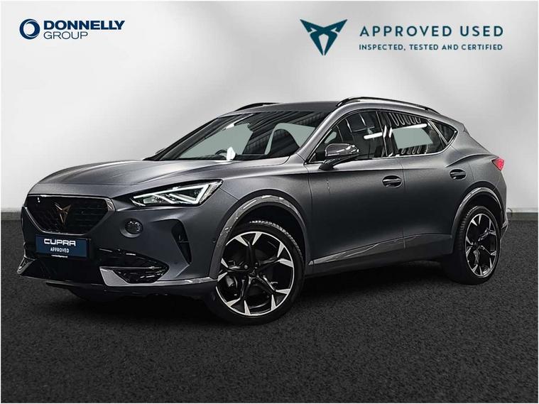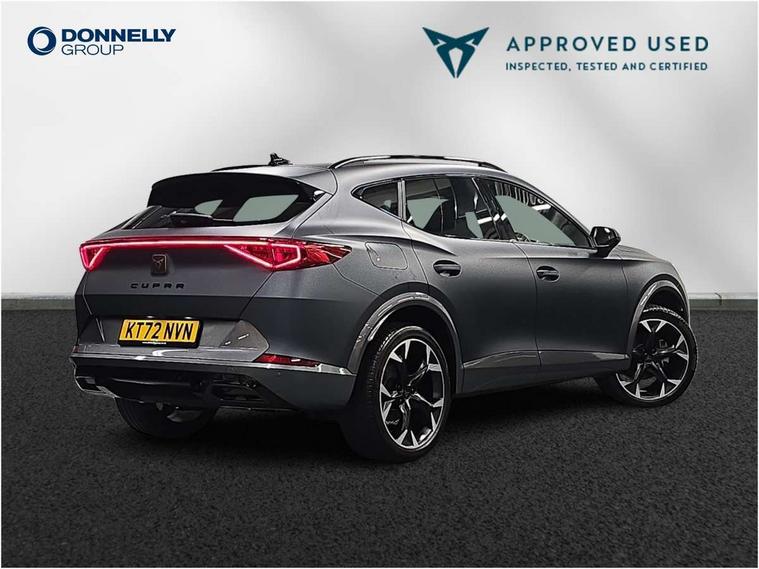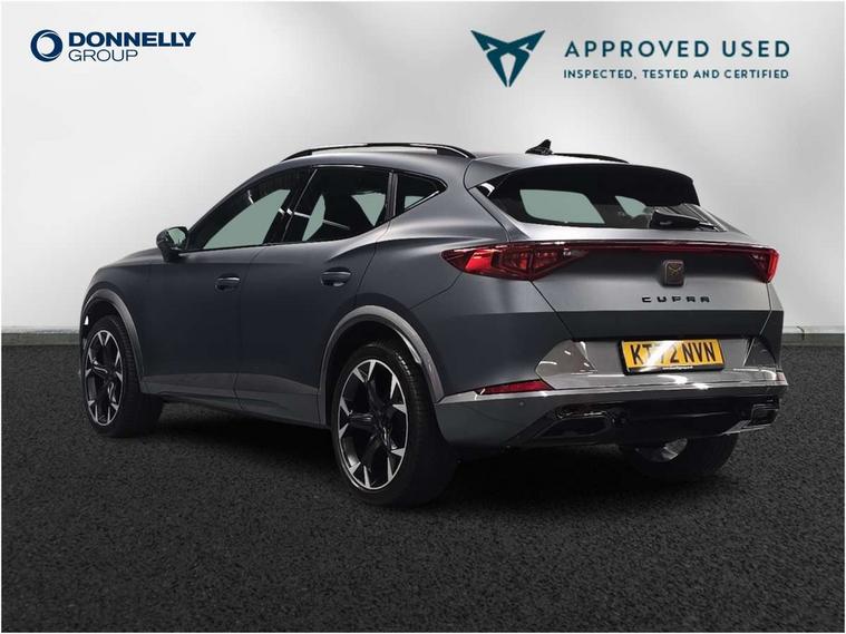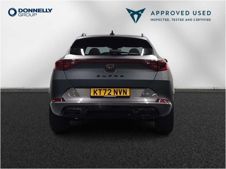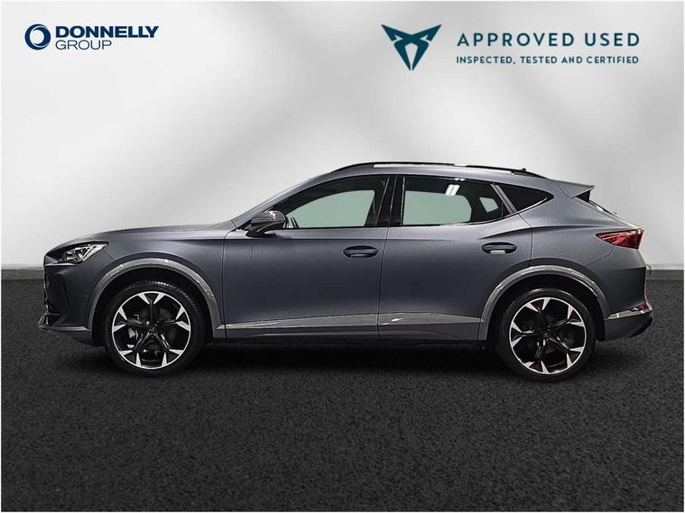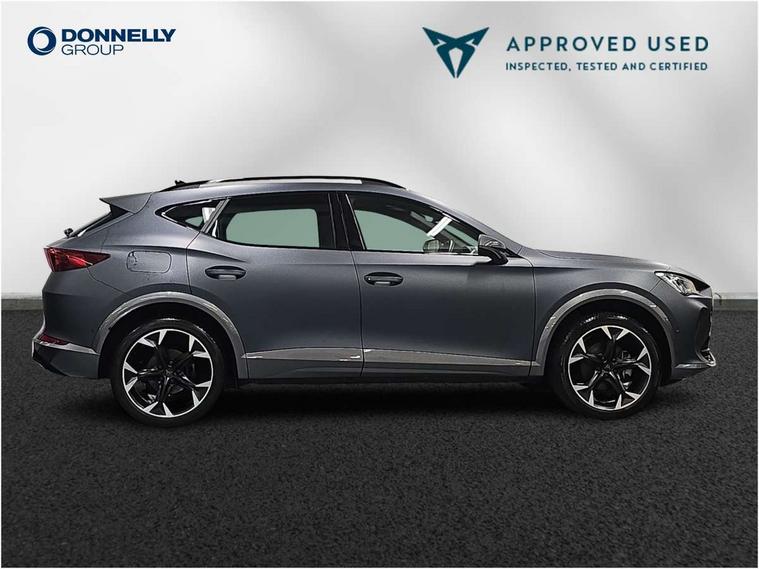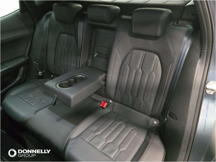 Digital cockpit and configurable dashboard, Driver alert system, Driving profile selection, Forward collision warning with automatic braking, Lane assist, Navigation system with 12'' Touchscreen Display, Park assist (inc front/rear parking sensors), PAS, Predictive adaptive cruise control with speed limiter, Rear view camera, RPM, trip computer, outside temp gauge, instrument light brightness, low fuel warning light, lights on reminder, gearshift indicator, Service interval indicator, Start/stop system with regenerative braking, Voice control system, Wireless apple carplay, Wireless phone charger, Electronic locking differential and dynamic traction support, Standard suspension, 2 front and 2 rear USB type C sockets, Auxiliary input socket, DAB radio, Auto dimming rear view mirror, Body colour door handles, Body coloured bumpers, Dark grey wing mirror, Daytime running light with automatic headlight control and coming home feature, Dynamic headlight range control, Electric front/rear windows, Electrically adjustable heated and folding door mirrors with memory function, Front fog lamps with cornering function, Gloss black roof rails and window surrounds, LED Headlights, LED Taillights with dynamic indicator, Rain sensing wipers, Rear diffuser with black simulated exhaust pipes, Rear side wing doors, Rear wash/wipe, Third brake light, Tinted rear windows, Welcome lights, 12v power supply in centre console, 12V socket, 12v socket in loadspace, 2 front and 2 rear reading lights, 230V socket, 3 seat bench in 2nd row, 60/40 split rear bench seat with armrest and mechanical seat release, Black headlining, Dust/pollen filter, Front and rear head restraints, Front centre armrest, Height/reach adjust steering wheel, Illuminated interior front door sills, Illuminated sunvisor with mirror, Isofix, Leather multi function heated steering wheel with gear shift paddles, Luggage tie-down hooks, Single front passenger seat, Three zone climate control with control panel in rear, Variable luggage/load compartment floor, Wraparound lighting, Genuine Nappa leather Pack - Cupra, 3 point seatbelts on all rear seats, ABS, Brake control system - ESC and brake booster, Child proof door locks, Driver and front passenger airbags with front passenger airbag de-activation, Electronic parking brake, Front and rear disc brakes, Front side curtain airbags, Hill hold control, Public e-call, Seat belt reminder for front and rear seats, Tyre pressure monitoring system, Anti theft alarm system, Keyless entry and start system (KESSY), Locking wheel bolts, Copper and aluminium interior detailing, 19" 'Exclusive' machined sport matte black and silver alloy wheels,
