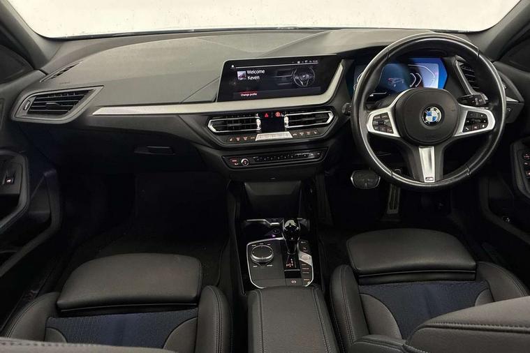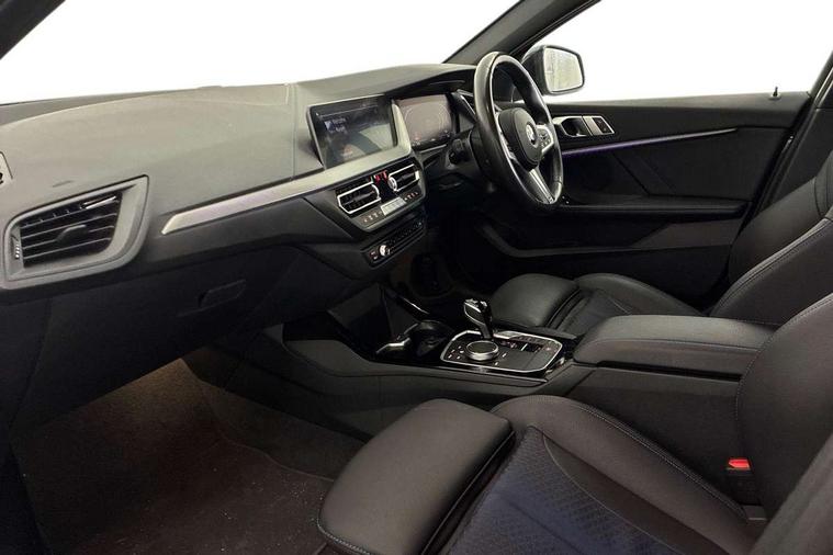 Active guard plus, Attentiveness assist, Bluetooth / WiFi interface for wireless connection of mobile terminal devices and audio streaming, BMW ConnectedDrive online services, BMW Teleservices, Check Control warning system for monitoring of lights and door/luggage compartment open warning, Cruise control with brake assist, Eco pro mode, Front axle single joint with specific axle kinematics to minimise drive influences on steering + provide increased rigidity agile driving behaviour, Integrated owners handbook, Lane departure warning system, Oil sensor for level and grade, On board computer, Optimum shift indicator, Personal Profile, Pull away assistant, Rigidly mounted rear subframe - Multi link construction with separate spring / damper configuration and excellent driving characteristics, Speed limit Info including no-overtaking indicator, Speed limiter, Aluminium lightweight construction, Anti roll bar front and rear, Balancer shaft, Double VANOS twin scroll turbocharging system, Drive Performance Control, Electronic differential lock, High precision injection, M sport suspension, Petrol Particulate Filter, Twin tube gas filled shock absorbers with degressive characteristic curve, VALVETRONIC engine management, DAB Digital radio, Auto dimming rear view mirror, Automatic headlight beam throw control, Automatic windscreen wipers and automatic headlight, Body colour door handles, Body colour mirror caps, Body colour roof trims, Chrome 'M' logo side designation, Chrome exhaust twin tailpipes round 90mm in left, Chrome kidney grille frame with Satin Aluminium struts, Direction indicator side lights in exterior mirrors, Fading support, Folding side mirrors with auto dimming/folding wing mirrors with auto dimming, Follow me home headlights, Front and rear bumper system with replaceable deformation elements, Front and rear electric windows with open and close fingertip control, anti trap facility and comfort closing, Front door sill finishers in black plastic with M designation in metallic look, Green tinted heat protection glazing, Heated, electrically adjustable exterior mirror aspheric on driver side, convex on passenger side, High gloss shadowline window frame, Recess cover mirror frames and B/C pillar embelisher trim, High level third brake light, Integrated front windscreen with washer jets, LED daytime running lights, LED eyebrow turn indicators, LED front fog lights, Lightweight engineering, Matt black air guide grilles, Matt black wheel arch trim, Model designation on electric bootlid, Nearside reverse light in rear light cluster, Preparation for high beam assistant, Rear fog lights, Rear side wing doors, Rear window wiper, Shark fin antenna, Trailer stabilisation logic, Visible VIN plate, Welcome lighting, 12V power socket in front centre console with blanking plug, 3 rear seat head restraints, 3 seat bench in 2nd row, 3 spoke sports leather steering wheel with black leather and stitching, pearl chrome decorative finish, specific M Badge, Ambient interior lighting, Anthracite headlining, Child seat ISOFIX attachment for two outer rear seats and front passenger seat with anchorage points, Conditioned based service, Driver and front passenger seat heating, Floor mats in anthracite velour with contrasting colour seam to match contrast stitching on instrument panel, Folding rear clothes hook, Four grab handles integrated in roof lining, Front and rear door pockets with bottle holders, Front and rear side armrest integrated into door trim, Front armrest, Front sports seats, Glove compartment, Height adjustable front head restraints, Luggage compartment for bag hooks on left and right, foldable luggage compartment liner and two lashing eyelets, Manual adjust steering wheel, Multi-function controls for steering wheel, Single front passenger seat, Storage compartment in centre console, Sun visors with vanity mirrors and insert tab, Two front centre console cupholders, Two zone automatic air conditioning, Additional interior lighting pack - 1 Series, Additional storage compartment pack with code 493 -1 series, BMW live cockpit professional pack- 1 Series, Connected pack professional - 1 Series, Interior lights pack - 1 Series, M Sport exterior styling aerodynamics pack - 1 Series, 2 tone horn, 3 point seatbelts on all seats, front pyrotechnic belt tensioners, stopper and belt force limiters, rear coded belt buckles, Airbags - Front driver/passenger, front and rear curtain head protection, front side, manual deactivation of front passenger airbag, Anti lock braking system (ABS) with brake assist, BMW emergency call, Brake drying, Braking readiness, Child proof locking system in rear door, City braking function, Comfort modes, Cornering brake control, Crash sensor activating central locking release, hazard warning lights, fuel cut off, interior lighting + activation of safety battery terminal clamp, Driver and front passenger seat belt security check, Dynamic stability control + (DSC+), Dynamic Traction Control - DTC, Electrically operated hand brake including automatic hold function, Front and rear disc brakes, Seatbelt warning, Side impact protection, Tyre pressure monitoring system, Warning triangle and first aid kit, Central locking switch for all doors, fuel filler cap and luggage compartment, Deadlocking function system to all doors, Drive away locking system on all doors and luggage compartment with de-activated in iDrive settings, Locking wheel bolts, Remote control with integrated key with High-gloss Black inlay and M designation and 1 button for open/ close lock, window, open luggage compartment, Start/stop button illuminated in centre console with keyless engine start and auto start stop deactivation button, Thatcham Cat.1 alarm and immobiliser, Wheel slip limitation close to the actuator (ARB), Contrast stitching on instrument panel, Electrically powered 12V compressor, Reduced rolling resistance tyres,