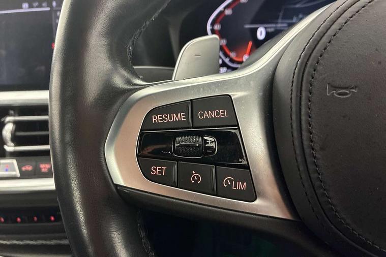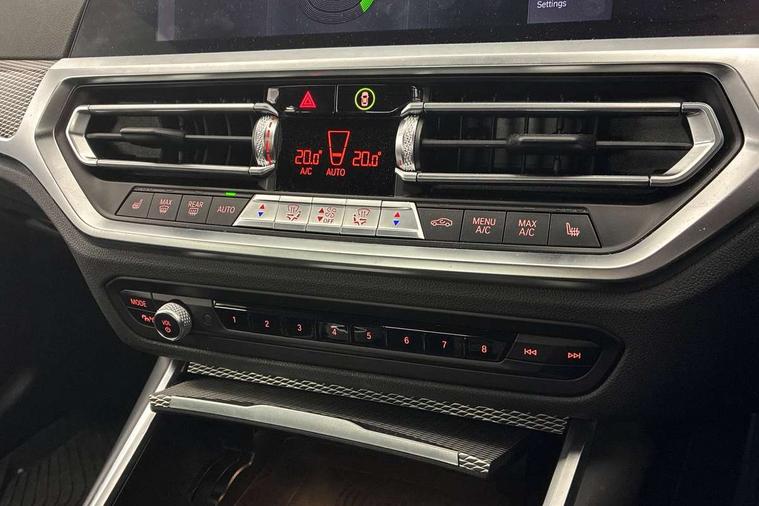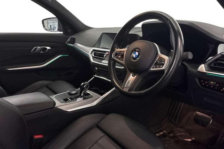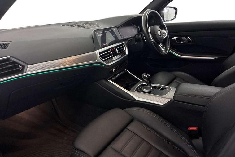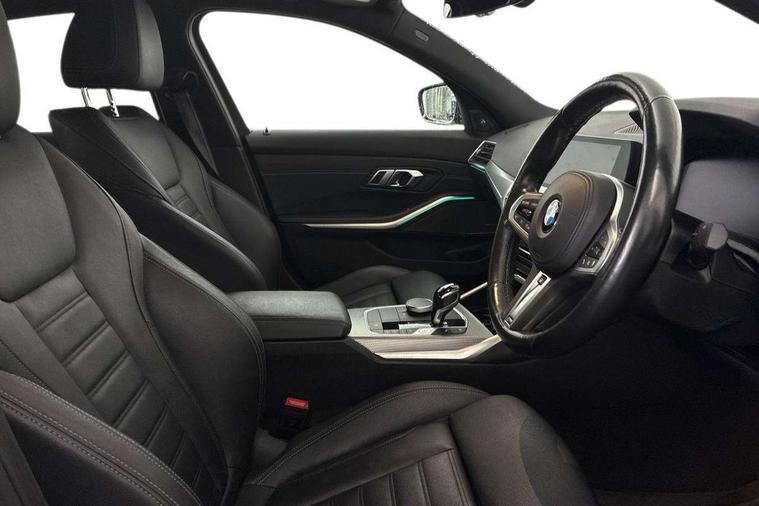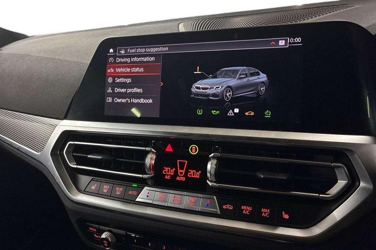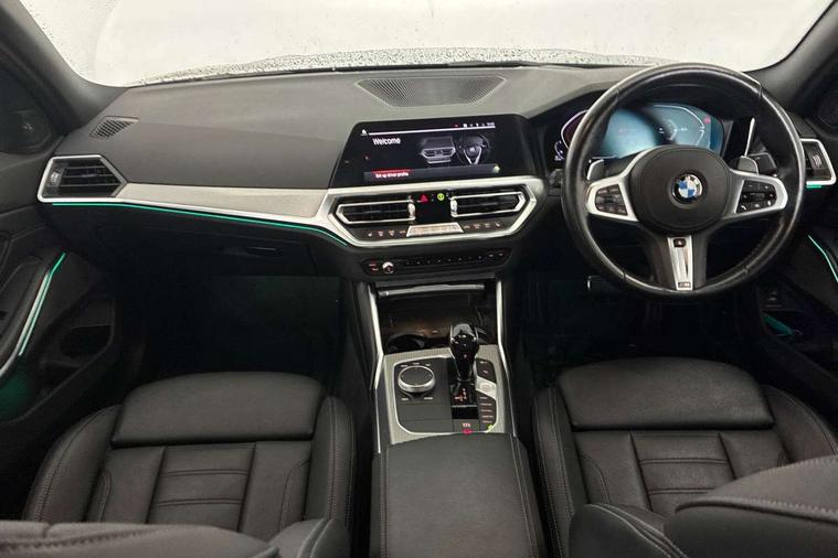 Active guard plus, Attentiveness assist, Bluetooth hands free facility with USB audio interface with audio streaming, BMW iDrive controller on centre console, BMW Live Cockpit Professional Nav with 12.3" instrument display + 10.25" display, Intelligent Voice Assist, BMW OS 7, HDD, 2USB, 4G LTE connect, BMW service history, BMW Teleservices, Brake pad wear indicator in front and rear, Check Control warning system for monitoring of lights and door/luggage compartment open warning, Condition based service, Cruise control with brake function + speed limiter, Electric power steering with Servotronic steering optimised at all speed ranges, Instrument cluster with speedometer with mph readout, tachometer, fuel gauge and oil temperature gauge, Integrated owners handbook, Oil sensor for level and grade, warning by check control system, On board computer - average speed+fuel consumption, service interval, clock/date, odometer/trip meter, outside temperature display and ice warning, Optimum shift indicator, Personal Profile - automatic lock when driving away selectable, Variable sport steering, 48V Mild hybrid technology, Balanced 50/50 weight distribution, Battery cut-out switch, Diesel particulate filter, Drive performance control - ECO PRO, comfort and sport modes, Electronic differential lock control (EDLC), Incorrect fuelling protection, Larger capacity fuel tank, M sport suspension, Stroke dependent dampers, DAB tuner, Electronic service booklet, Stereo speaker system with 2 mid range speakers in the front door trims and rear parcel shelf + 2 central bass speakers underneath the front seats, Acoustic glazing, Active airstream chrome frame kidney grille with 8 high gloss black vertical slats, Automatic headlight beam throw control with load dependent regulating reaction, dynamic compensation of braking dive and acceleration squat, Black roof mouldings, Body colour door handles, Body colour front and rear bumpers, Body colour fuel filler flap, Body colour mirror caps with bottom segment in matt black, Dynamic brake lights, Electric windows - front and rear, with open/close fingertip control, anti-trap facility and comfort closing, Exhaust tailpipe - split left and right, Exterior mirrors - electrically folding with anti-dazzle, Fading support, Front and rear bumper system with replaceable deformation elements, Front black door sill finishers with BMW designation, Green tinted heat protection glazing, High gloss shadow line exterior trim, Interior rear view electrochromatic mirror with automatic anti dazzle function, LED daytime running lights, LED front fog lights, Lightweight engineering, M designation on front side panels, left and right, Matt black exterior B pillar, Model designation on right side of tailgate, Rain sensor with automatic headlight activation, Shark fin antenna, Two part LED tailights in L-shape with components in smoked glass, brake light, LED turn indicator and rear fog light, Visible VIN plate, Welcome lights in interior and door handle area, Windscreen wipers with integrated washing jets, xDrive designation on left tailgate, 12V power socket in front storage compartment, 2 front cupholder in centre console with clamping elements and matt black inlay, 3 rear seats with non folding headrests with 3 point seat belts, 3 zone automatic air conditioning, 4 pieces lashing eyelets in luggage compartment, 40:20:40 split folding rear seat with loading system, Ambient lighting with welcome carpet light, Anthracite headlining, Armrest integrated in front and rear door trim + front centre console armrest, Backrest width adjustment, Centred top Luggage compartment lights, Four grab handles integrated in roof lining, Front and rear door exit lighting (left / right), Front and rear door pockets, Front and rear reading lights, Front and rear velour floor mats, Front head restraints, Front sport seats, Heated front seats, Height adjustable mechanically and infinitely variable steering column, Illuminated armrest storage compartment, Illuminated glove compartment with separate small compartment, Interior lighting - front centre over interior mirror with soft light, rear centre and front and rear footwell lighting, M sport leather steering wheel, Make-up mirror lights, Rear centre armrest with 2 cupholders, Rear centre console with storage compartment and ventilation grille, Sunvisors with vanity mirrors and ticket pocket, Toolkit located in luggage compartment, Connected pack professional - 3 Series Saloon/Touring, M sport exterior styling pack - 3 Series Saloon/Touring, 2 tone horn, BMW emergency call, Brake energy regeneration, Braking pre-tensioning, Child proof locking system in rear door, Child seat ISOFIX attachment rear outer seats, Coasting in idle in ECO PRO mode, Crash sensor activating of airbags, Unlocking doors, hazard warning lights, interior light, safety battery terminal, Driver and front passenger side airbags, integrated in the door side seat backrest bolsters for all seat variants, Driver/Front Passenger airbags, Dry braking, Dynamic brake control, Dynamic stability control + (DSC+) - Anti-lock Braking System (ABS) with brake assist and cornering brake control + Automatic Stability Control (ASC), Dynamic Traction Control - DTC, Electric parking brake including automatic hold function and automatic release of the parking brake when driving off, Front passenger manual airbag deactivation, Head airbags for all 4 outer seats, Hill start assist, Seat belt security check for driver and front passenger, Side impact protection, Three 3 point seat belts on all seats including front belt stopper, pyrotechnic belt tensioners and belt force limiters, Tyre pressure monitoring with three level warning strategy, Ventilated front and rear disc brakes, Warning triangle and first aid kit, Alarm system (Thatcham 1) with remote control and electronic engine immobiliser, Central locking switch for all doors, fuel filler cap and luggage compartment, Remote control with integrated key one butto